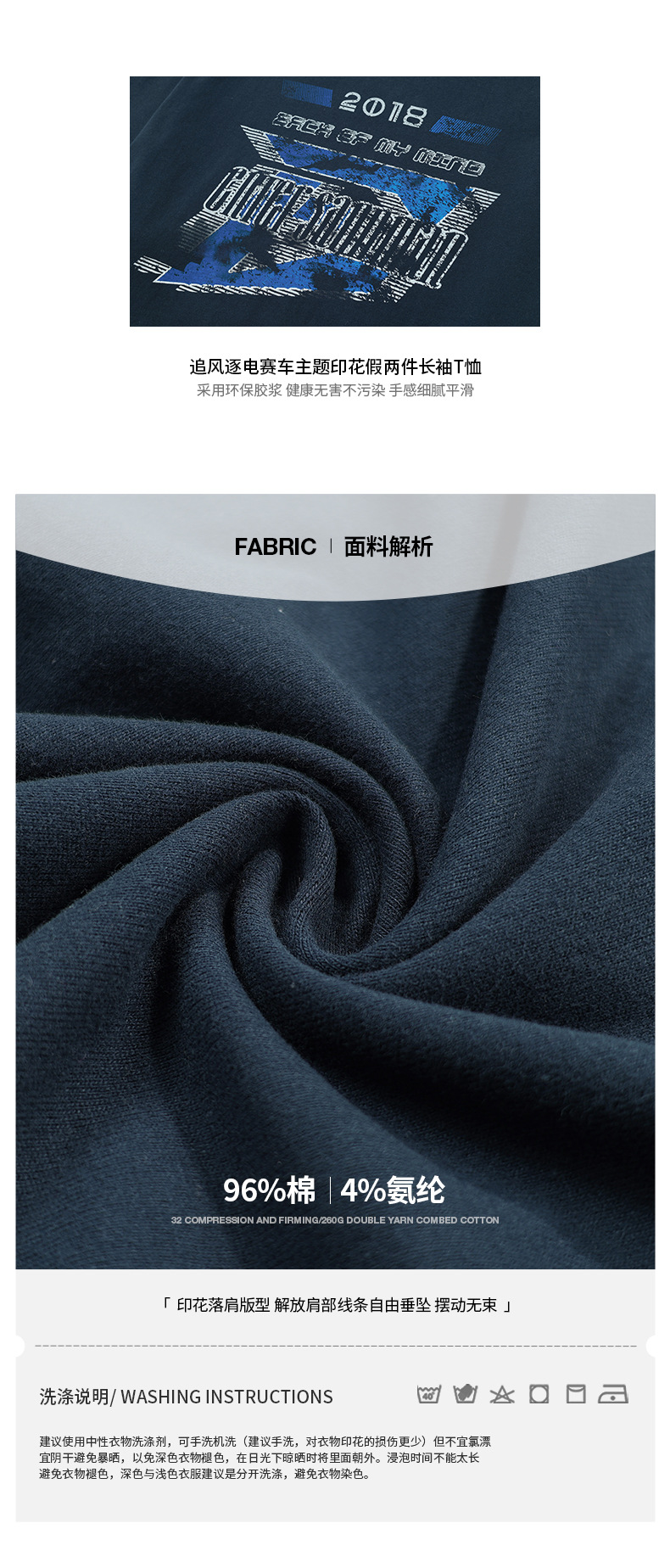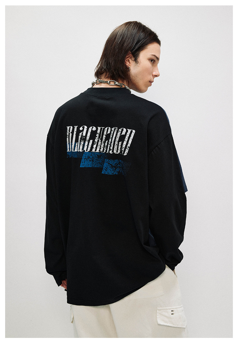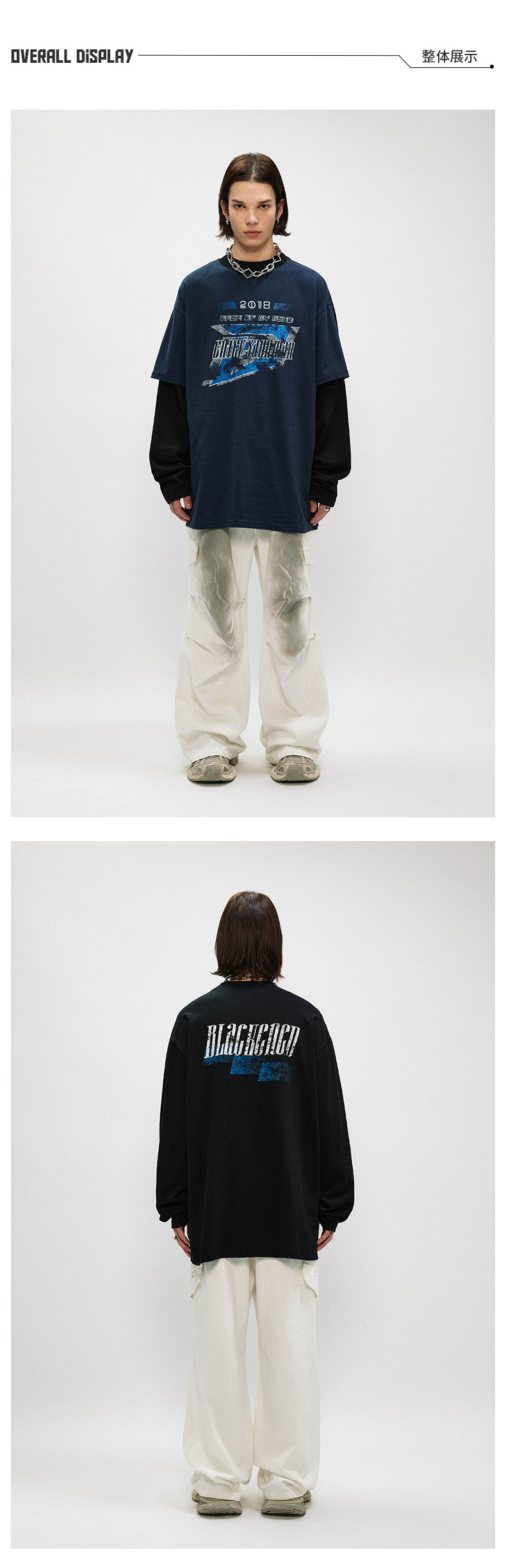 # OVDY 봄 여름 신상품 페이크 투피스 셔츠 순면 루즈핏 작은 칼라 트렌디 브랜드 긴팔 티셔츠 남성용