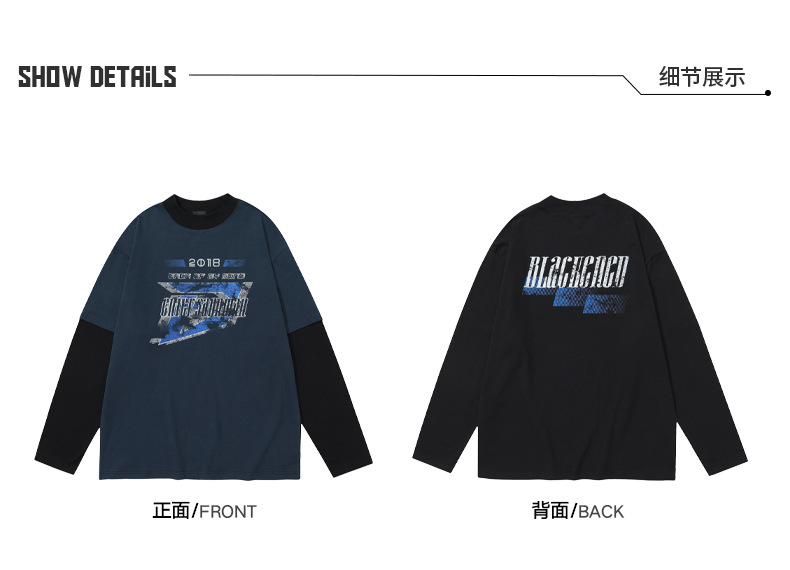 # OVDY 봄 여름 신상품 페이크 투피스 셔츠 순면 루즈핏 작은 칼라 트렌디 브랜드 긴팔 티셔츠 남성용스토어 가기