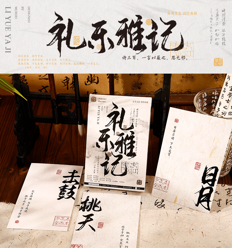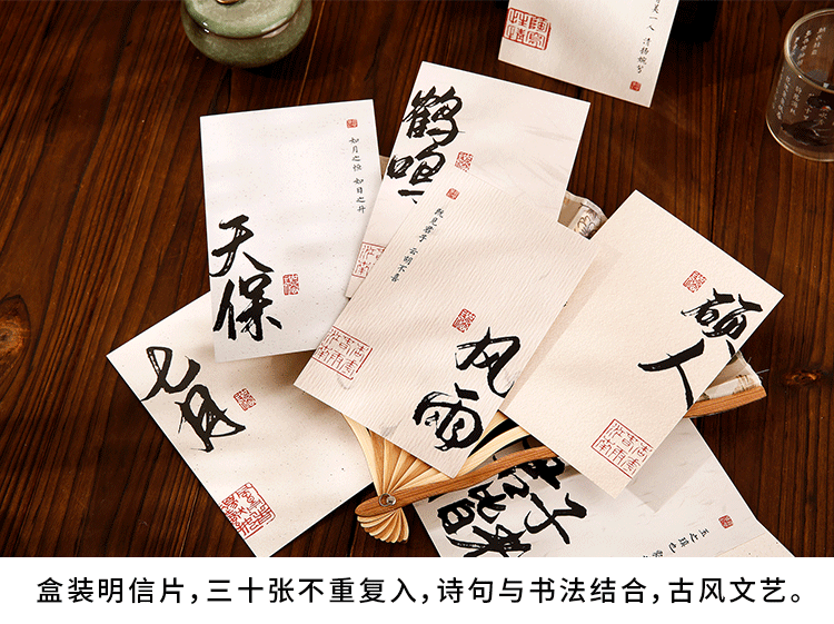 Mu Ran 엽서 Lele Yaji 고대 스타일 서예 텍스트 장식 카드 크리 에이 티브 선물 메시지 인사말 카드 30 장
