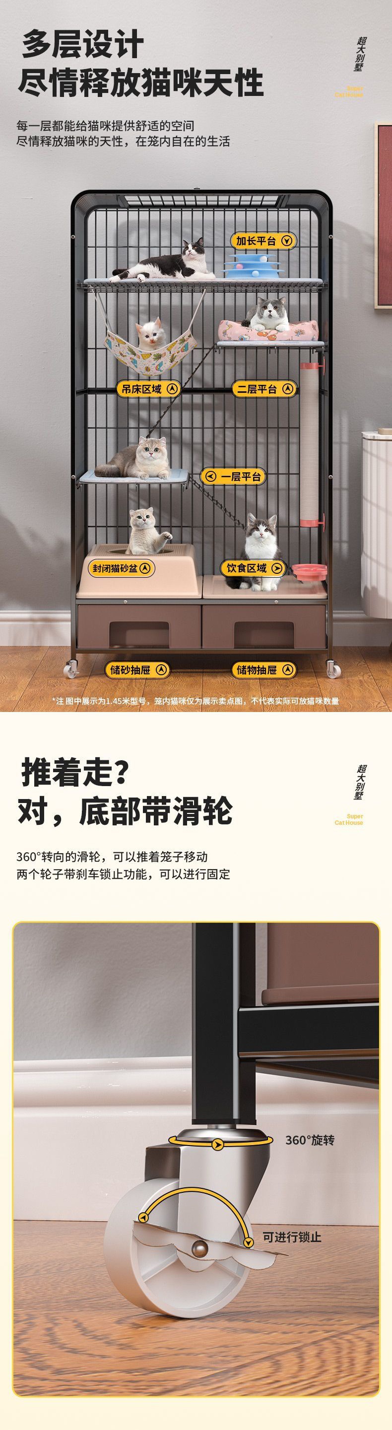 고양이 케이지 대형 홈 실내 다층 고양이 빌라 화장실 통합 고양이 케이지 서랍 고양이 쓰레기 상자스토어 가기