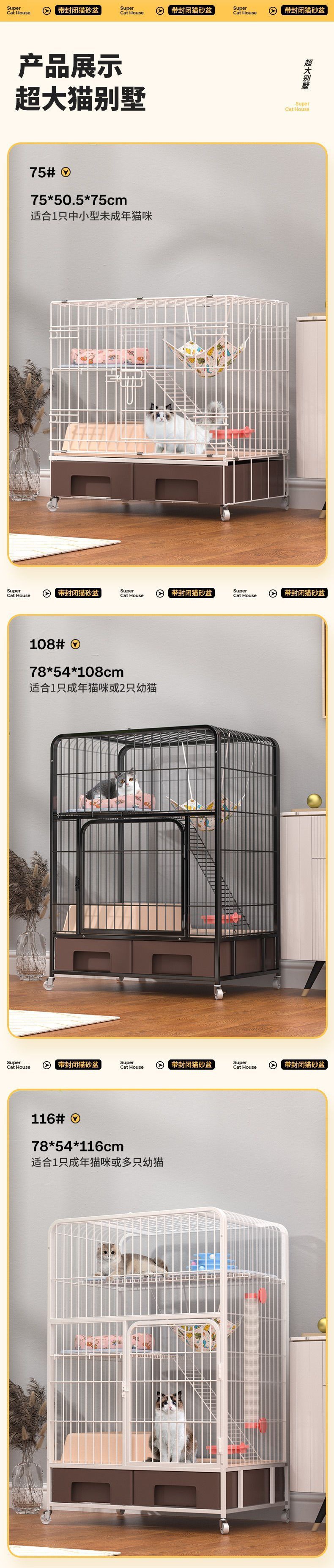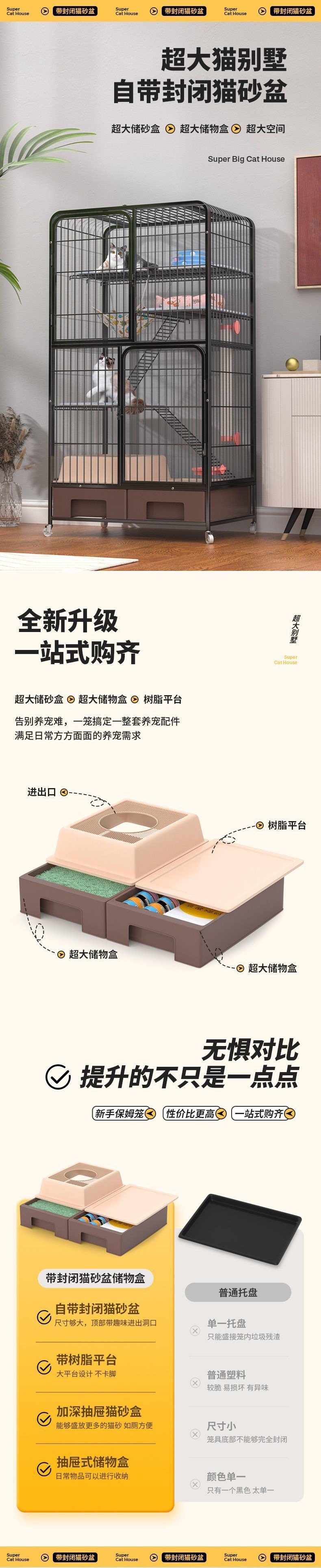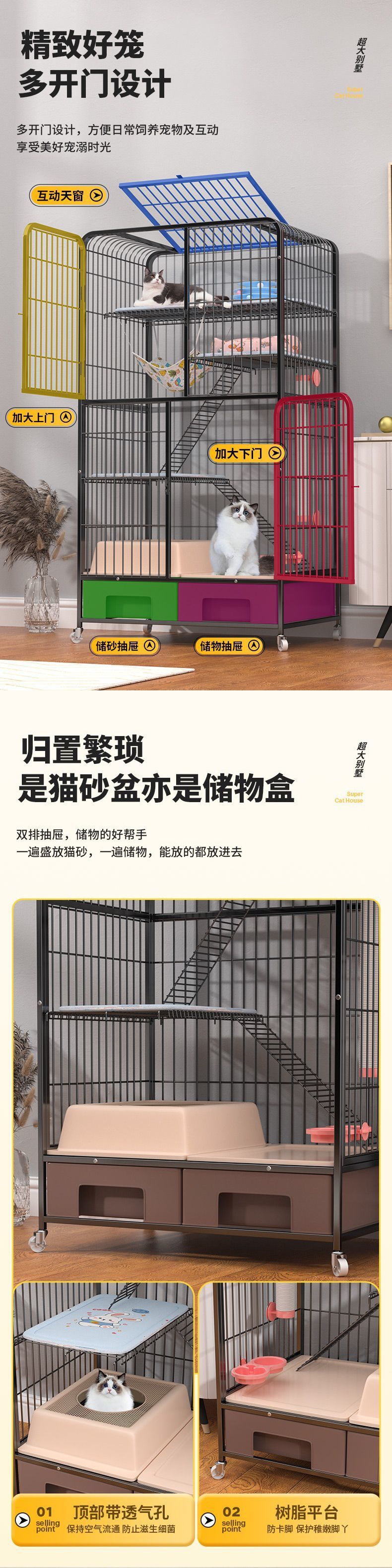 고양이 케이지 대형 홈 실내 다층 고양이 빌라 화장실 통합 고양이 케이지 서랍 고양이 쓰레기 상자