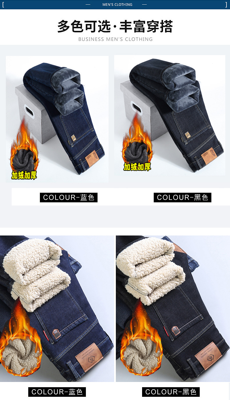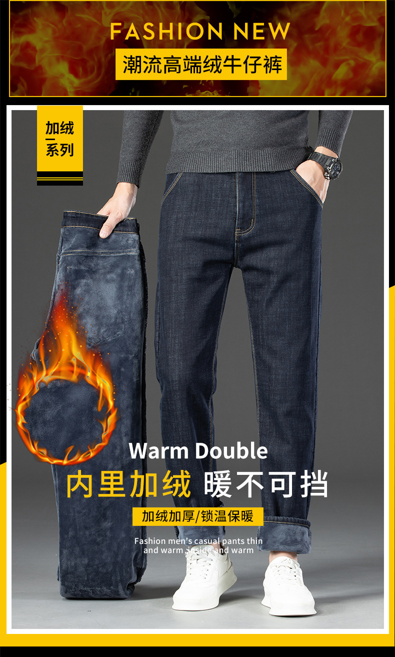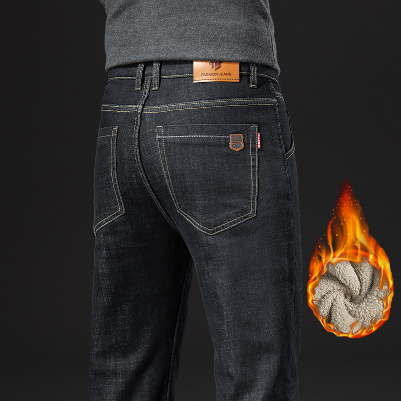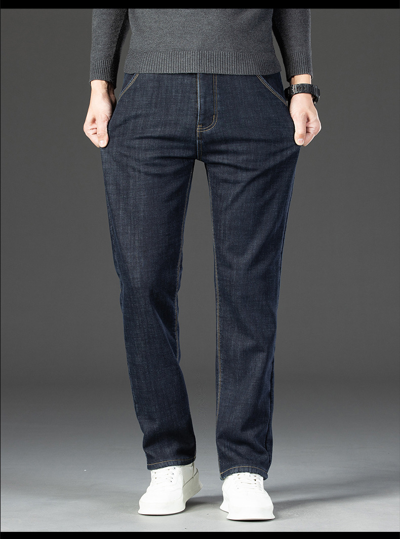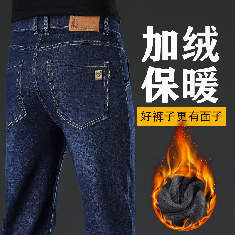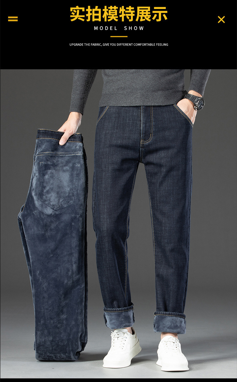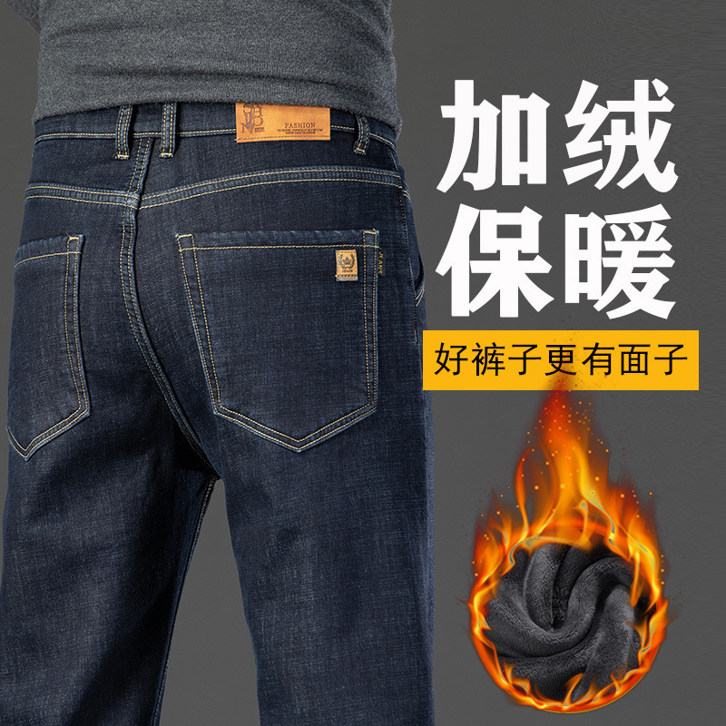겨울 벨벳 청바지 남성용 품질 느슨한 스트레이트 편안한 남성용 바지 중년 아빠 남성 높은 허리 바지 도매스토어 가기