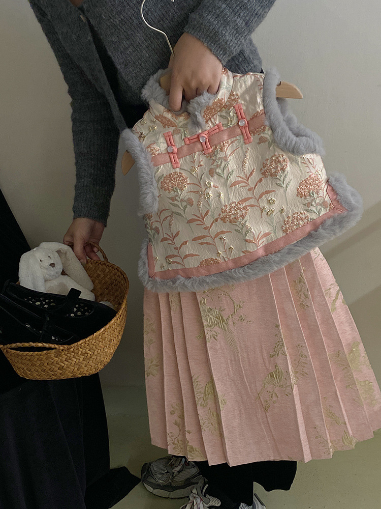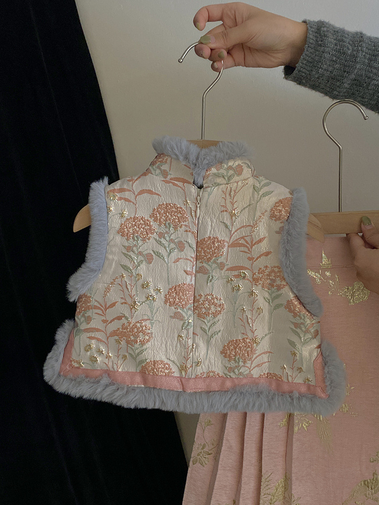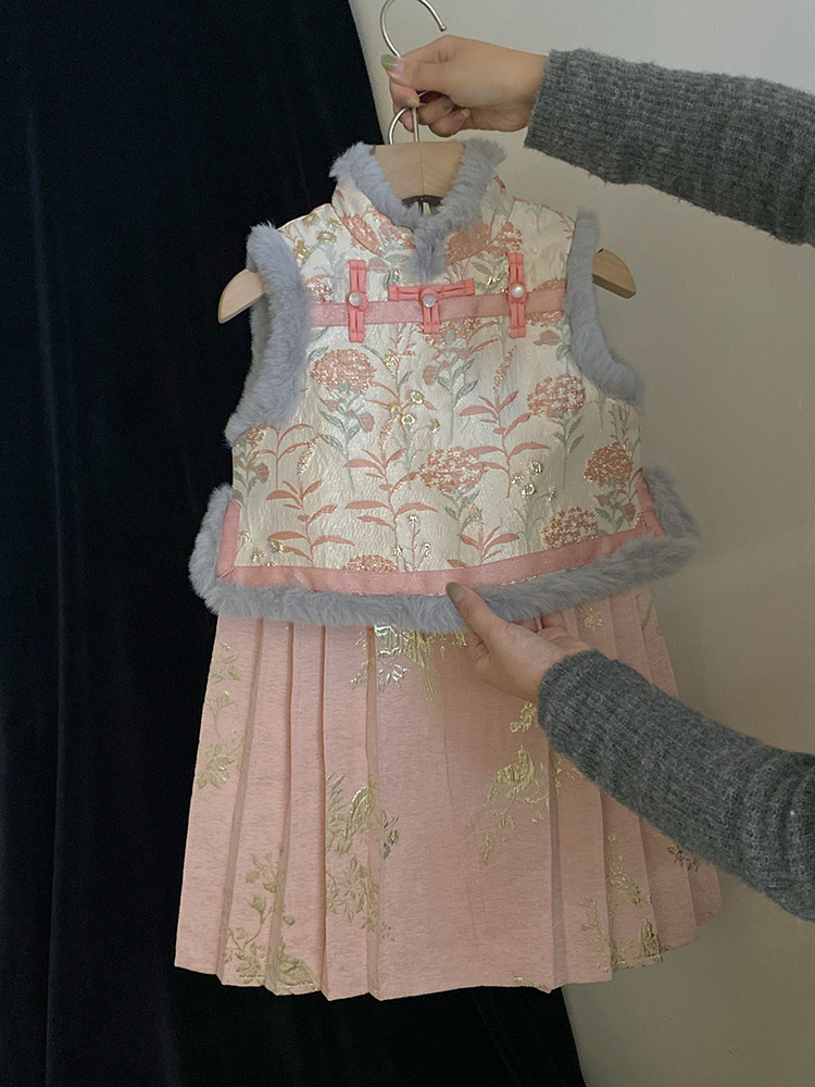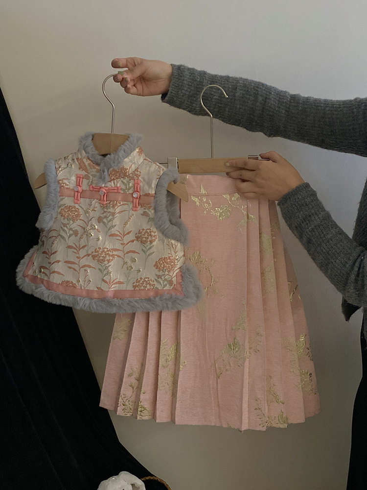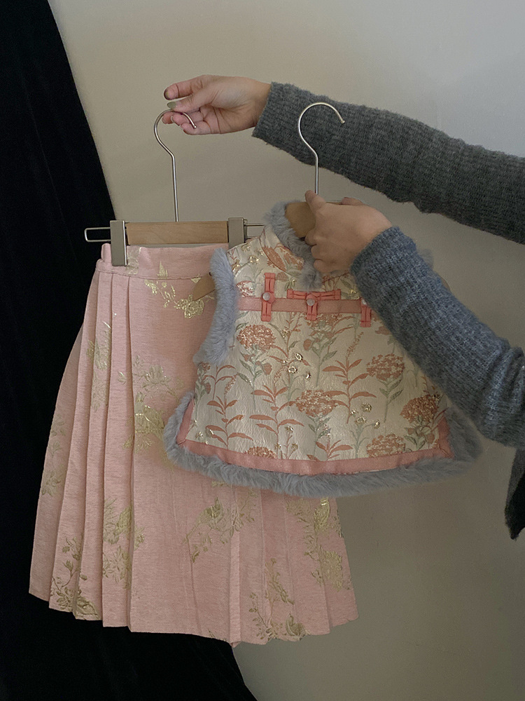 소녀 2023 겨울 새로운 달콤한 인쇄 편안한 새로운 중국 스타일 조끼 아기 중국 스타일 우아한 두꺼운 치마스토어 가기