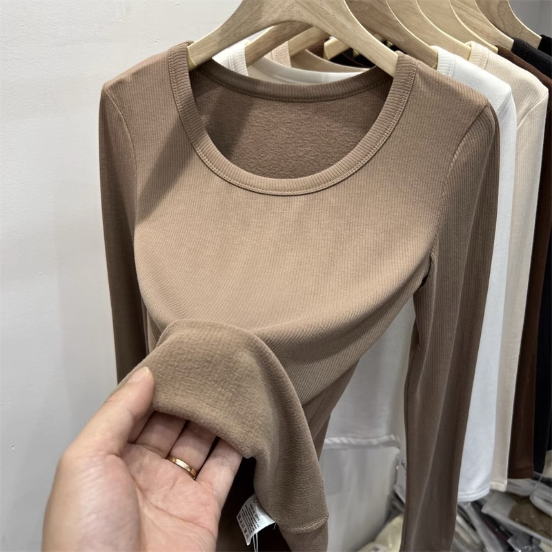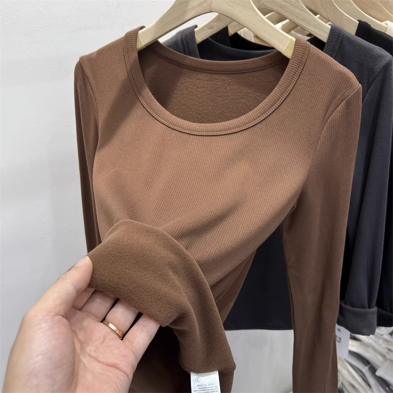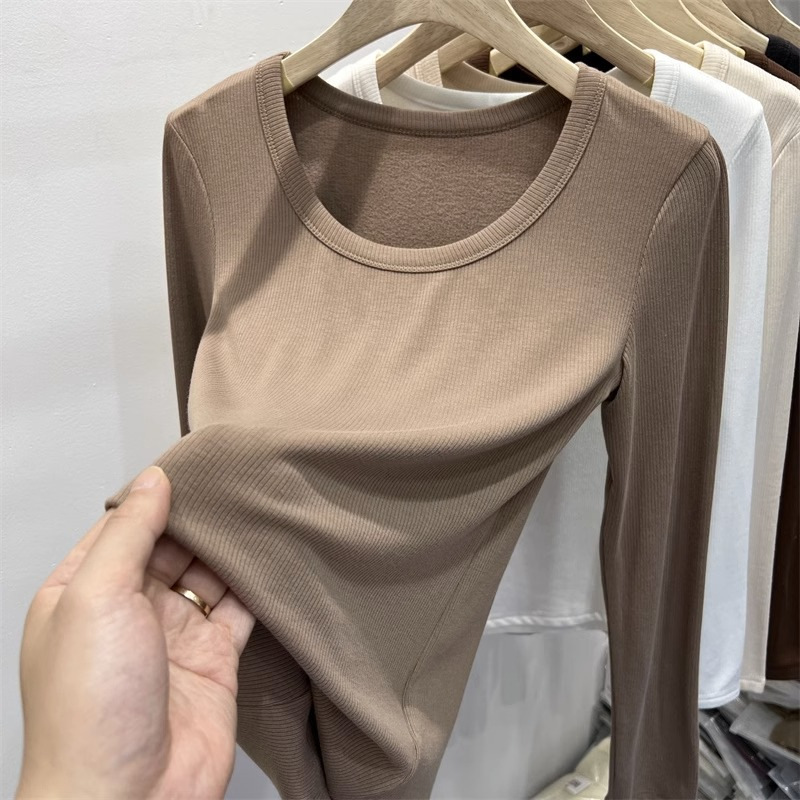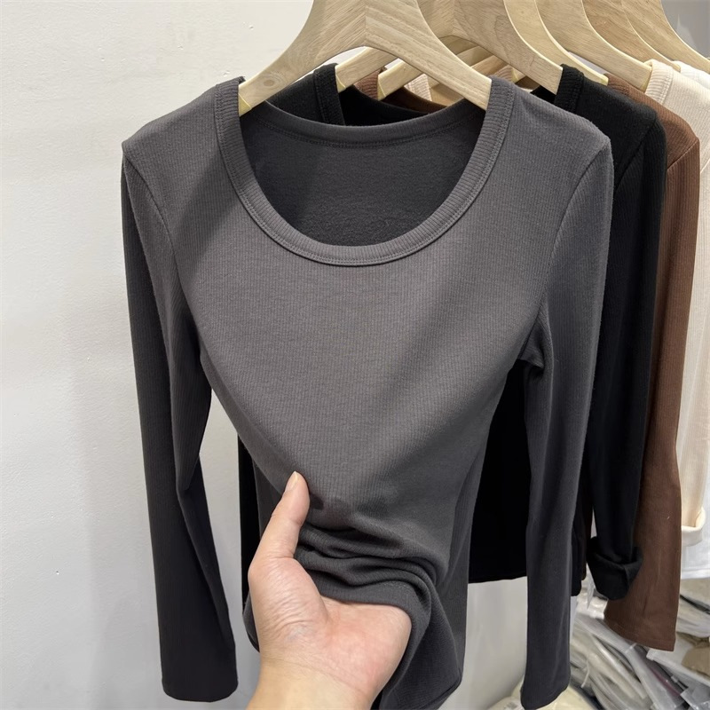 여성을위한 드 벨벳 로우 칼라 바닥 셔츠 가을과 겨울 내복 슬림 핏 슬리밍 다목적 두꺼운 얇은 벨벳 따뜻한 긴 소매 티셔츠 탑