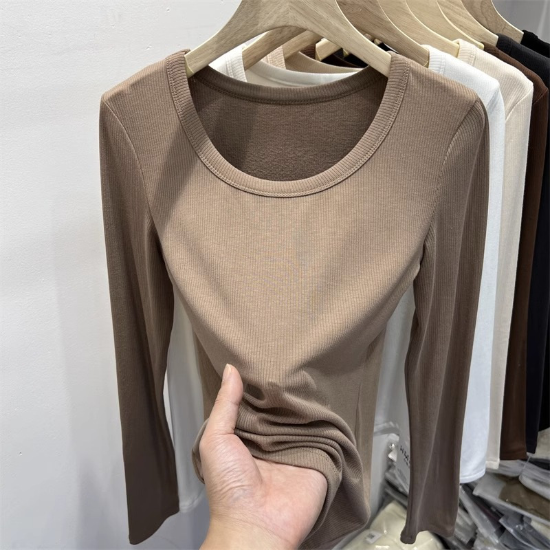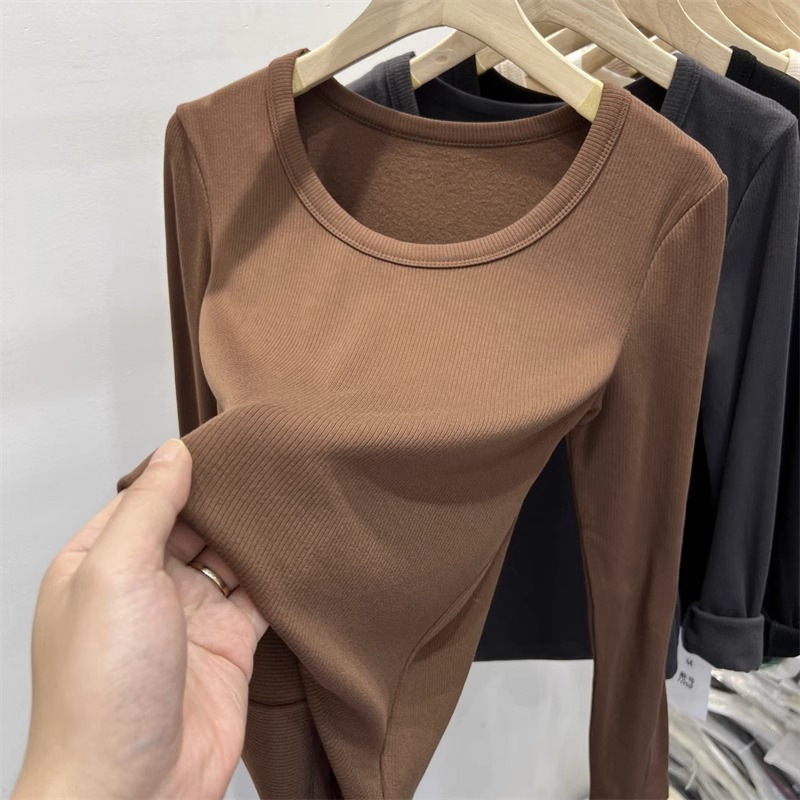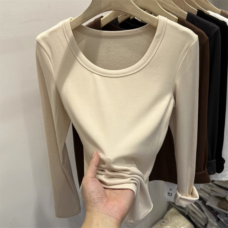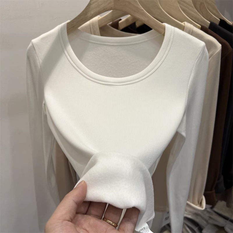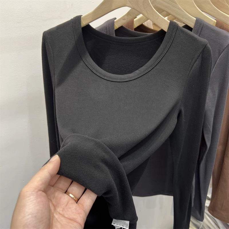 여성을위한 드 벨벳 로우 칼라 바닥 셔츠 가을과 겨울 내복 슬림 핏 슬리밍 다목적 두꺼운 얇은 벨벳 따뜻한 긴 소매 티셔츠 탑스토어 가기