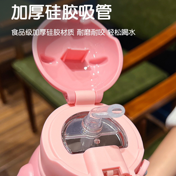 귀여운 귀여운 재미 어린이 보온병 컵 음식 학년 316 스테인레스 스틸 밀짚 컵 남성과 여성 학교 만화 주전자