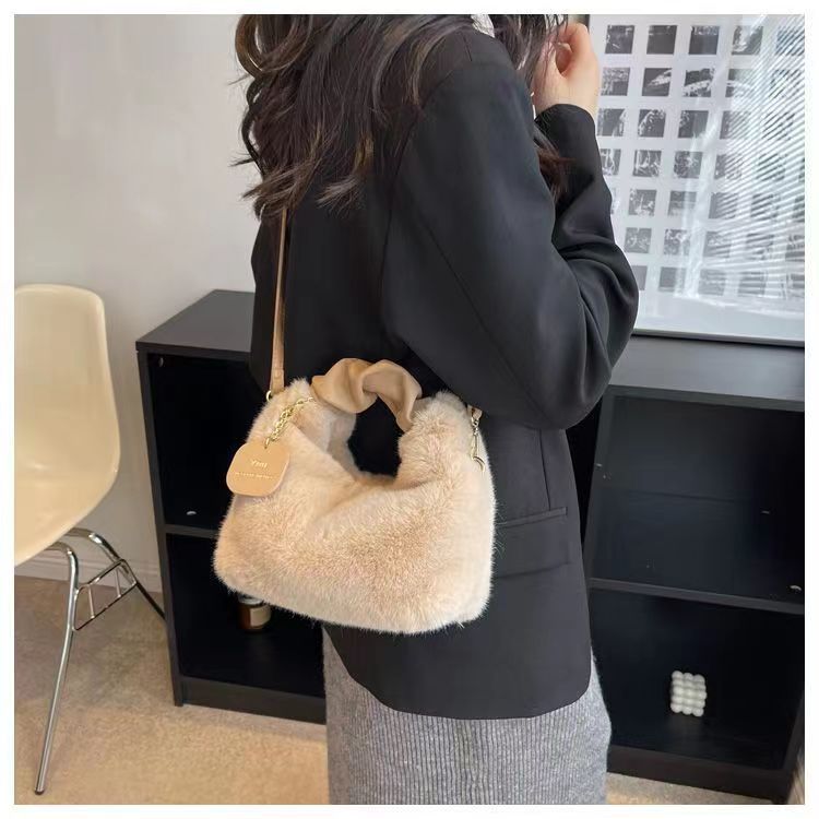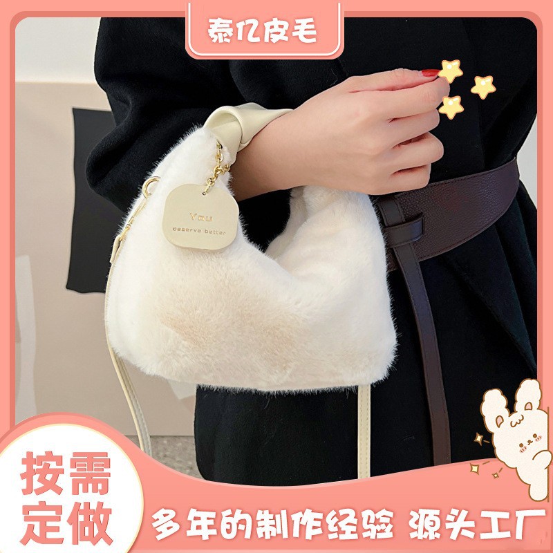 여성을위한 모피 작은 가방 2023 인기있는 새로운 가을과 겨울 봉제 메신저 가방 겨울 다목적 휴대용 모피 가방