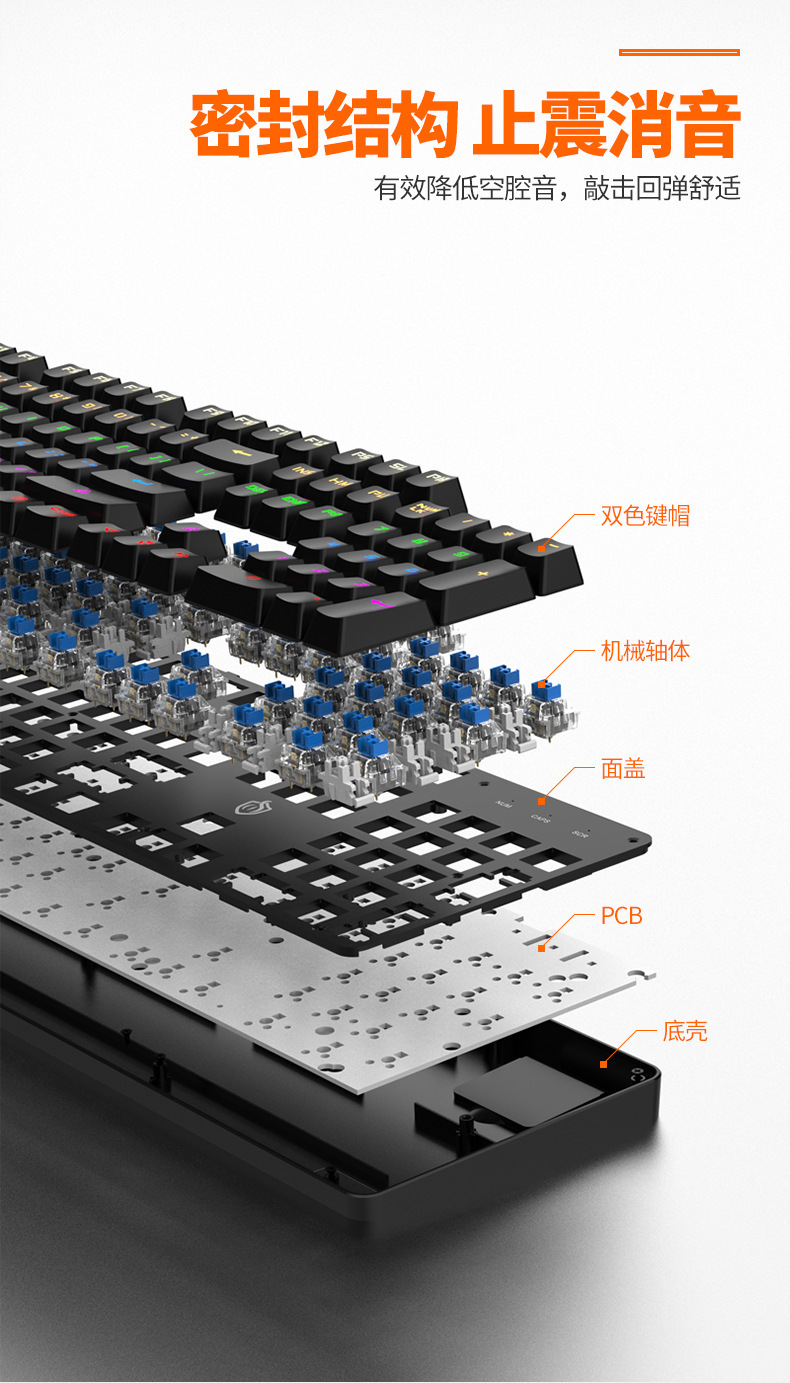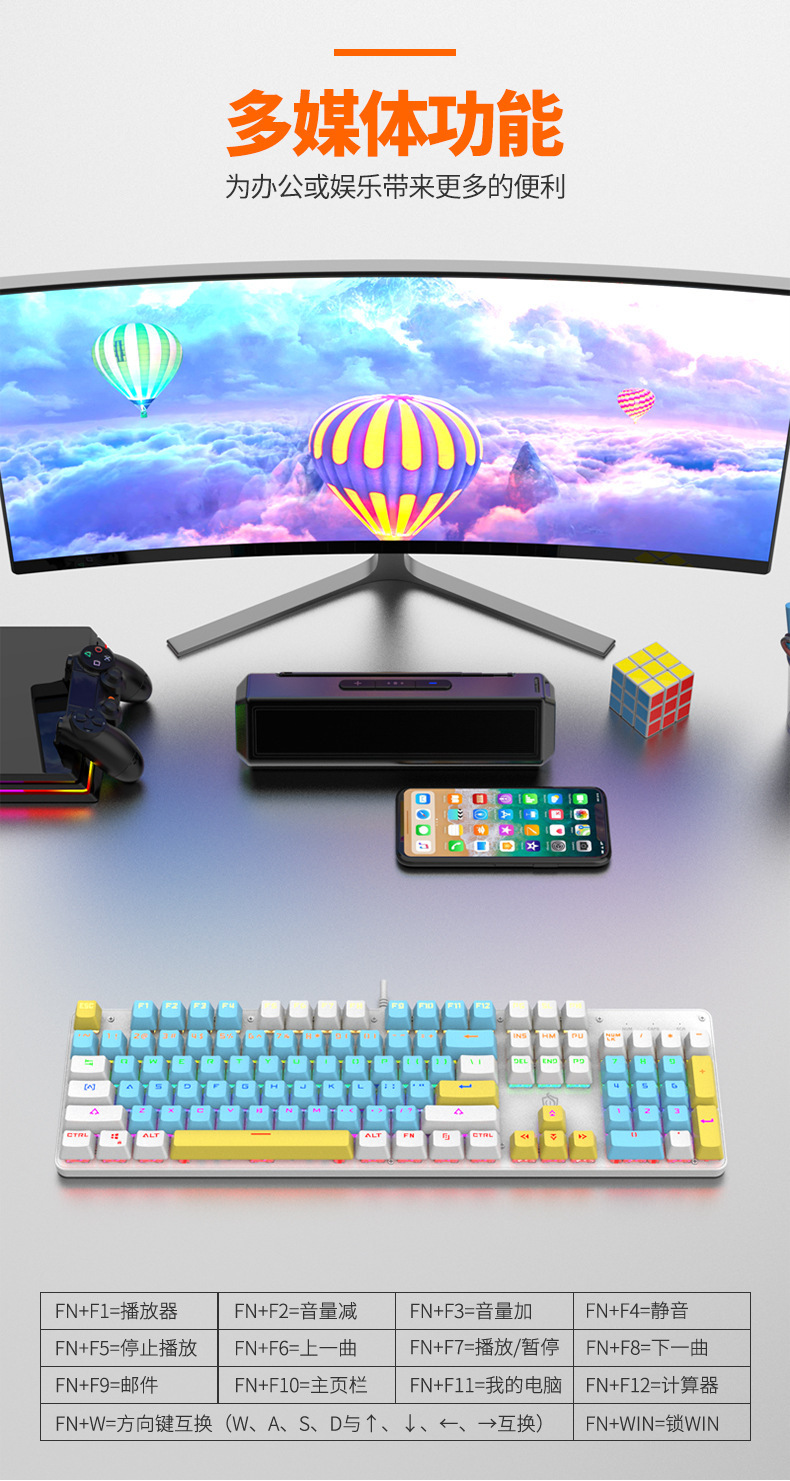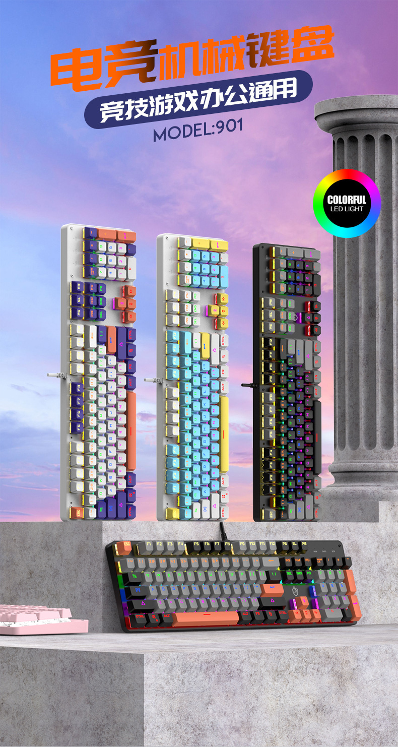 美尚E族 k901拼色键帽有线机械键盘青轴