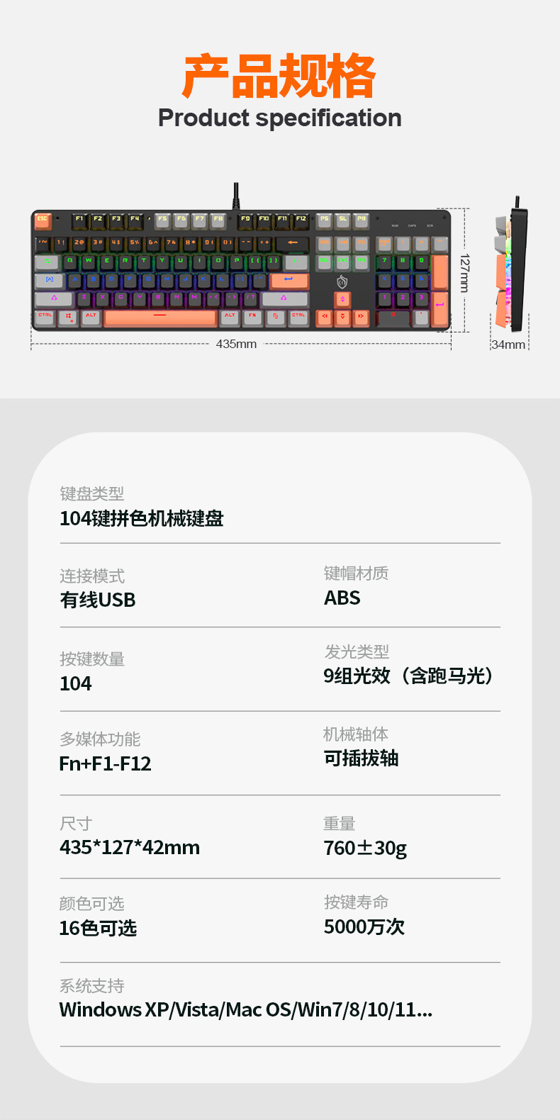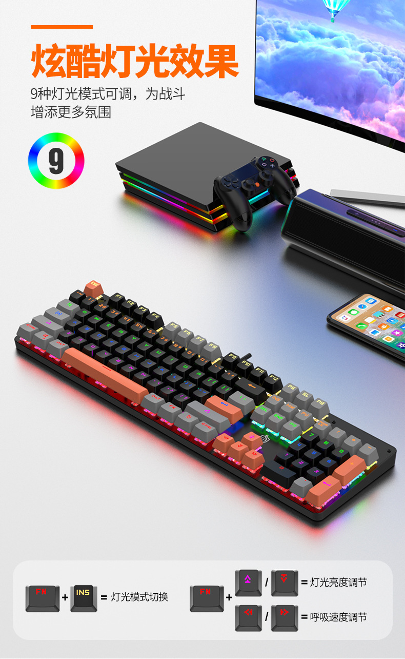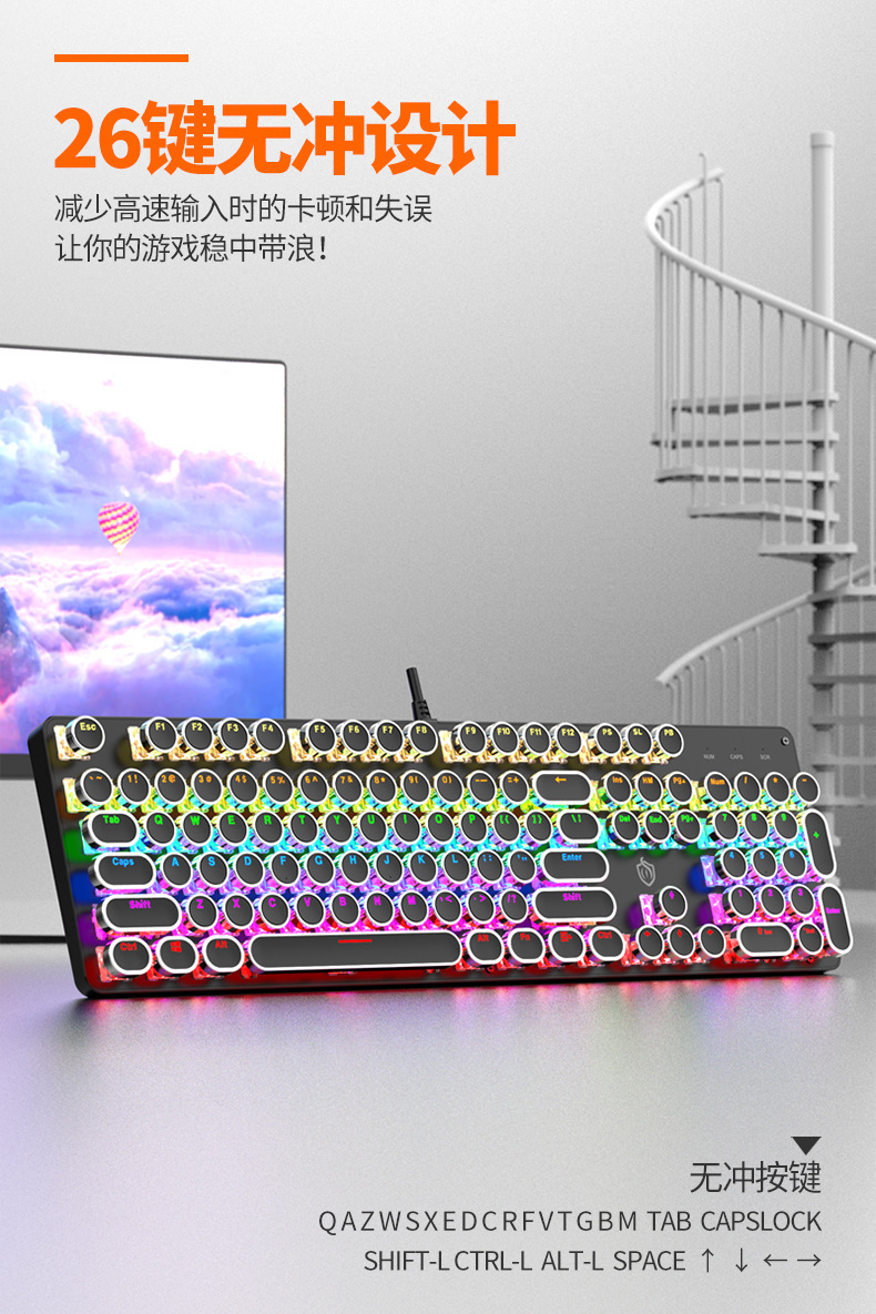 美尚E族 k901拼色键帽有线机械键盘青轴
