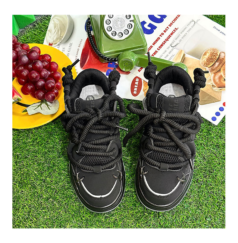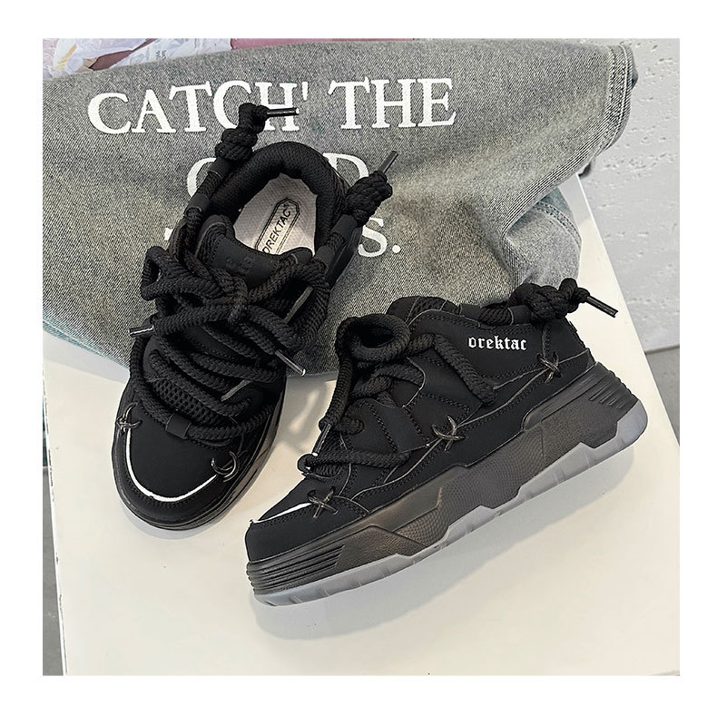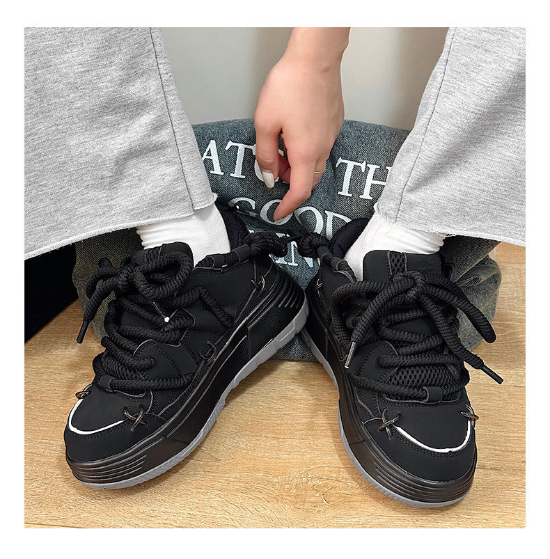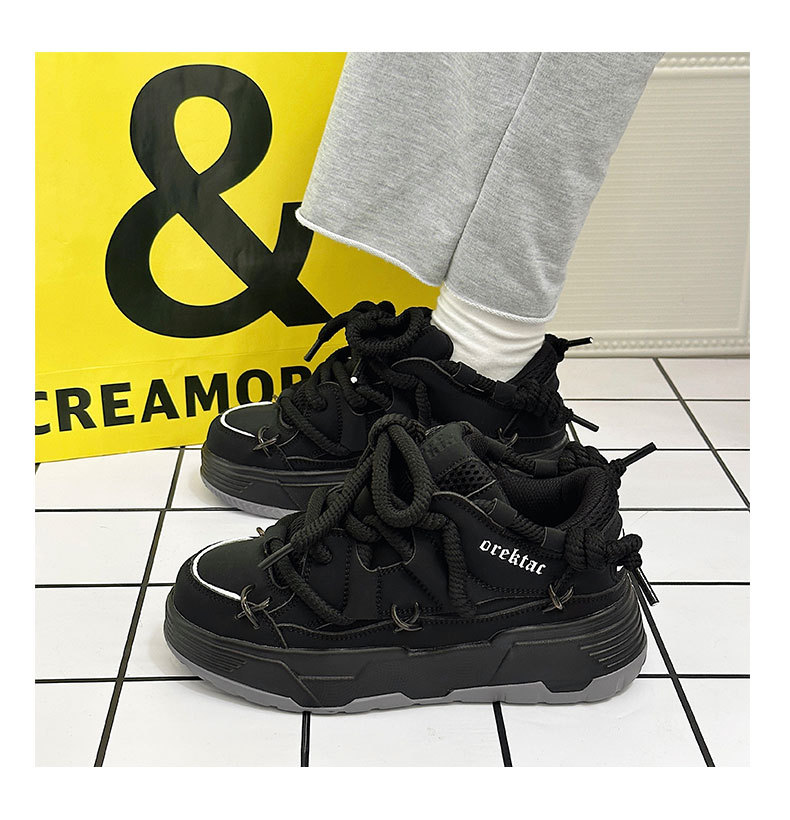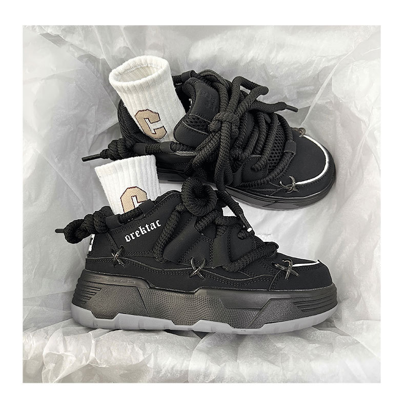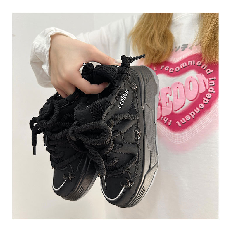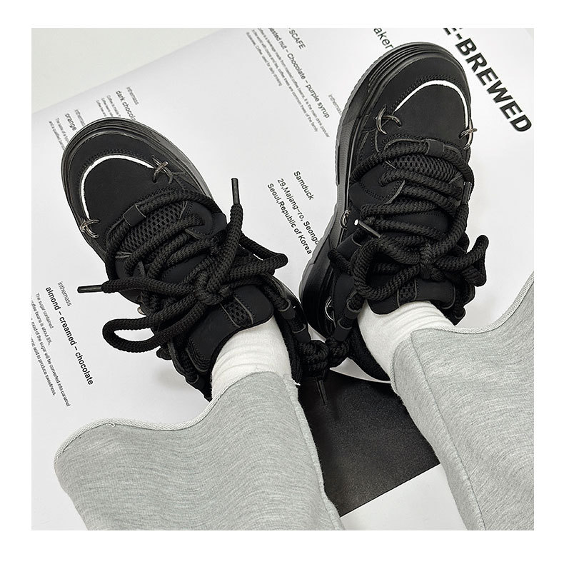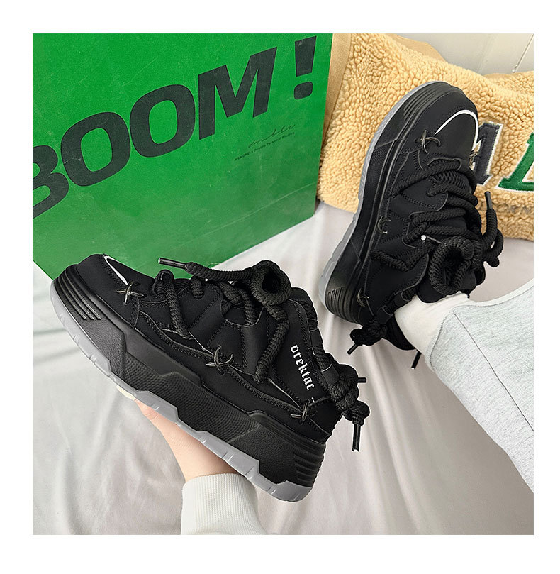 두꺼운 밑창 증가 된 검은 빵 신발 여성의 2023 년 새로운 겨울 캐주얼 올 매치 토르 신발 커플 레트로 스니커즈스토어 가기
