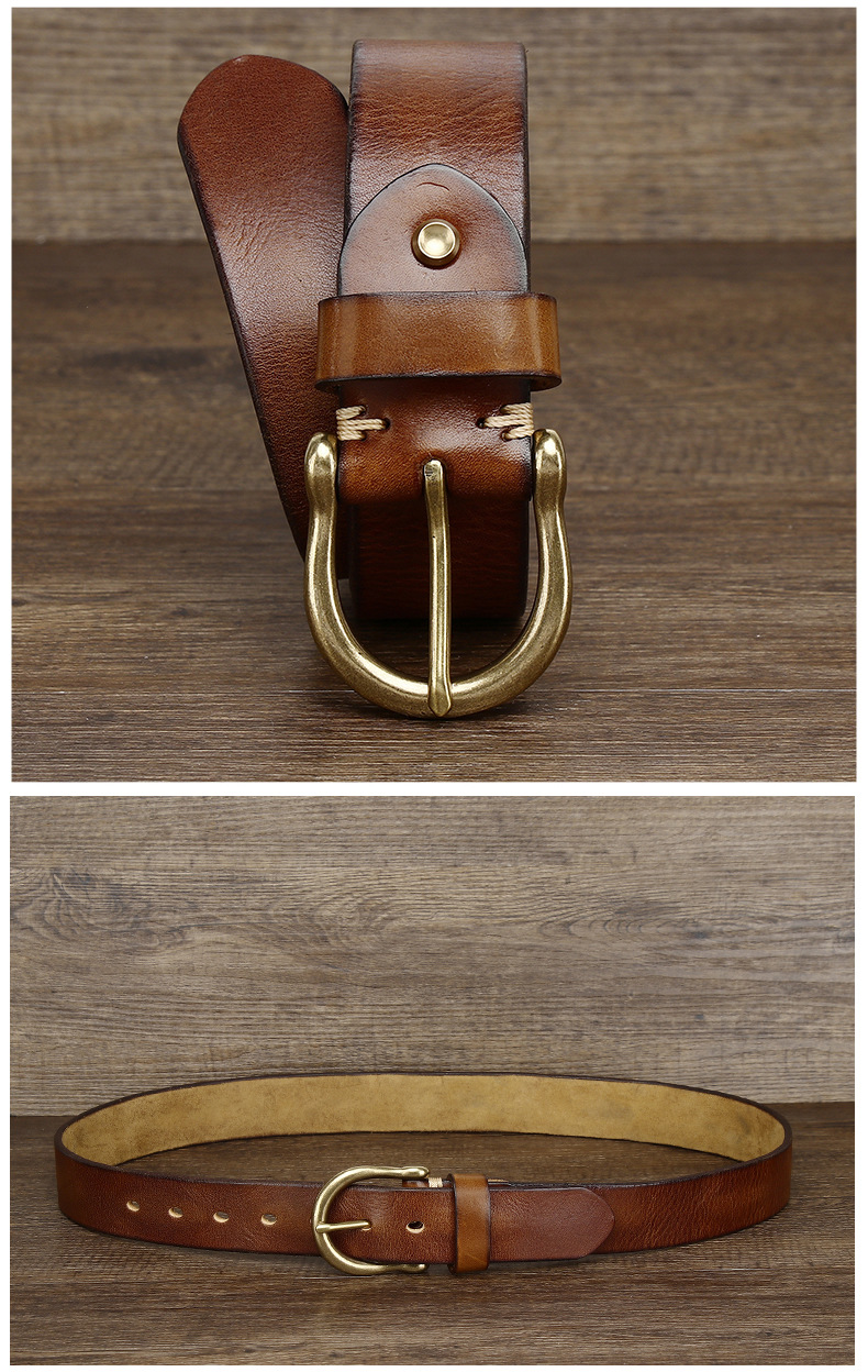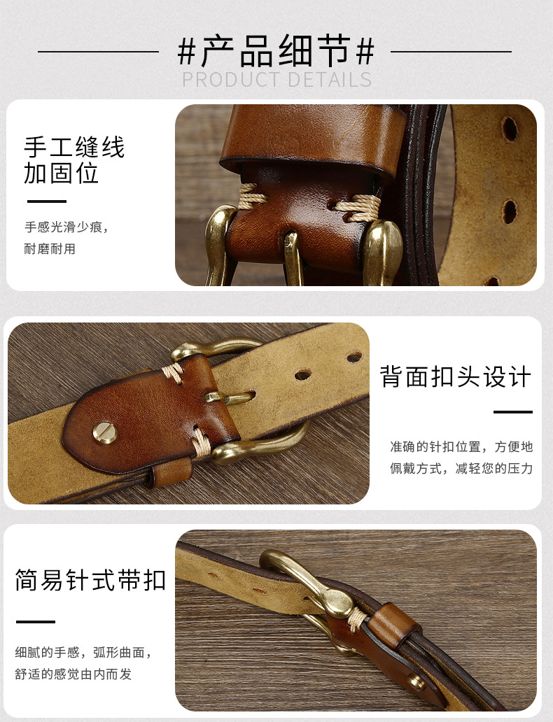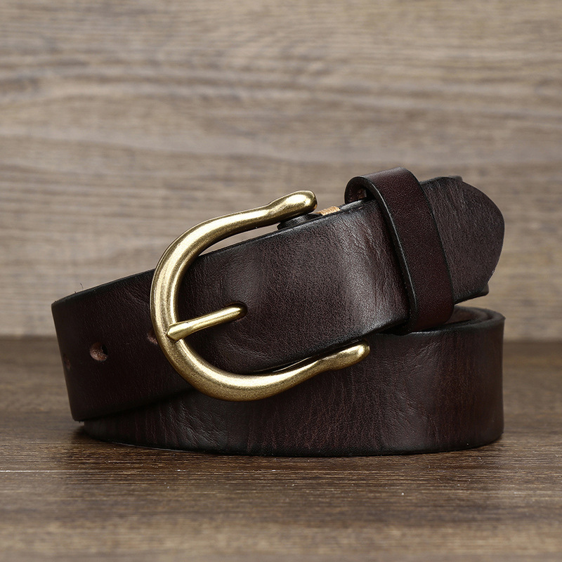 남성용 가죽 벨트 남성용 캐주얼 빈티지 구리 버클 핀 버클 광택 탑 레이어 소가죽 데님 벨트스토어 가기