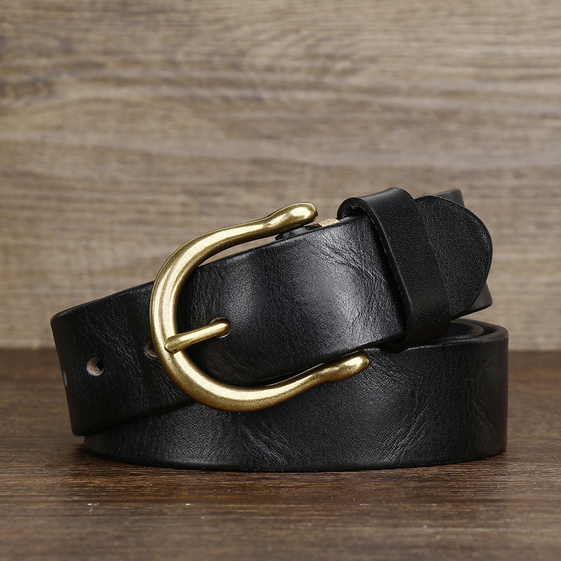 남성용 가죽 벨트 남성용 캐주얼 빈티지 구리 버클 핀 버클 광택 탑 레이어 소가죽 데님 벨트