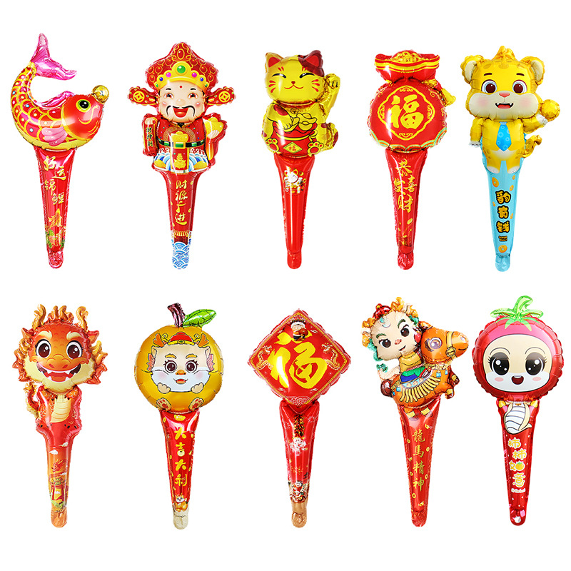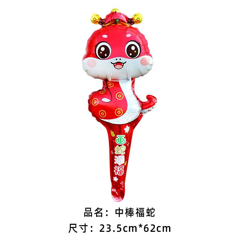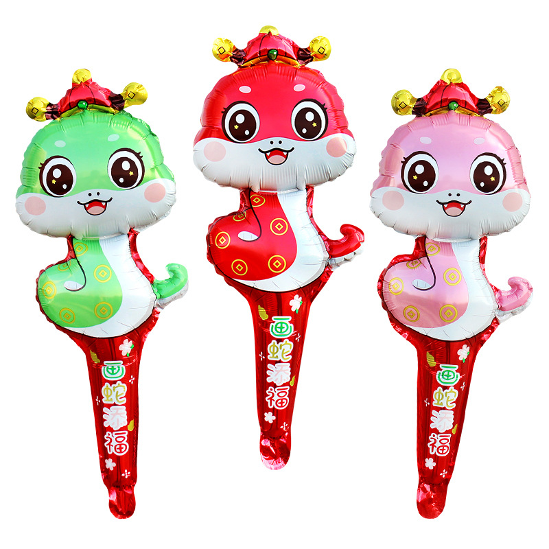 2025년 뱀 새해 중형 휴대용 스틱 풍선 새해 첫날 모양의 타격 스틱 부의 신 알루미늄 필름 풍선