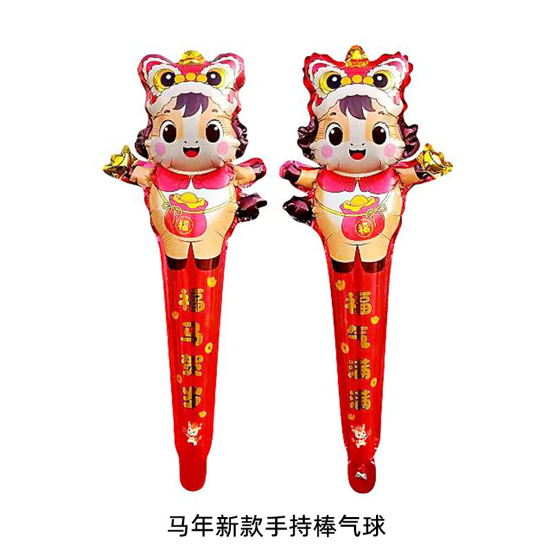 2026년 말년(馬年) 중형 핸드헬드 막대 풍선 설날(春節) 장식용 막대 복주(福主) 알루미늄 필름 풍선
