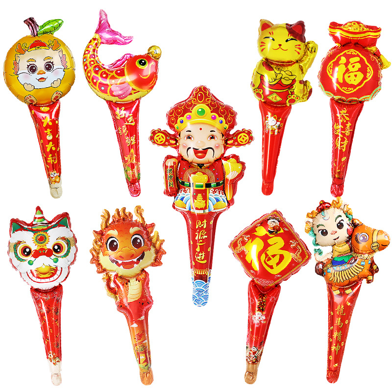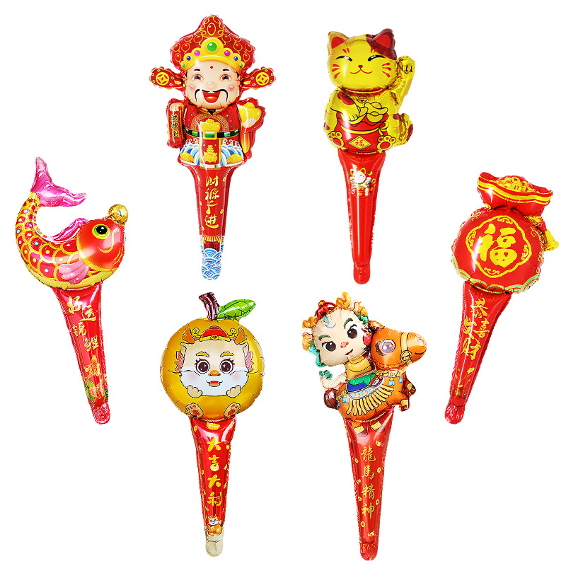 2025년 뱀 새해 중형 휴대용 스틱 풍선 새해 첫날 모양의 타격 스틱 부의 신 알루미늄 필름 풍선스토어 가기