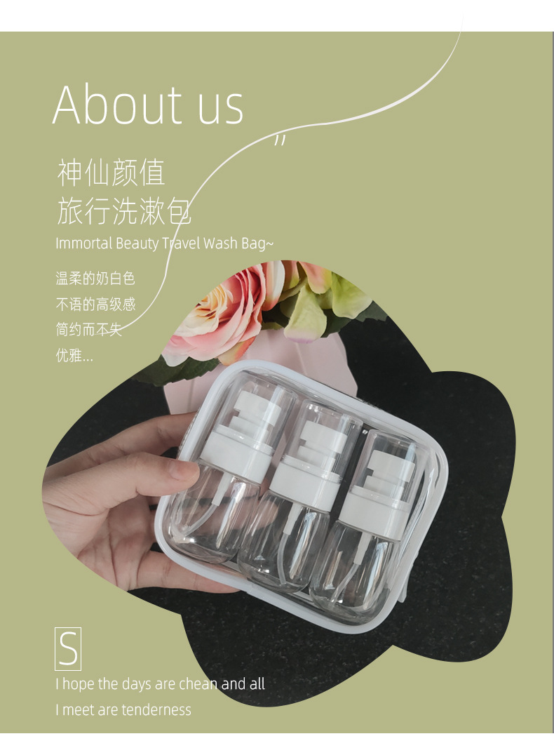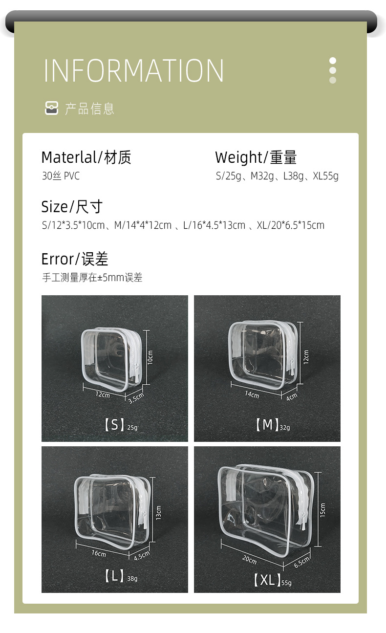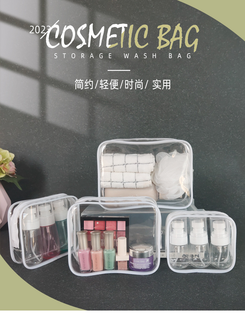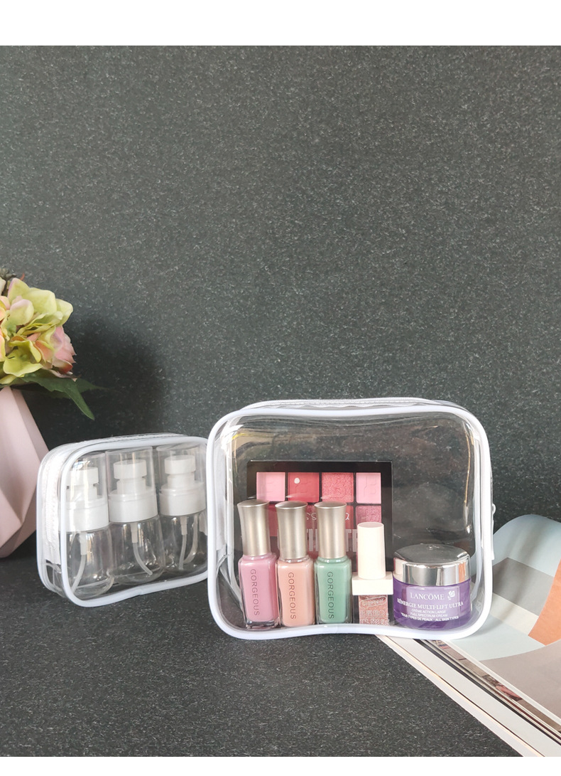 흰색 투명한 화장품 가방 스몰 사이즈 휴대용 저장 가방 여행 방수 PVC 세척 가방 젖은 건조 분리 세트 새로운