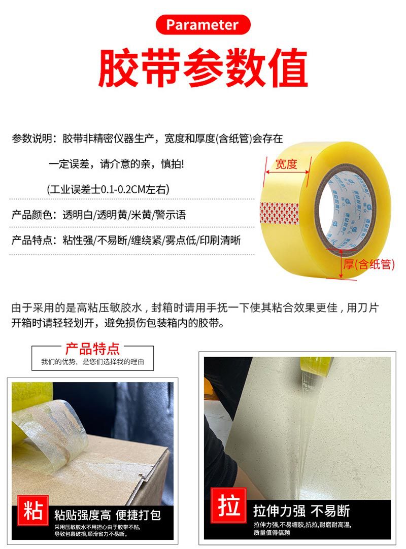 • 투명한 노란색 * 폭 4.5cm * 두께 1.6cm * 길이 100(112 롤/상자)