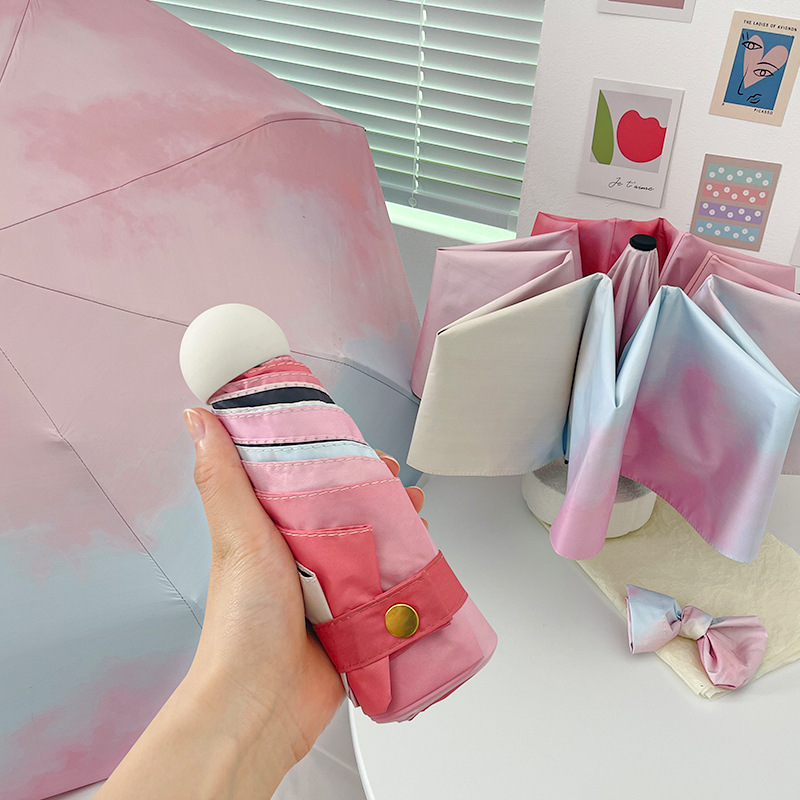 태양 우산 국경 일본 및 한국 높은 가치의 여성 맑고 비오는 이중 사용 5 배 우산 자외선 방지 소형 휴대용 차양 우산스토어 가기