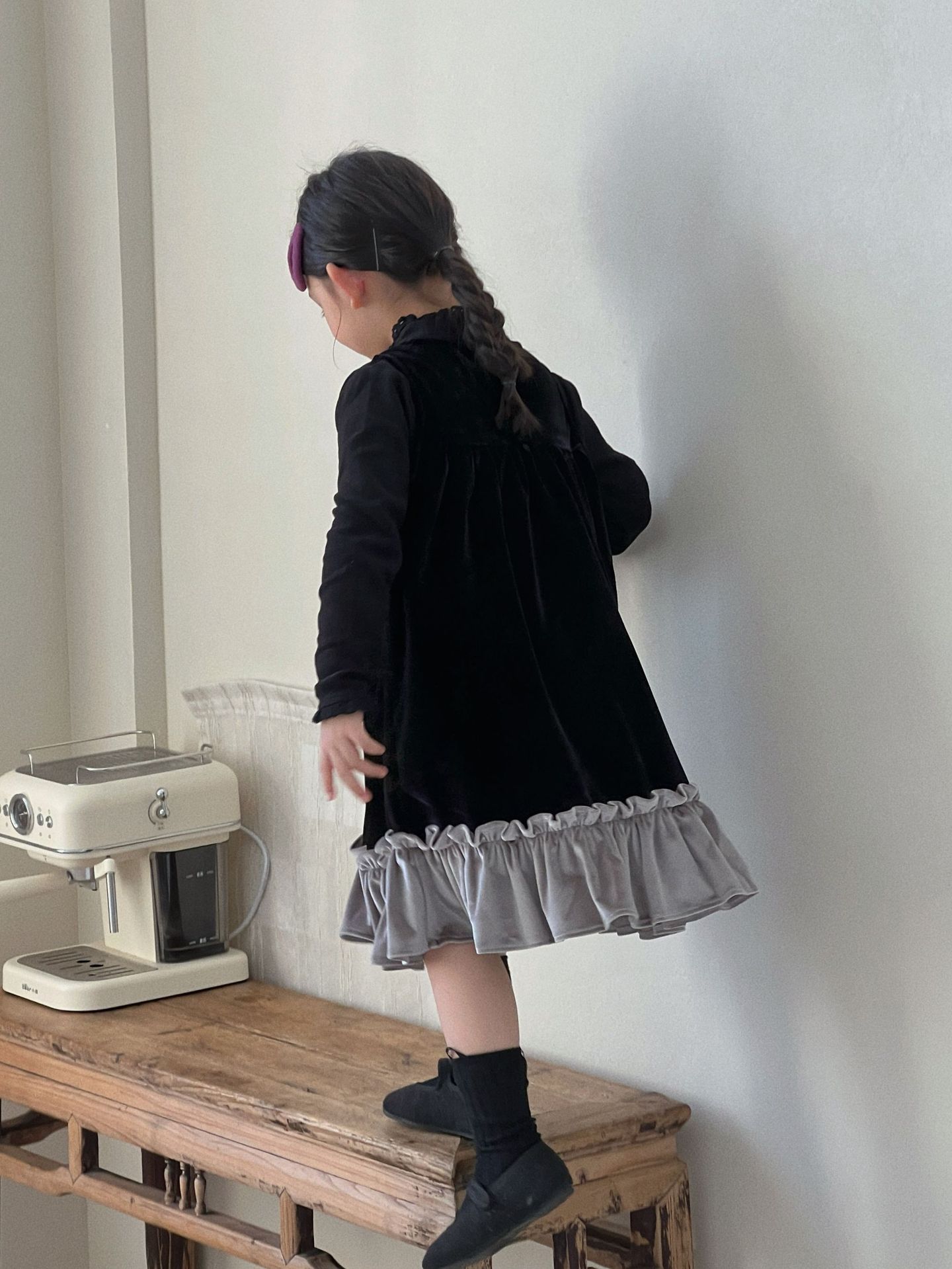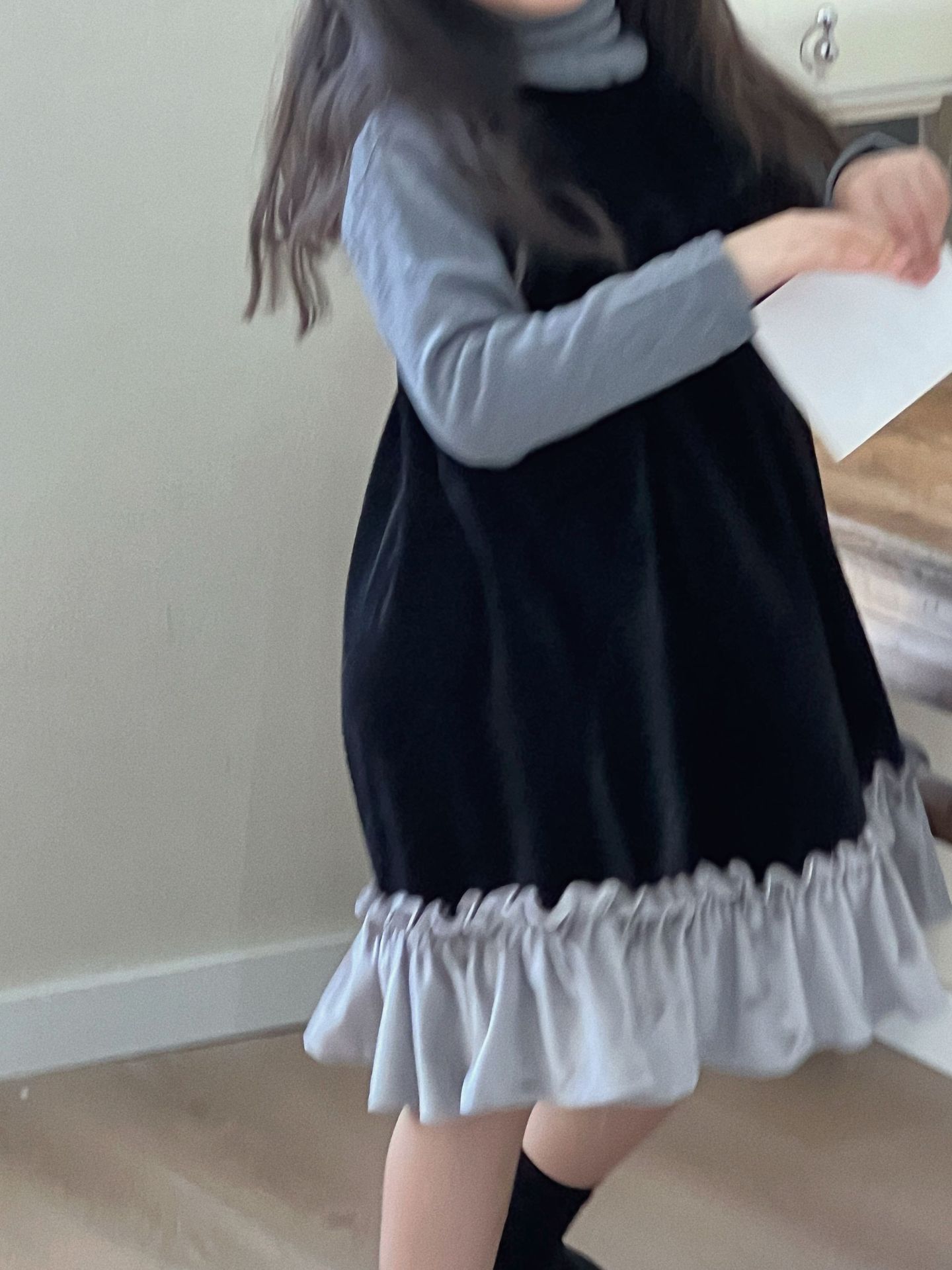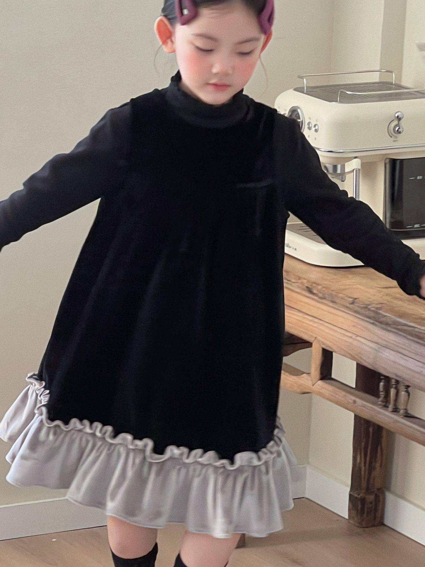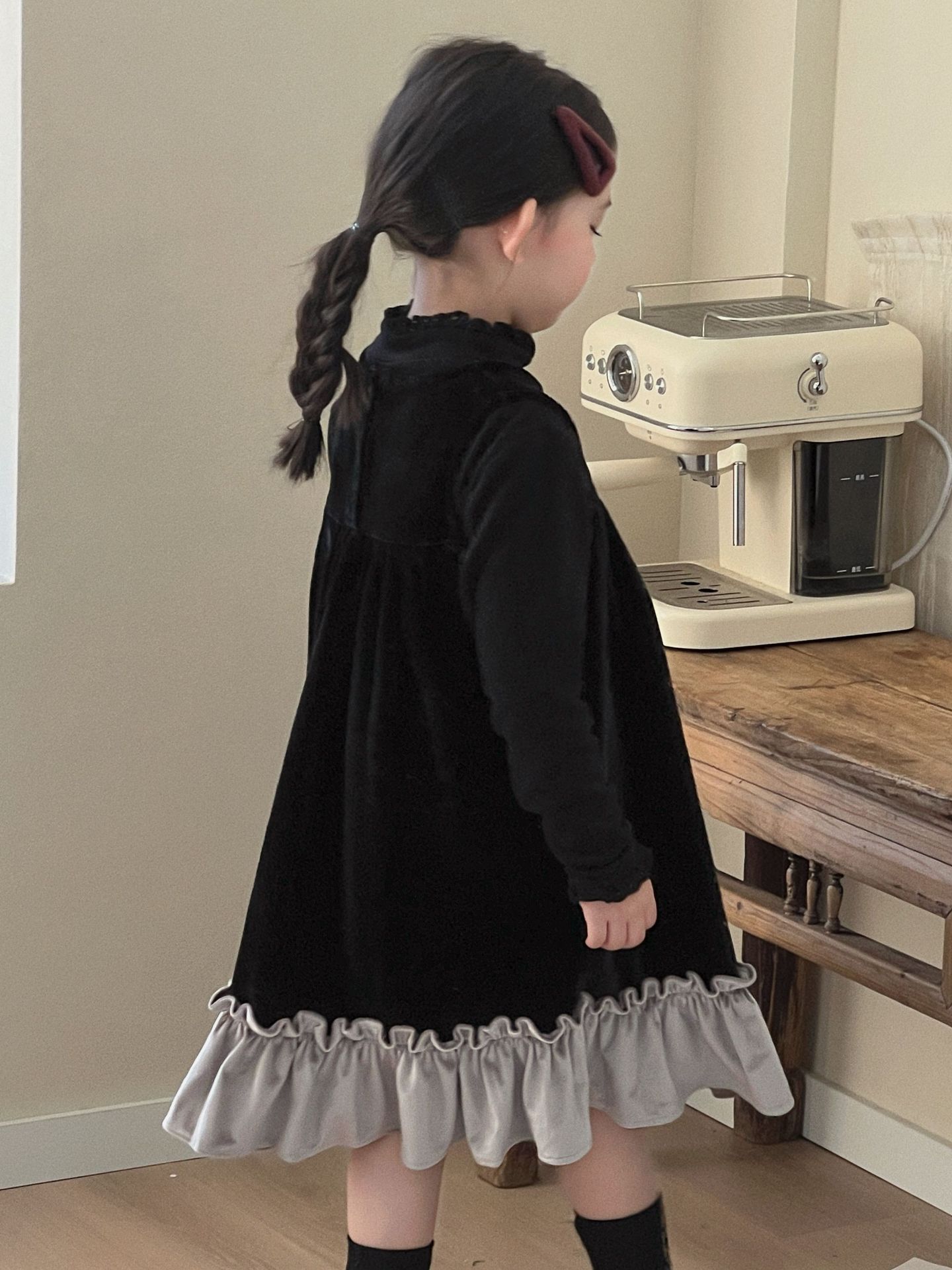 2025 가을 겨울 여아 벨벳 드레스, 배색 스티치 민소매 조끼 드레스, 새해용 플러스 벨벳 공주 드레스