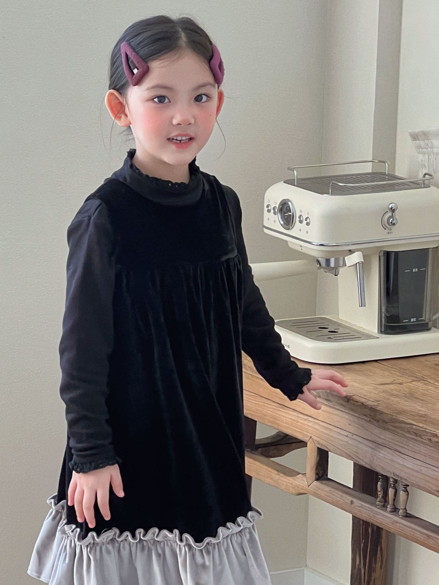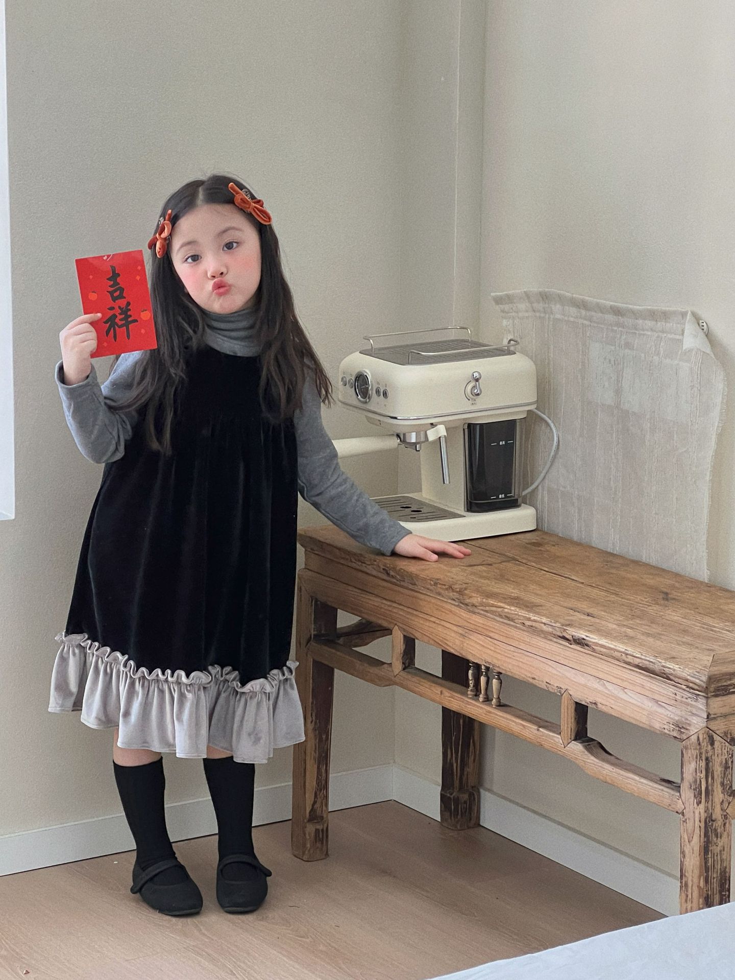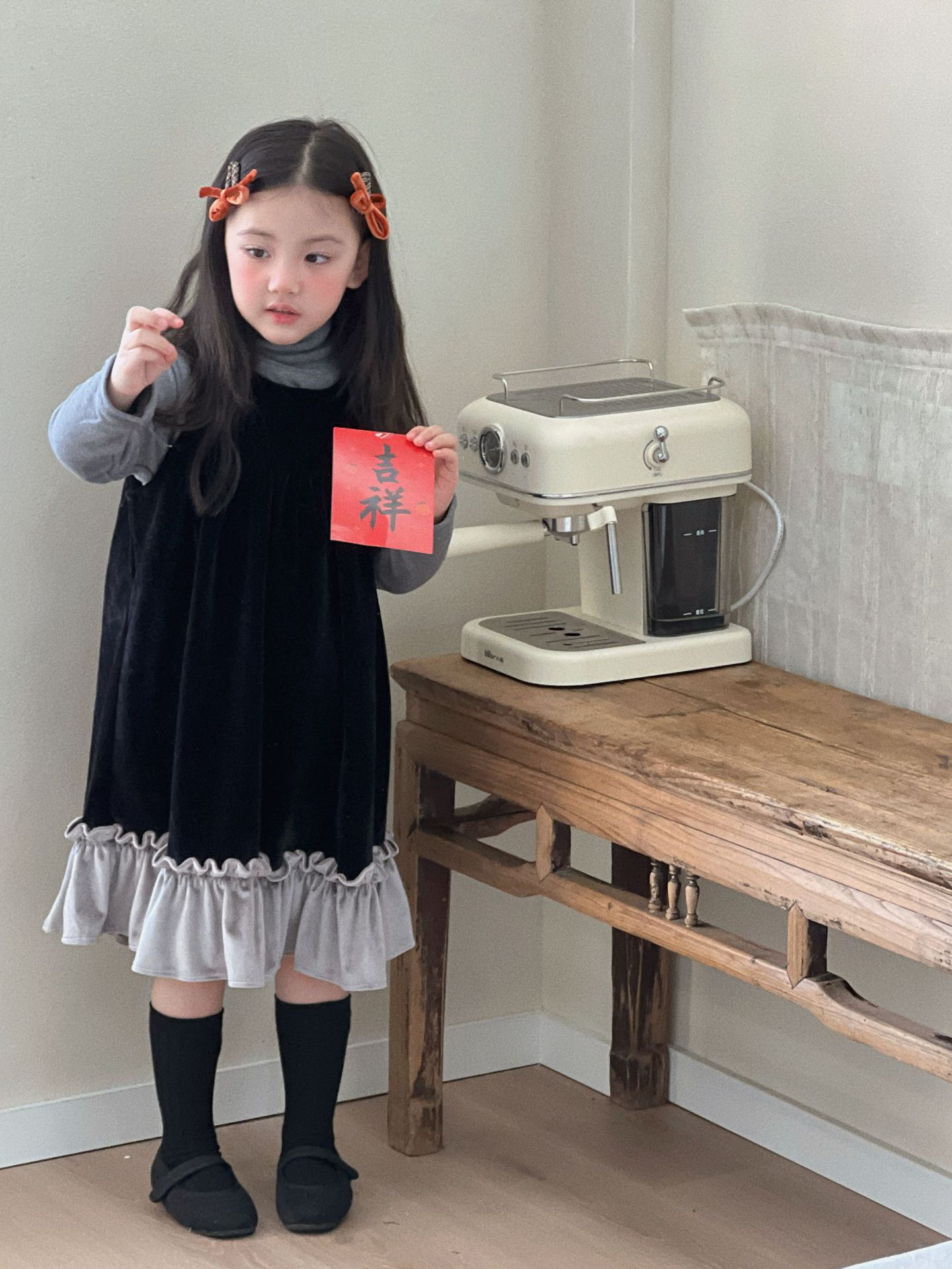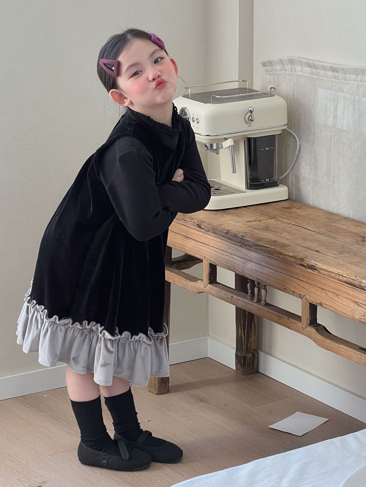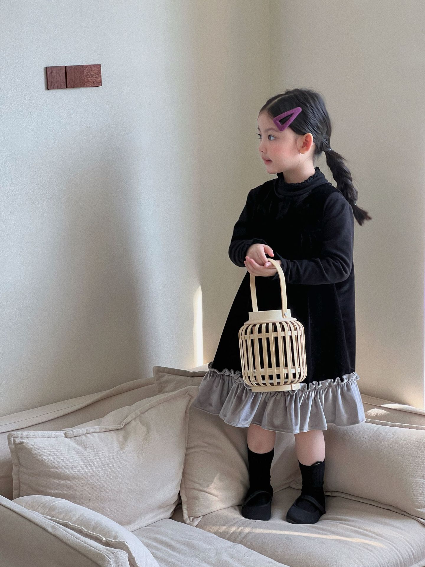 2025 가을 겨울 여아 벨벳 드레스, 배색 스티치 민소매 조끼 드레스, 새해용 플러스 벨벳 공주 드레스