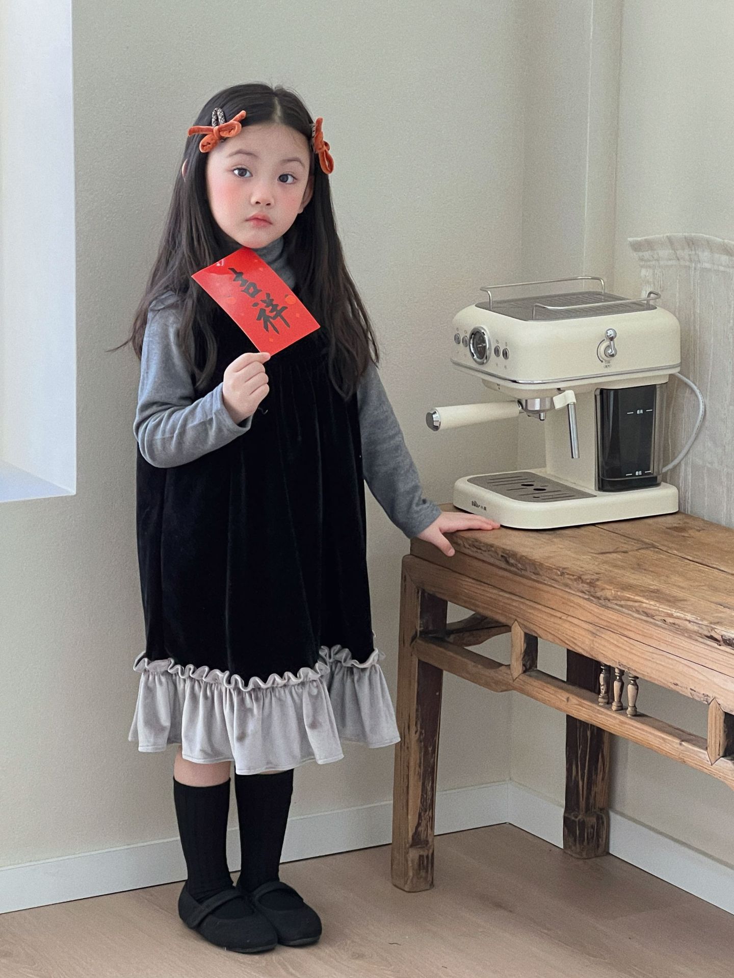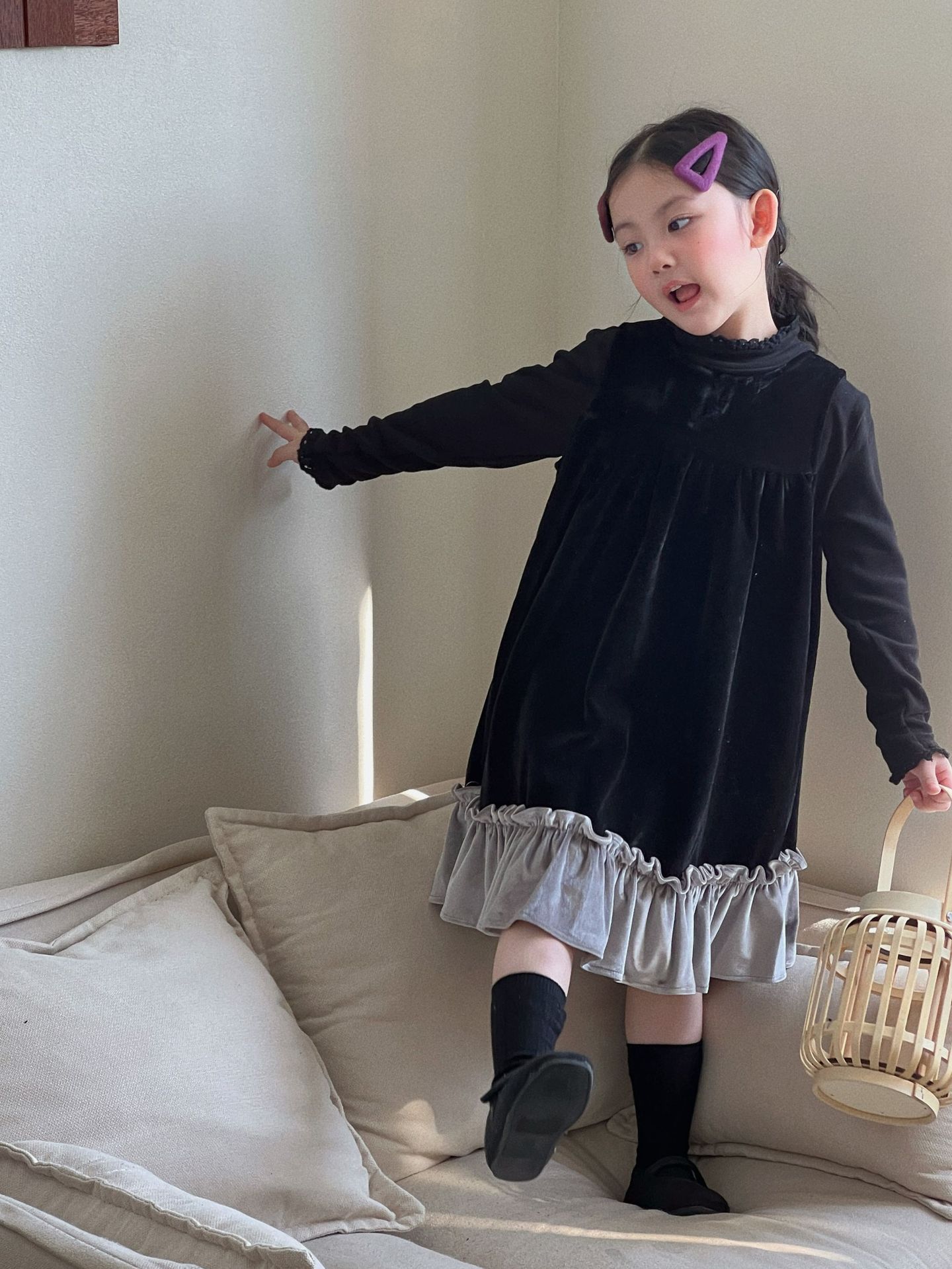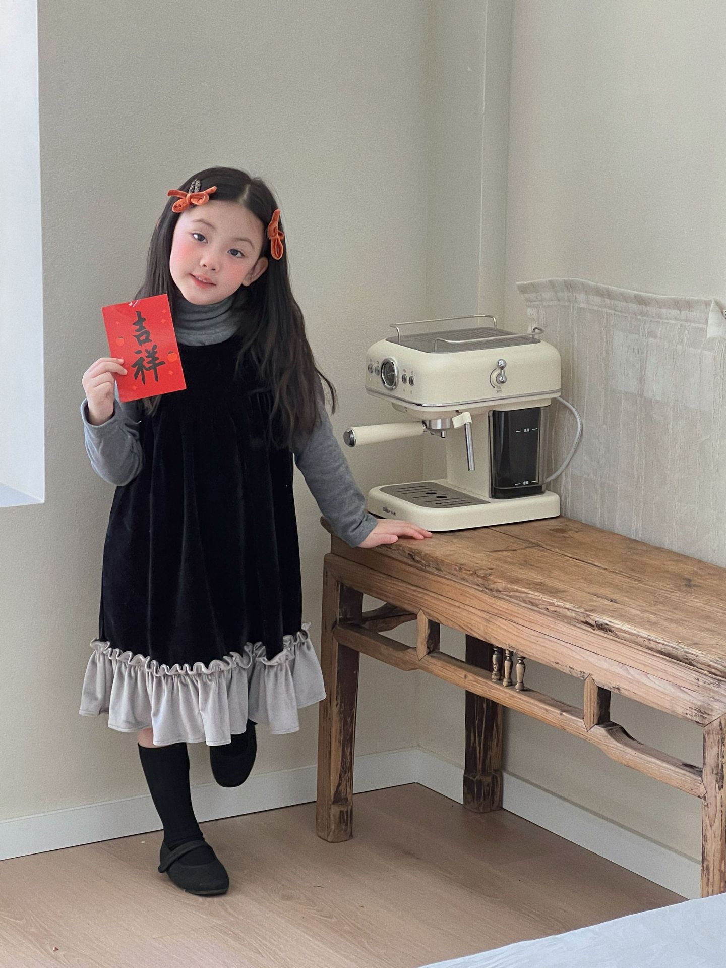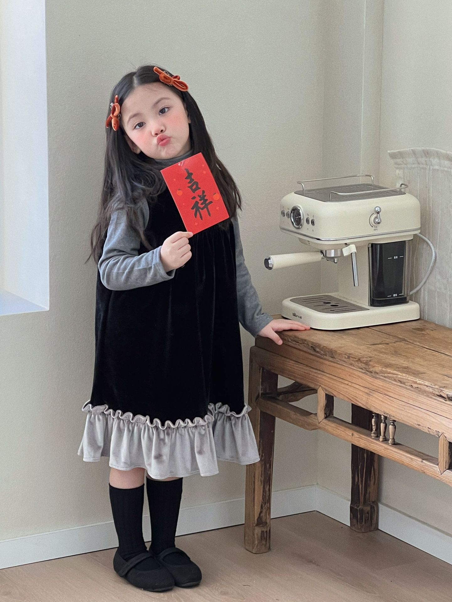 2025 가을 겨울 여아 벨벳 드레스, 배색 스티치 민소매 조끼 드레스, 새해용 플러스 벨벳 공주 드레스