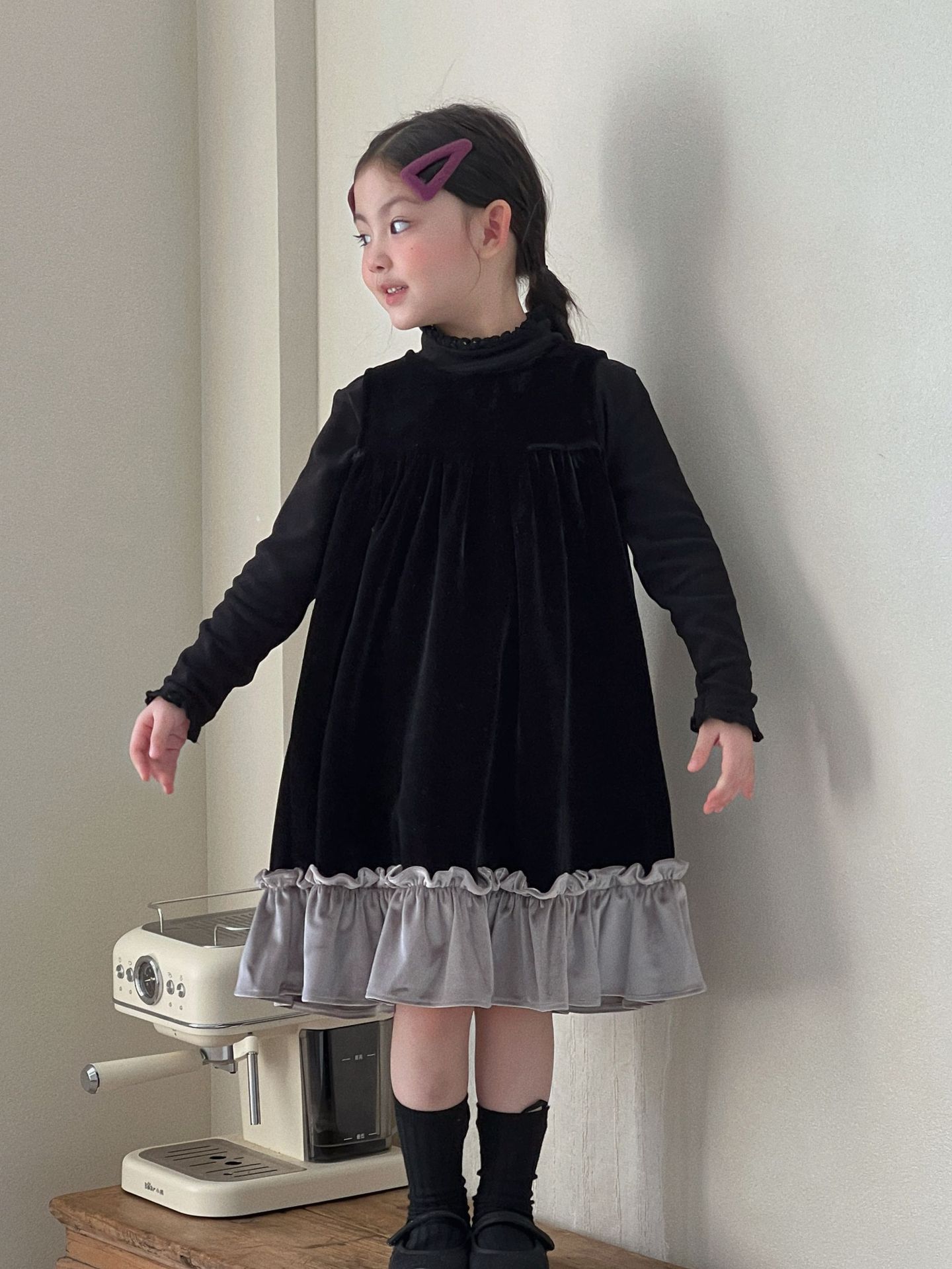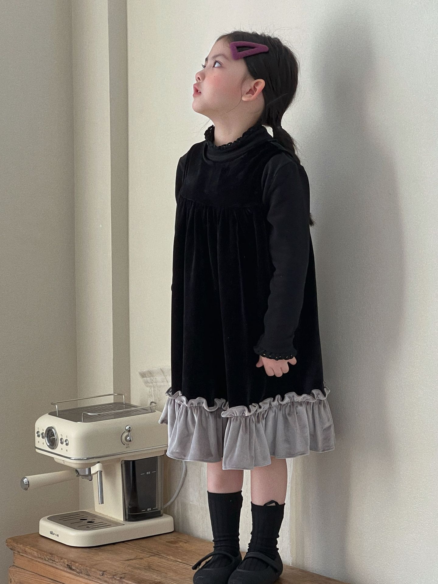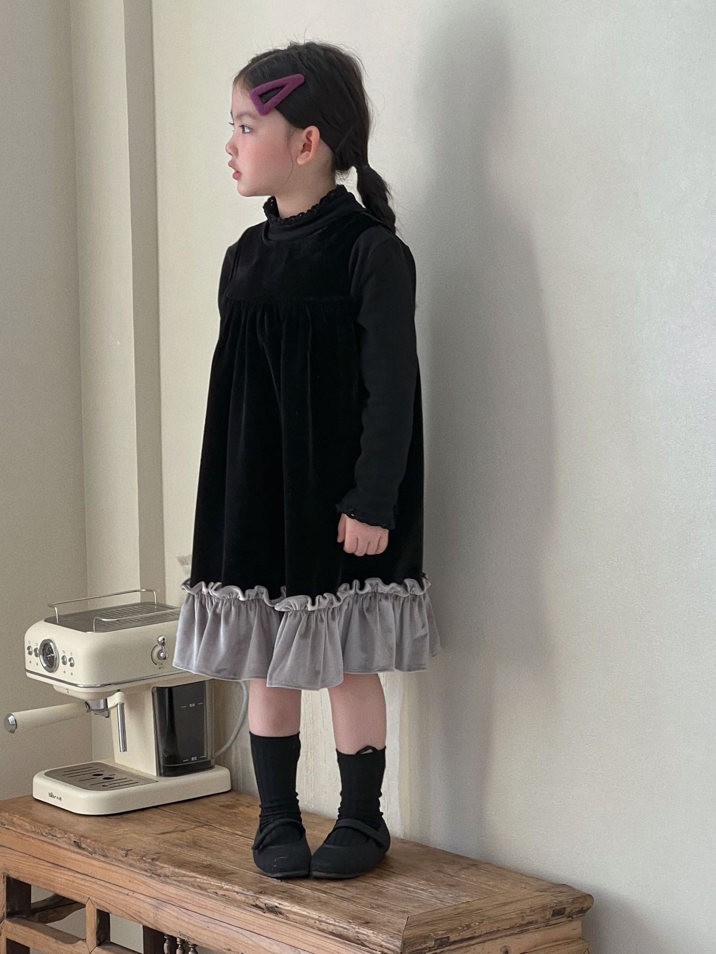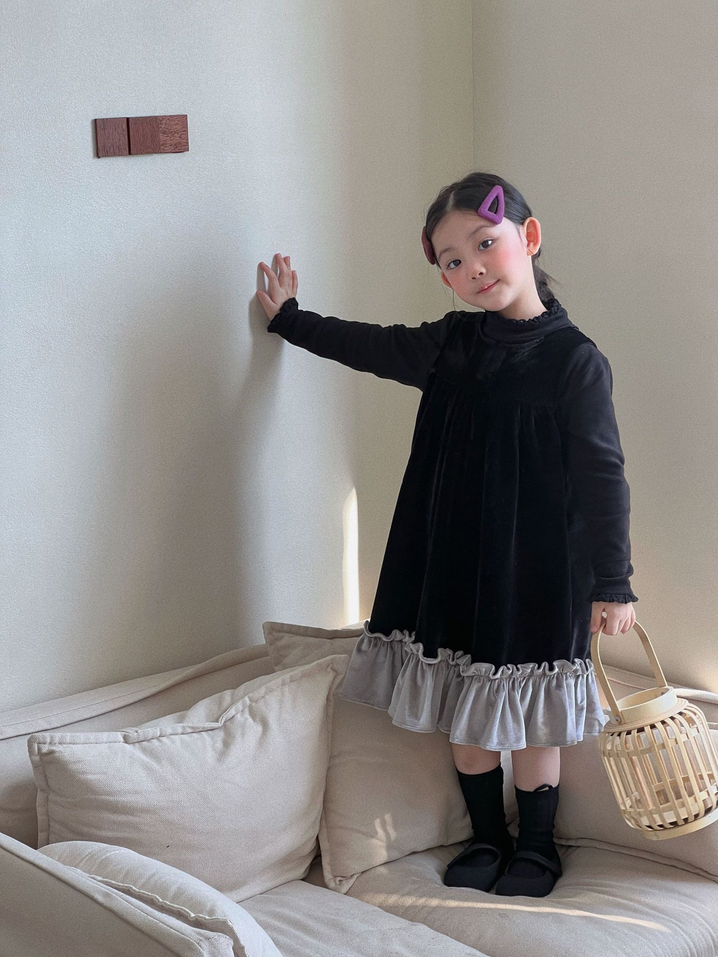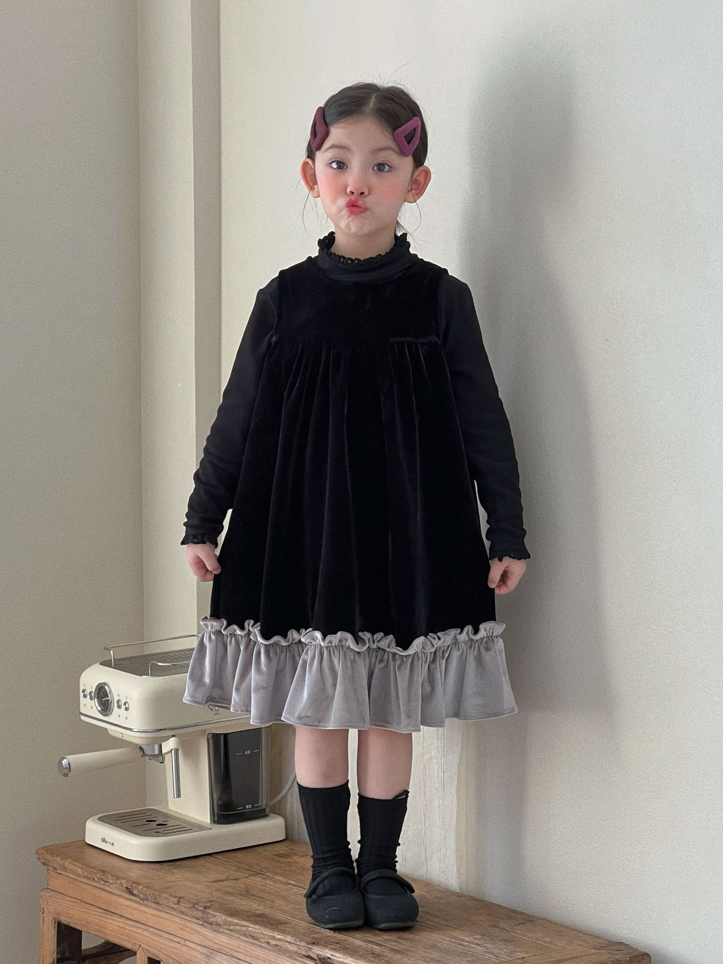 2025 가을 겨울 여아 벨벳 드레스, 배색 스티치 민소매 조끼 드레스, 새해용 플러스 벨벳 공주 드레스
