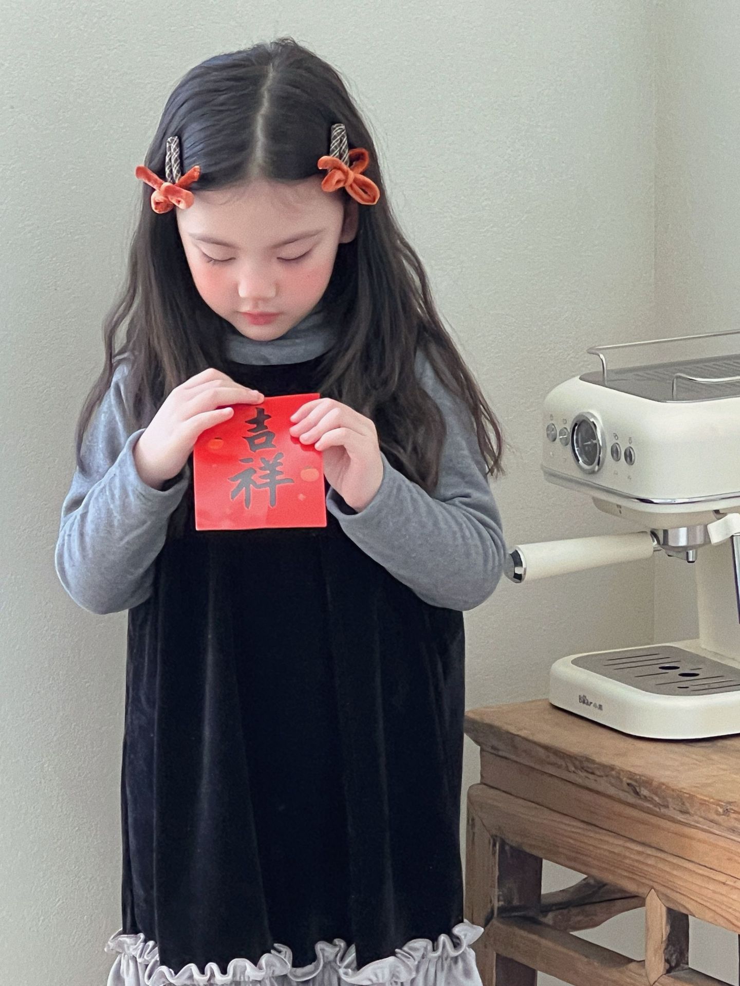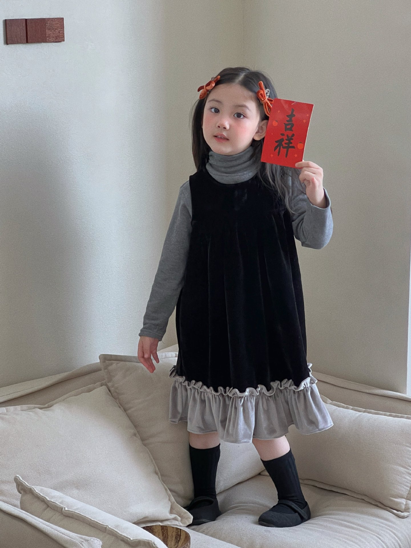 2025年秋冬女童丝绒连衣裙撞色拼接无袖背心裙新年加绒公主裙