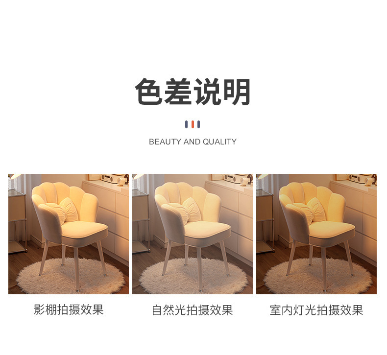 化妆椅家用女生卧室梳妆台椅子花瓣椅化妆凳轻奢美甲椅靠背梳妆凳