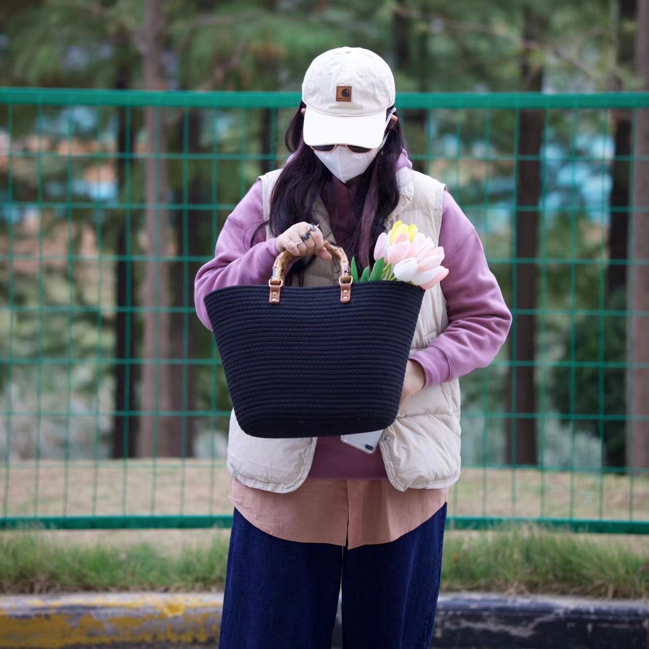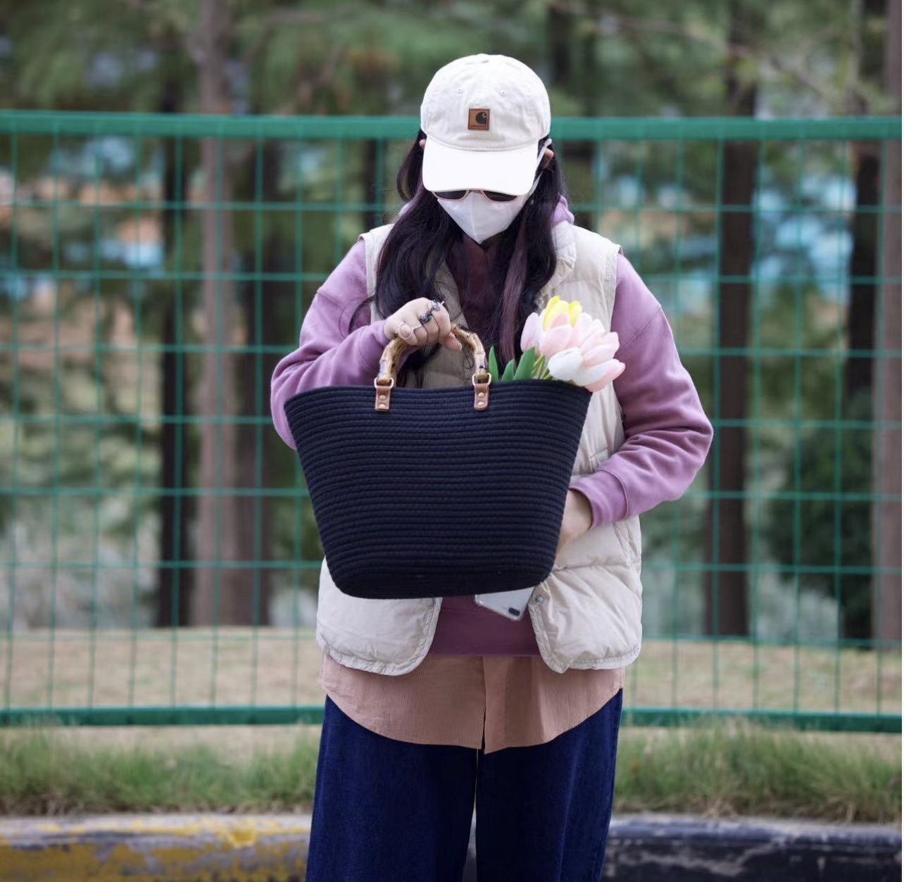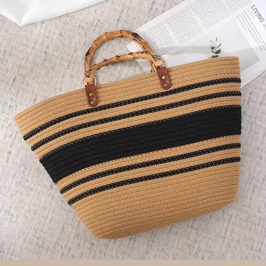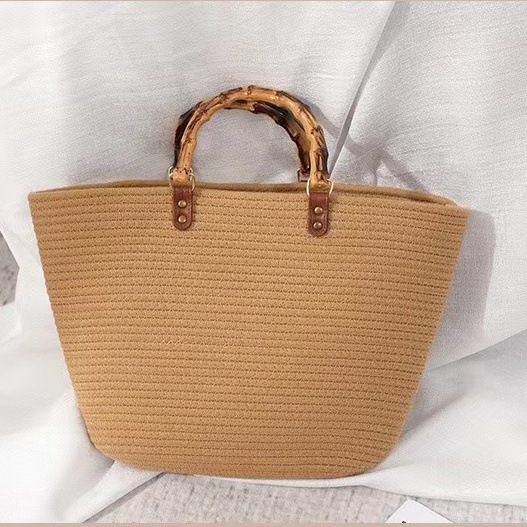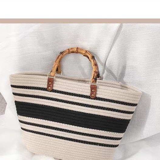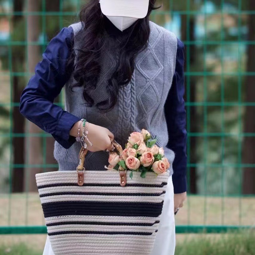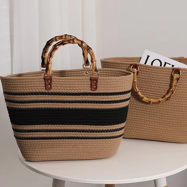 제조 업체 재고 핸드백 대용량 코튼 로프 토트 빈티지 대나무 손잡이 핸드백 짠 가방스토어 가기