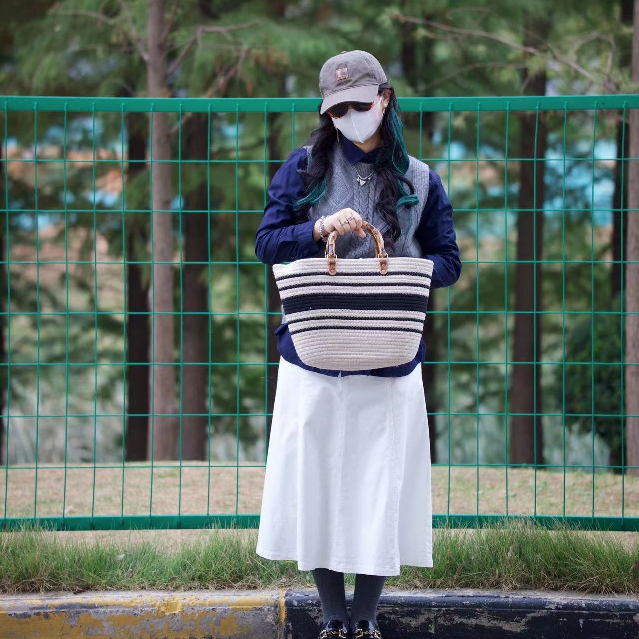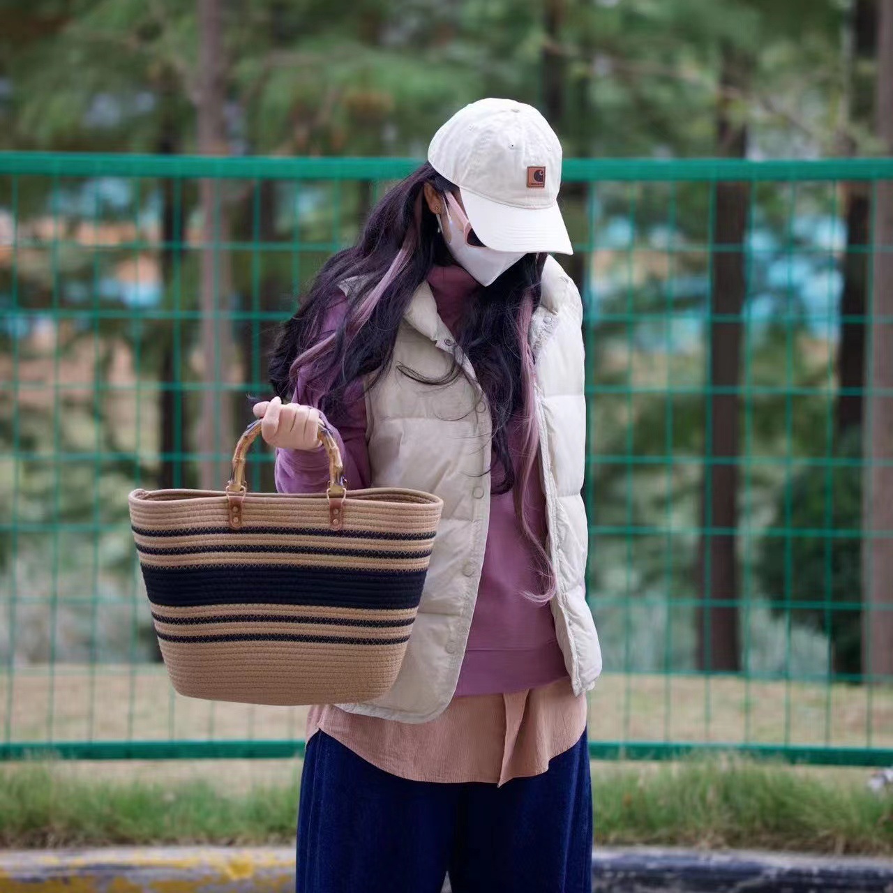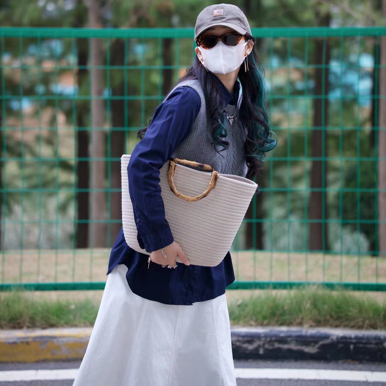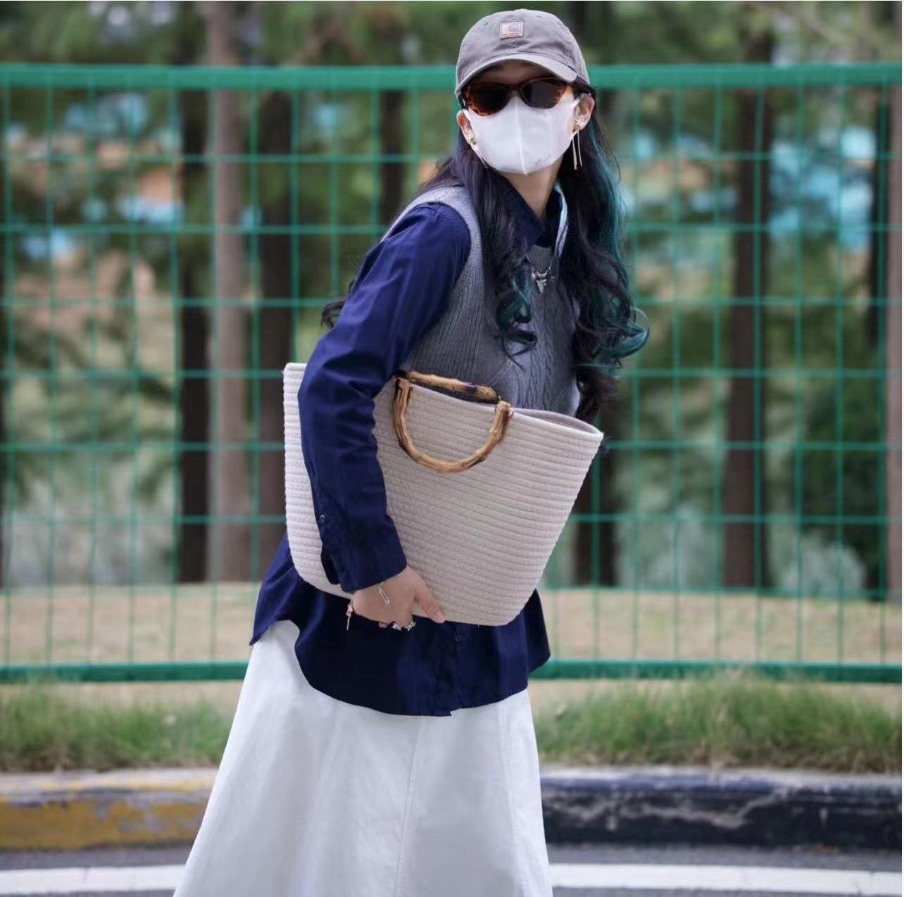 제조 업체 재고 핸드백 대용량 코튼 로프 토트 빈티지 대나무 손잡이 핸드백 짠 가방스토어 가기