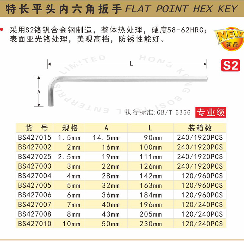 • 플랫 헤드 표준 육각 렌치 (6150 거울) 5BS420805