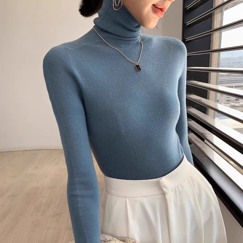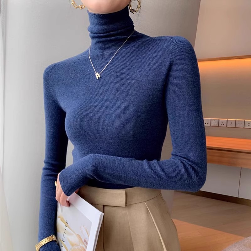 2023 가을과 겨울 더미 터틀넥 캐시미어 스웨터 여성 서양식 슬림 핏 두꺼운 바닥 스웨터 풀오버 탑