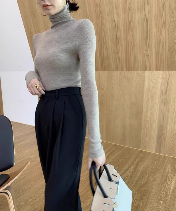 2023 가을과 겨울 더미 터틀넥 캐시미어 스웨터 여성 서양식 슬림 핏 두꺼운 바닥 스웨터 풀오버 탑스토어 가기