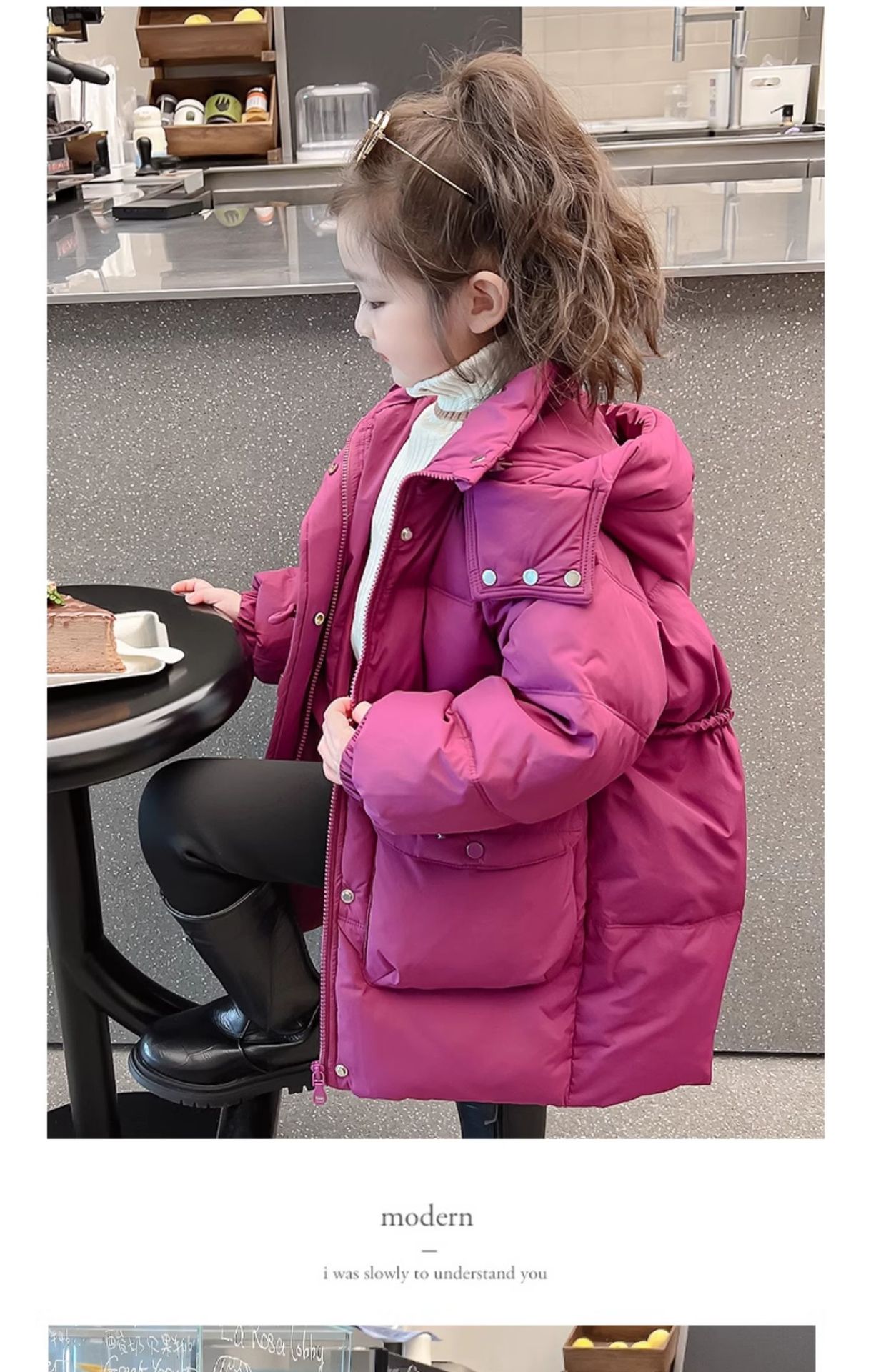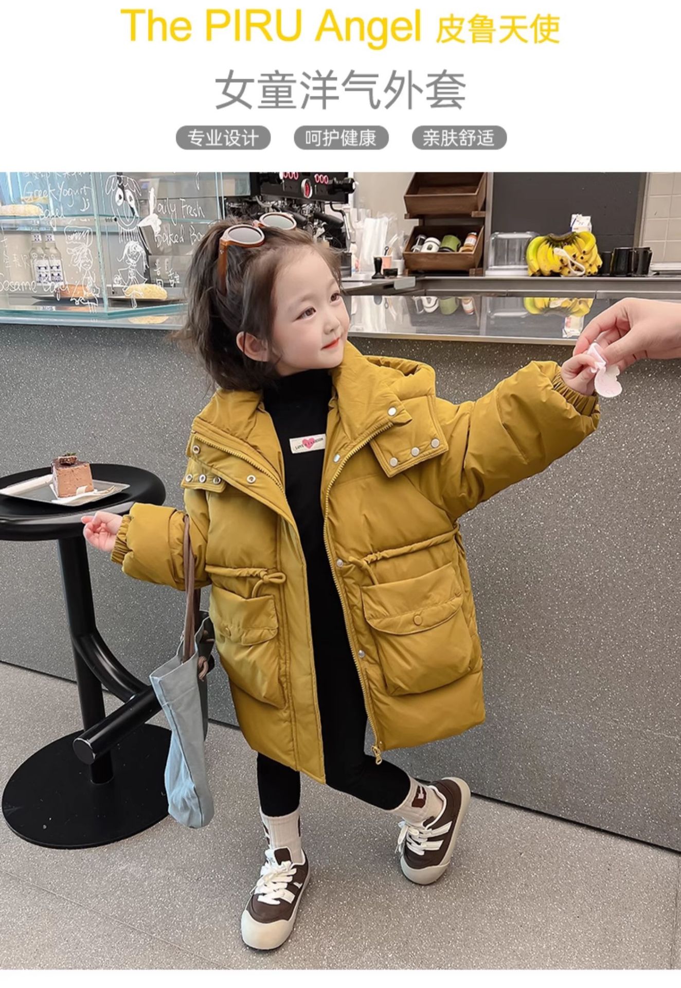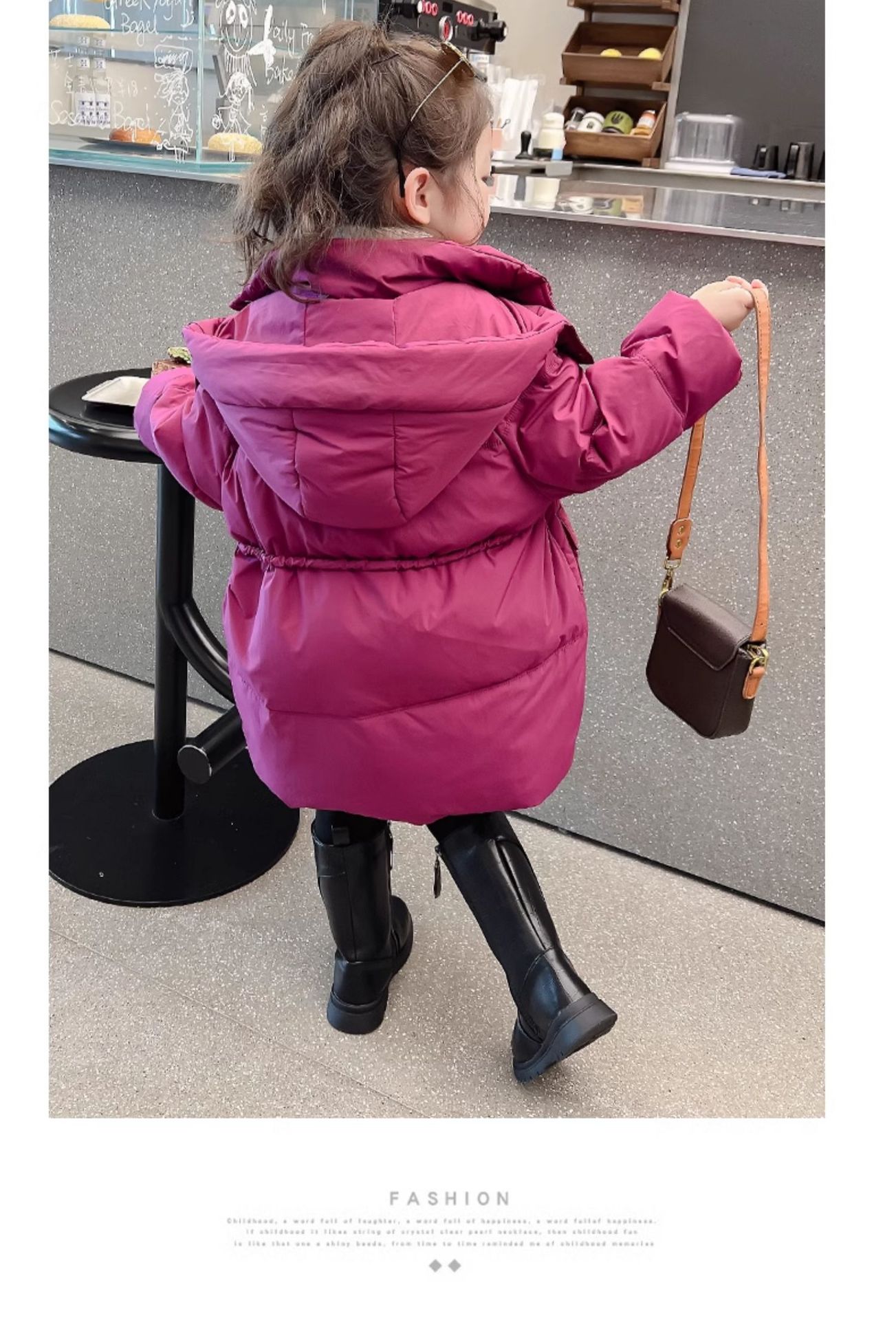여아용 다운 재킷 중간 길이 2024년 신상 겨울 어린 소녀용 흰색 오리털 두꺼운 아기 겨울 코트스토어 가기