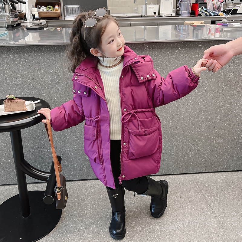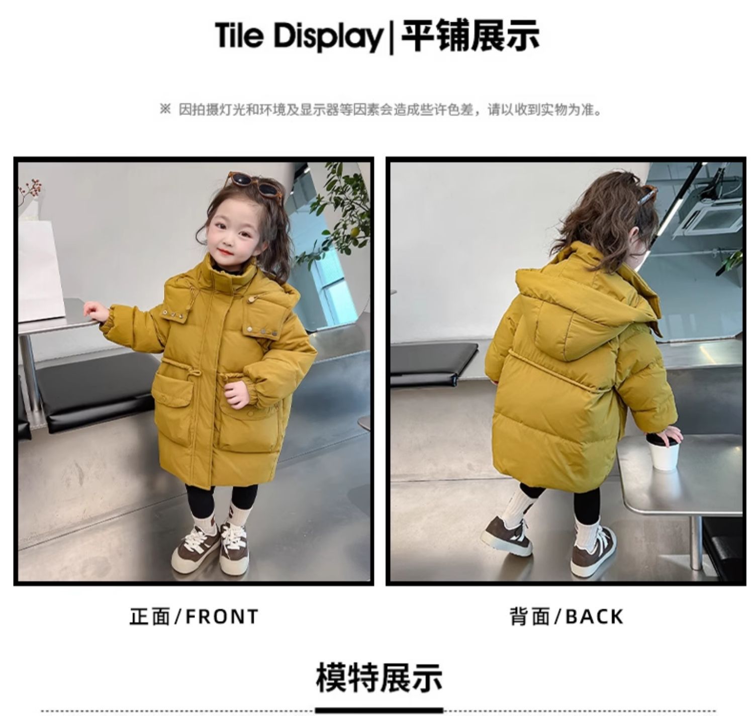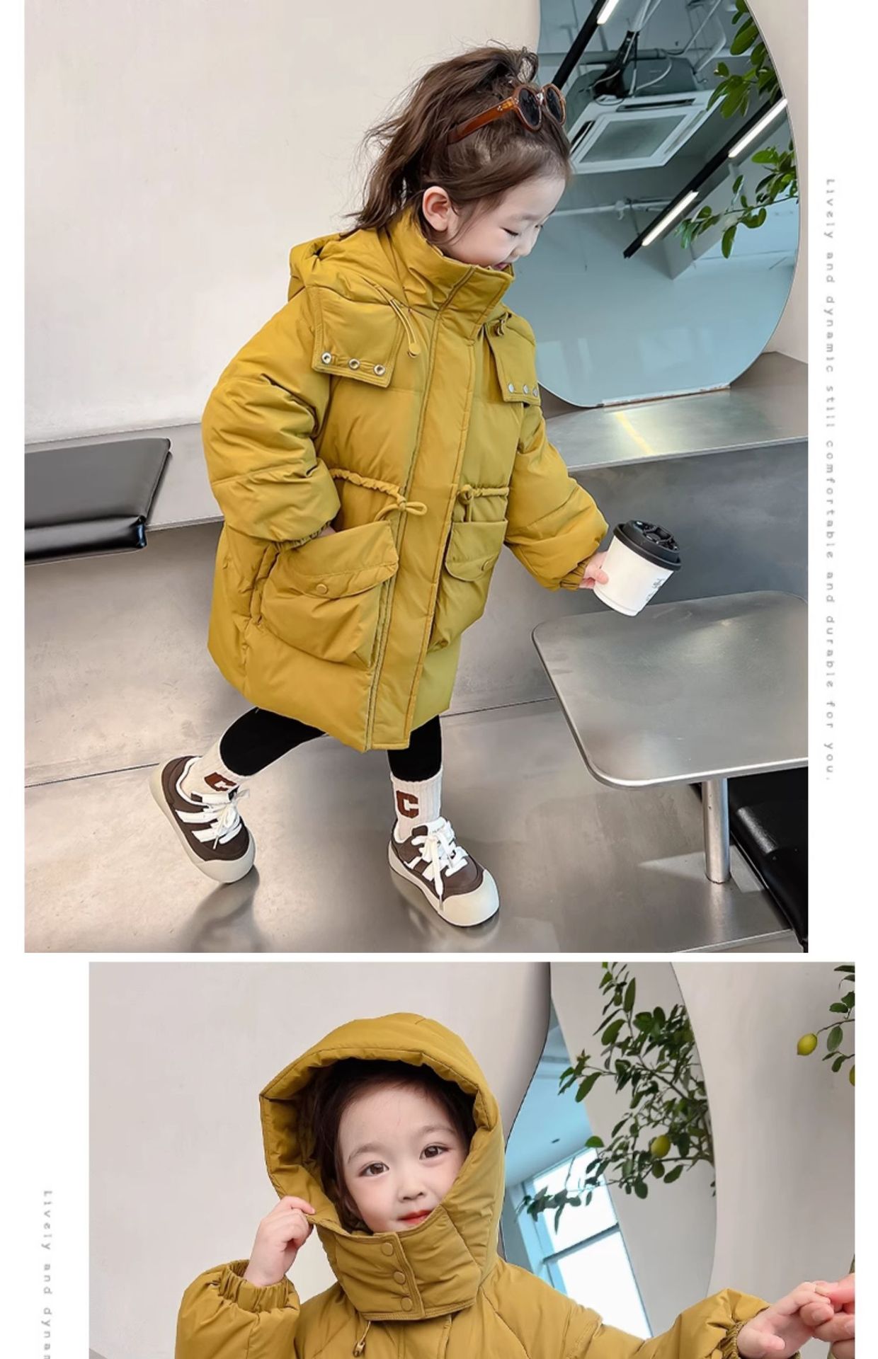 여아용 다운 재킷 중간 길이 2024년 신상 겨울 어린 소녀용 흰색 오리털 두꺼운 아기 겨울 코트스토어 가기