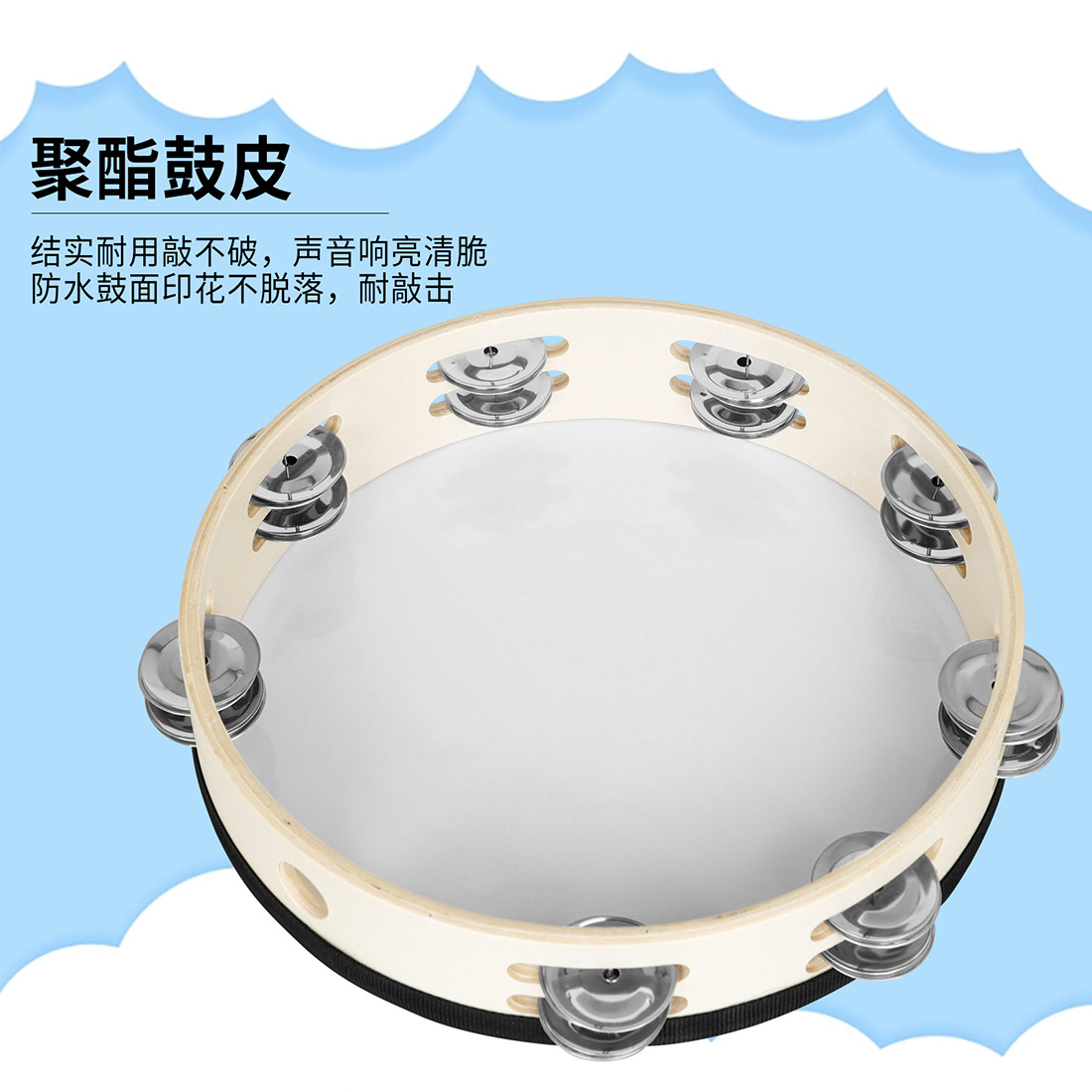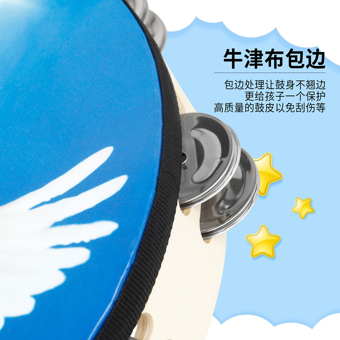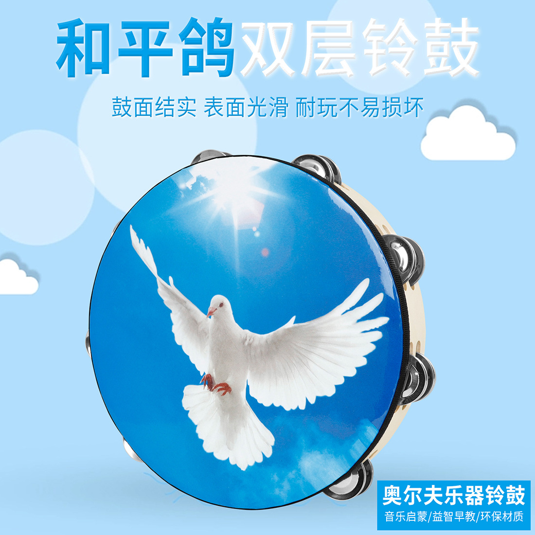 用途卖点:10寸双层手摇铃鼓-蓝天和平鸽,牛津布绳带,周边绳带为鼓圈起到保护作用,防止掉地上损坏,防止翘边,双层不锈钢铃片,摇动起来声音清脆悦耳,适合乐队伴奏和儿童对音乐的启蒙,铃鼓边缘手工打磨,无毛刺,不伤手,PET防水鼓面质地柔软,油墨印刷色彩亮丽,有韧劲