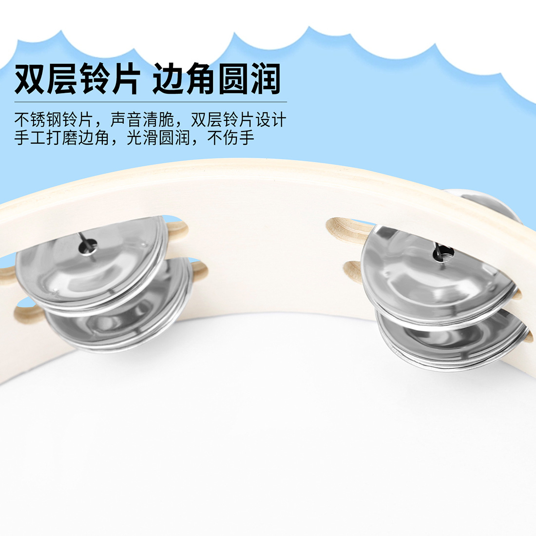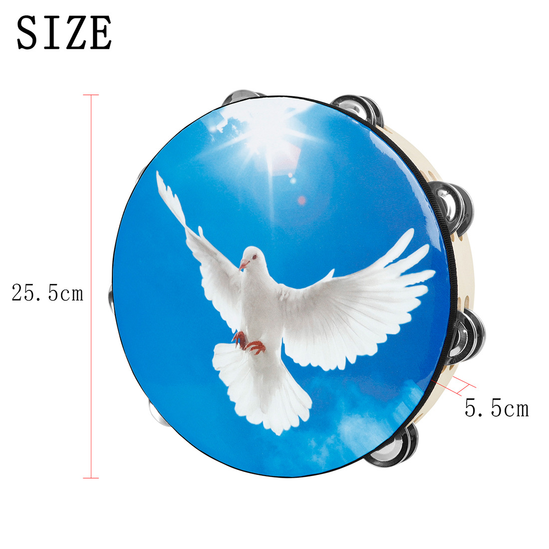 产品名称:10寸双层手摇铃鼓-蓝天和平鸽