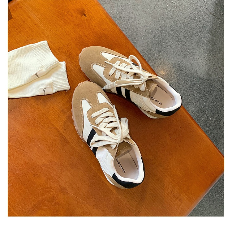 포도 엄마 studiolee 컬러 매칭 레이스 업 Maillard 캐주얼 기모 스포츠 독일 훈련 보드 신발 가을 겨울