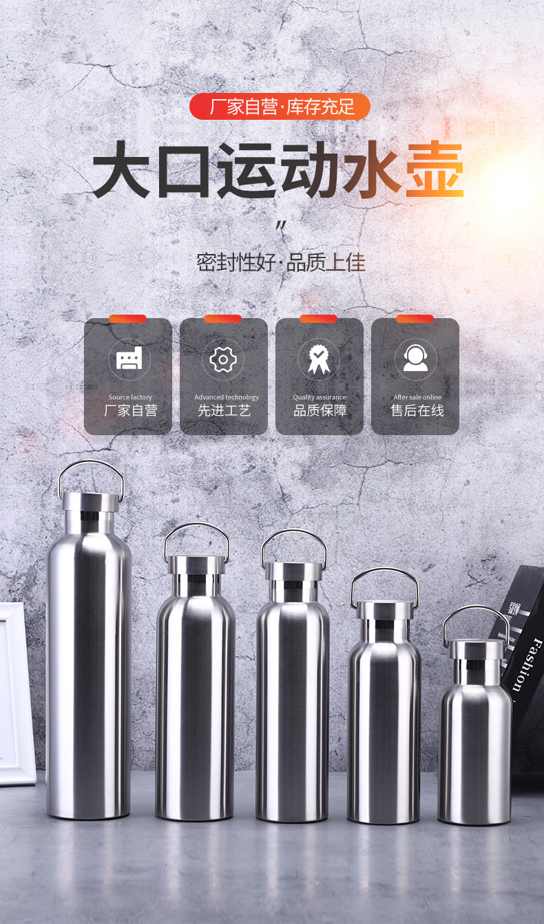 더블 레이어 진공 절연 스테인레스 스틸 야외 진공 스포츠 주전자 레터링 진공 컵 등산 피트니스 워터 컵