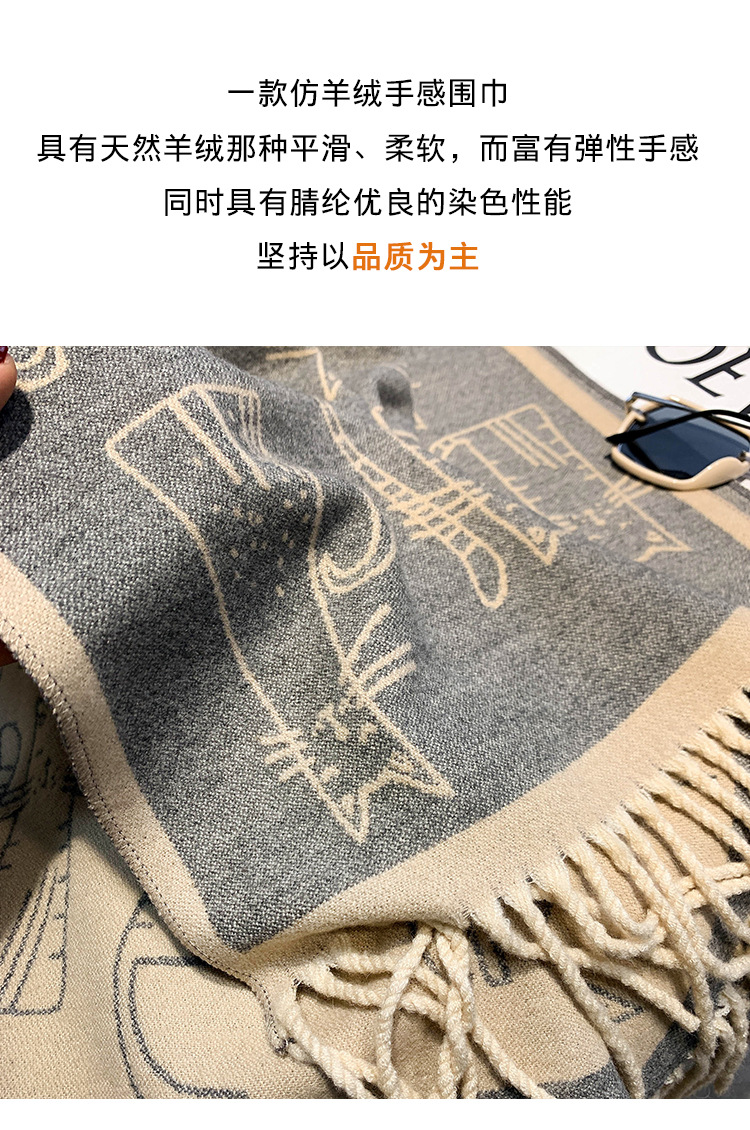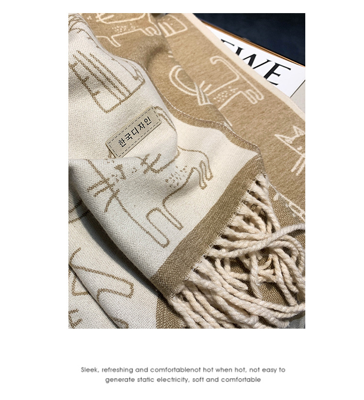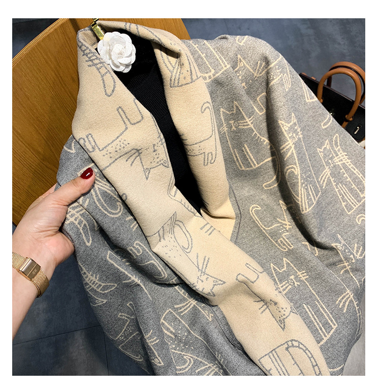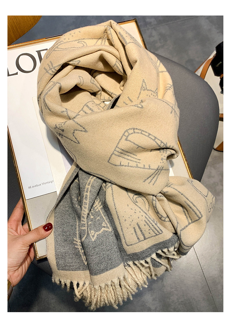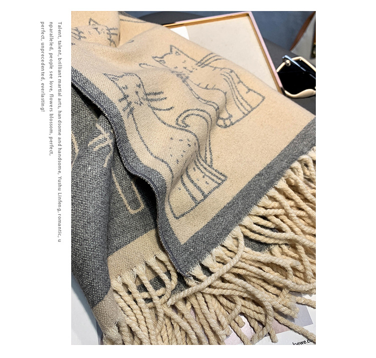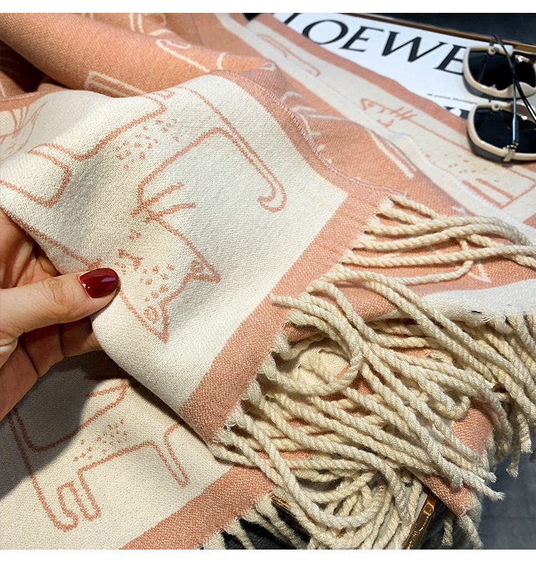 2023 새로운 두꺼운 술 스카프 여성 고양이 프린트 캐시미어-인기있는 목도리 가을과 겨울 따뜻한 스카프