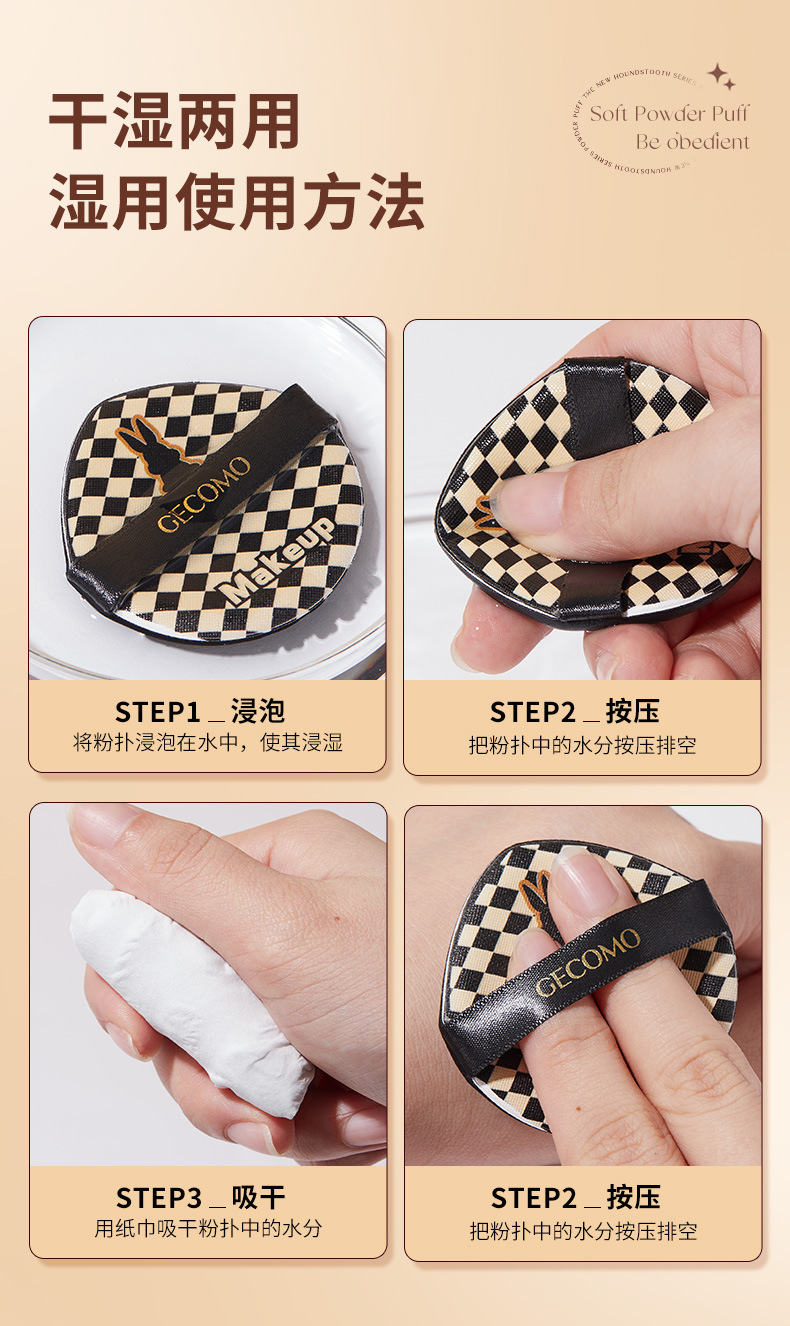 GECOMO 체커 보드 파우더 퍼프 세트 박스 인스턴트 에어 쿠션 파우더 퍼프 웨트와 드라이 뷰티 메이크업 메이크업 스폰지 퍼프스토어 가기
