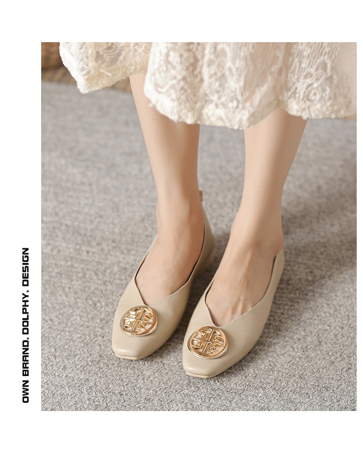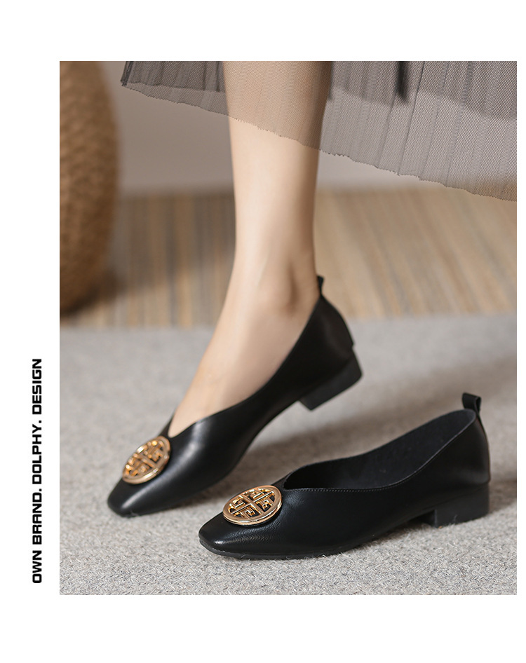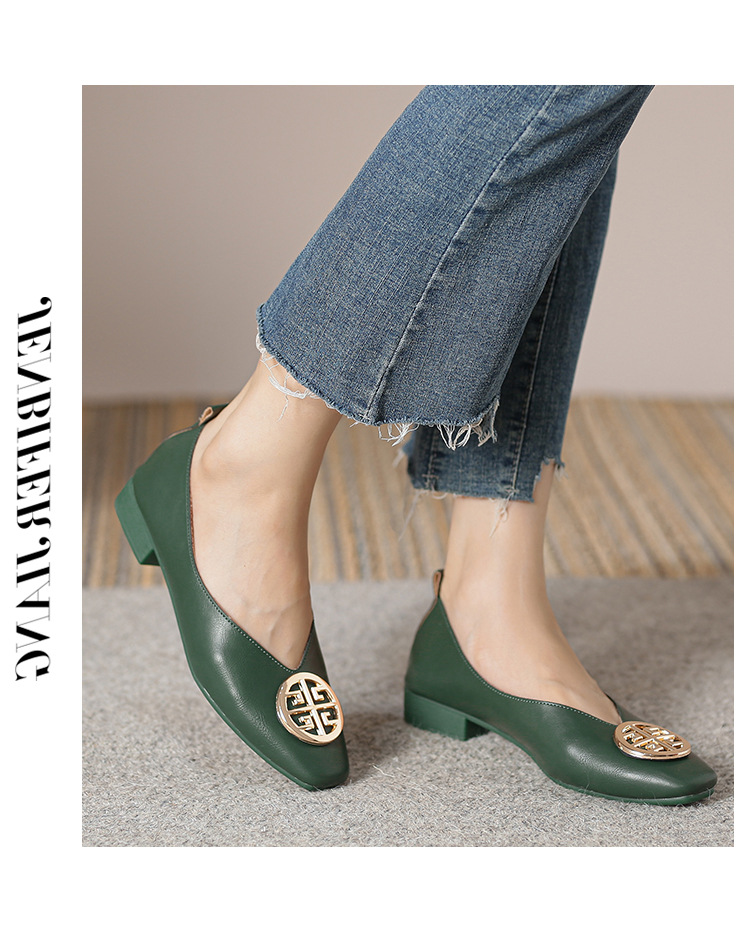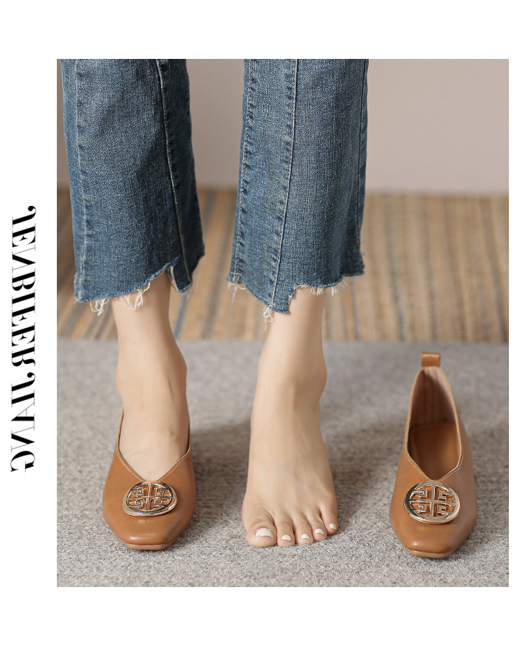 얕은 입 신발 여성의 봄과 여름 2023 새로운 레트로 버클 로우 힐 예술 광장 발가락 부드러운 가죽 메리 제인 신발