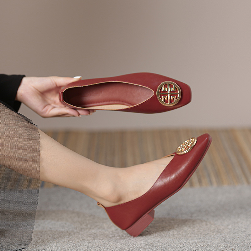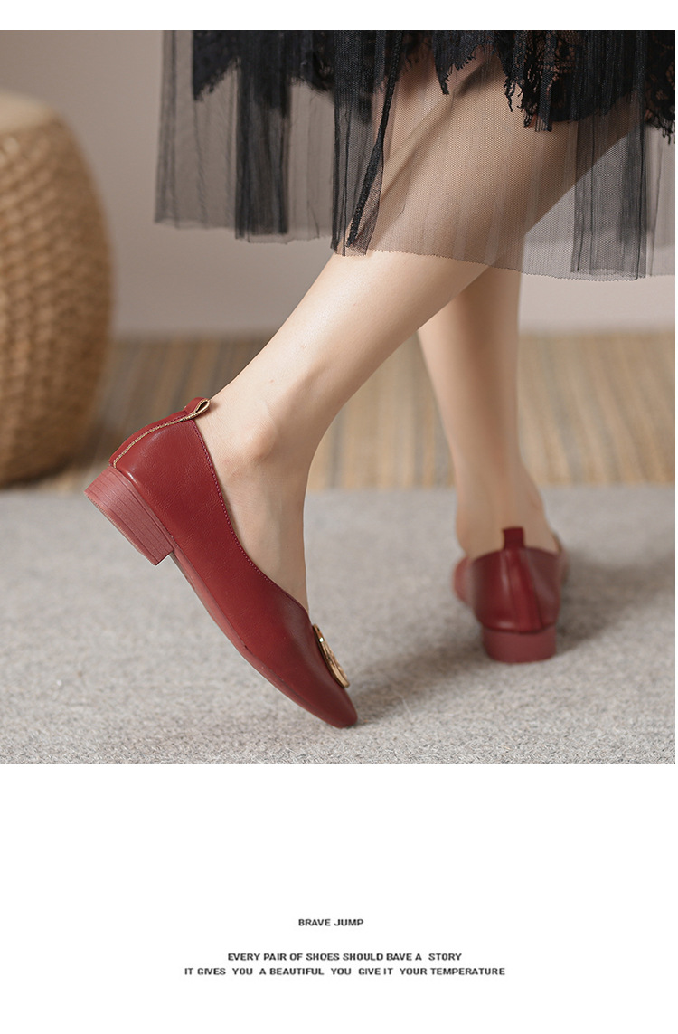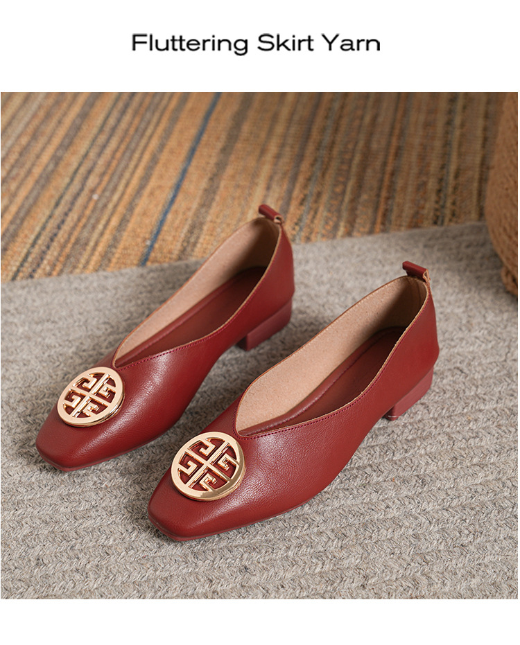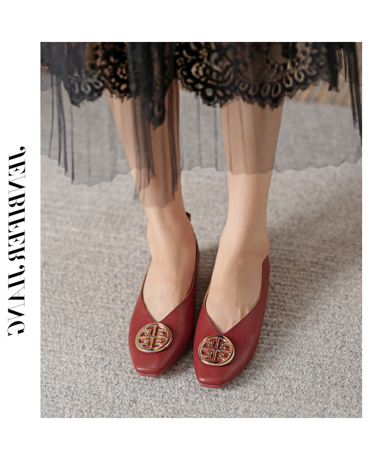 얕은 입 신발 여성의 봄과 여름 2023 새로운 레트로 버클 로우 힐 예술 광장 발가락 부드러운 가죽 메리 제인 신발스토어 가기