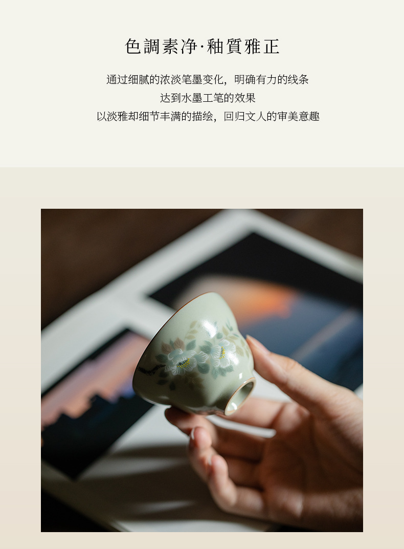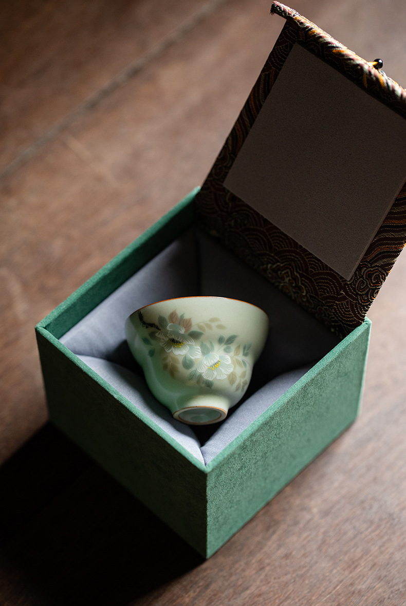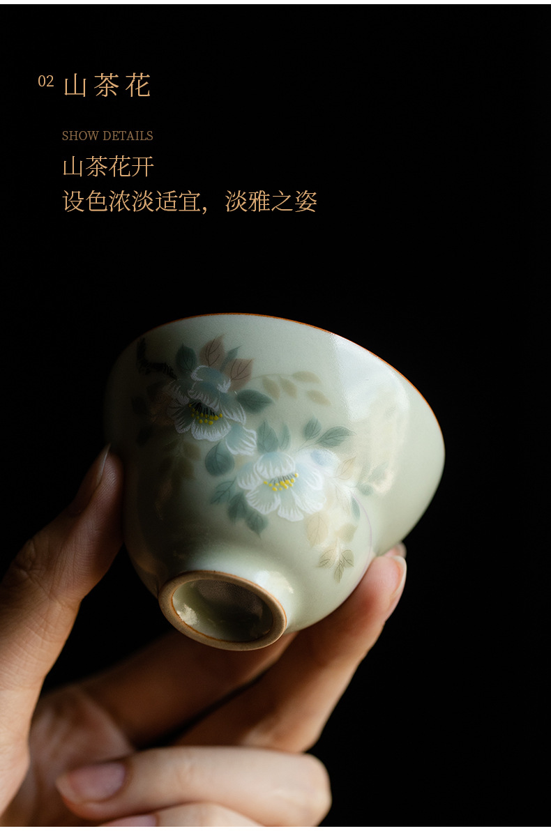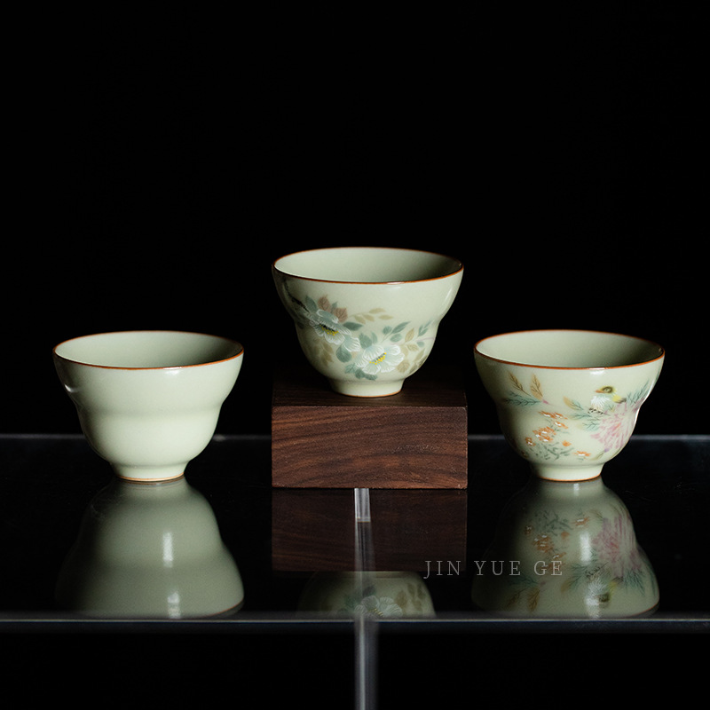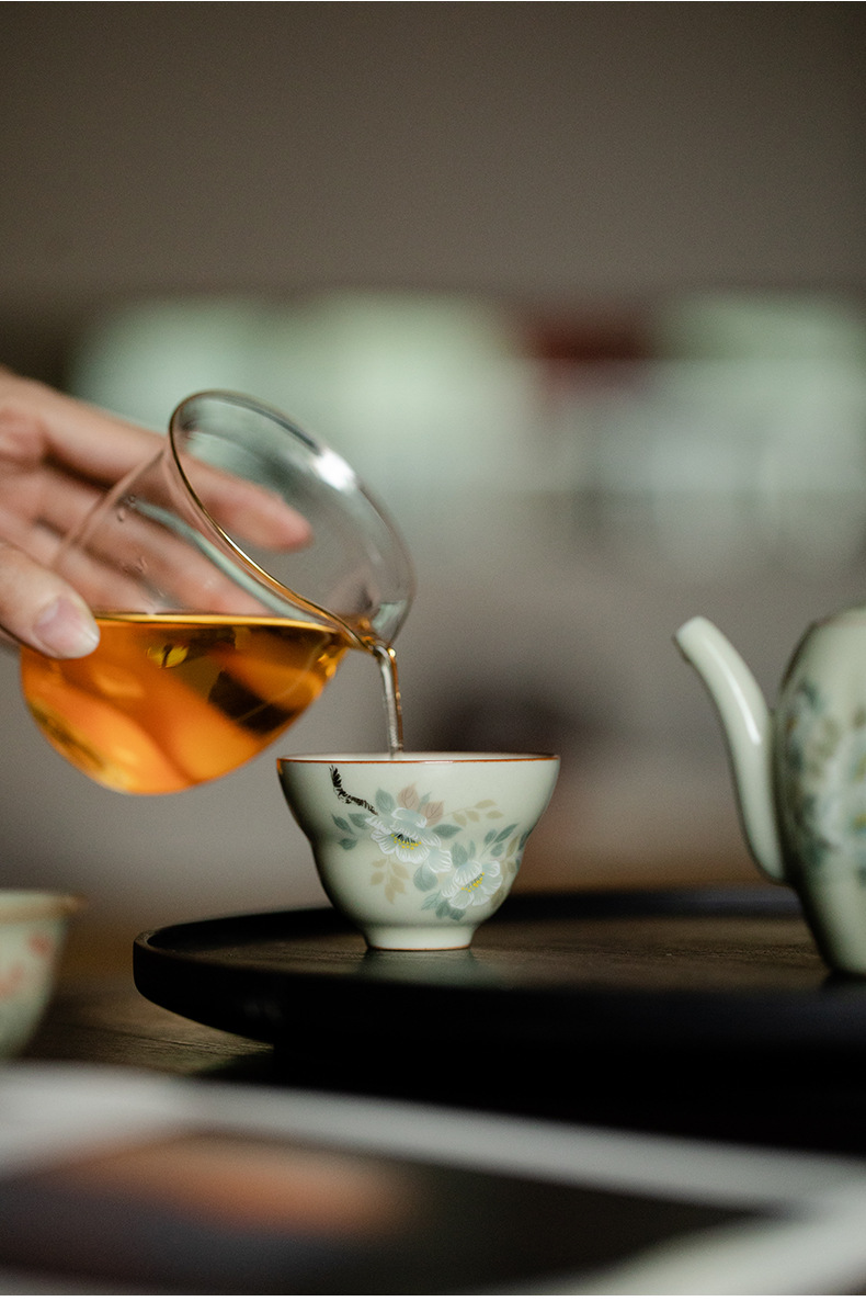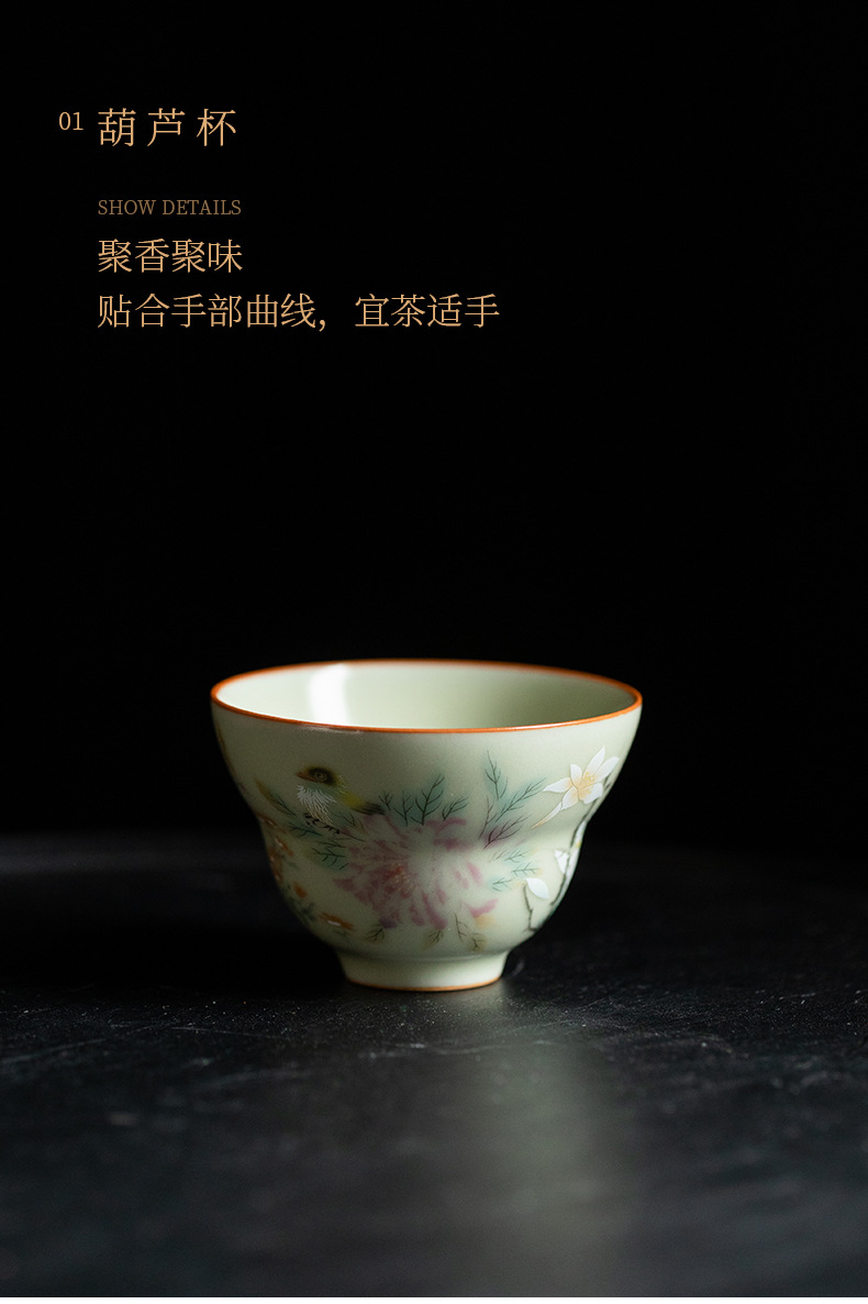 비밀 노란 루 가마 꽃과 새 그림 티 컵 조롱박 컵 마스터 컵 세라믹 비 scald 틈새 쿵푸 차 세트