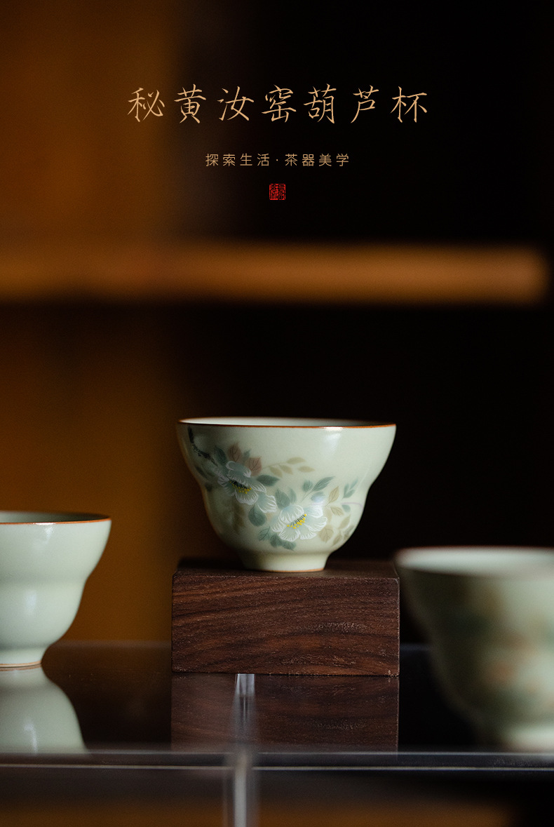 비밀 노란 루 가마 꽃과 새 그림 티 컵 조롱박 컵 마스터 컵 세라믹 비 scald 틈새 쿵푸 차 세트스토어 가기