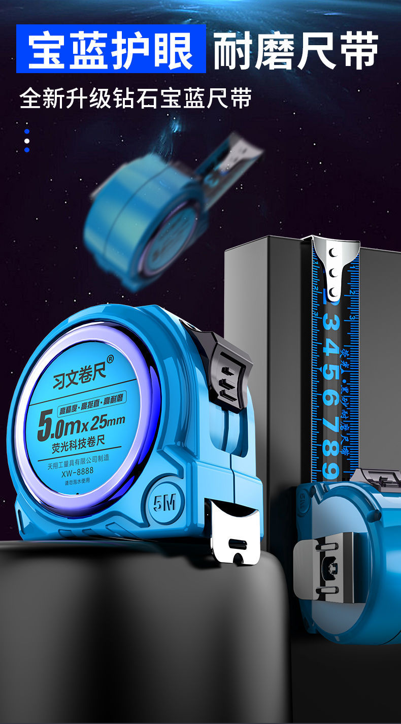 [Xi Wen 블루 라이트 테이프] 고급 5 m 발광 고정밀 확대 7.5 m 10 m 통치자 두꺼운 상자 통치자 노동