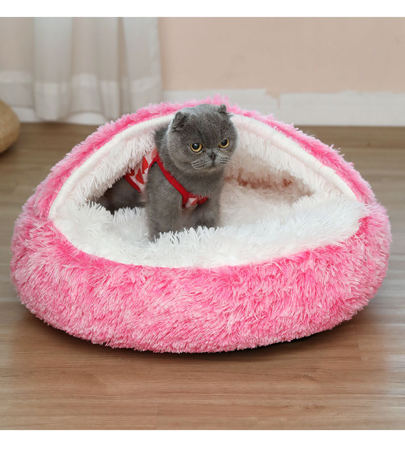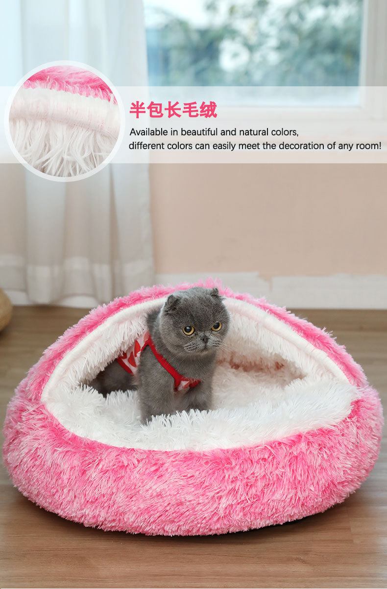 하프 팩 커버 봉제 개집 고양이 둥지 깊은 수면 따뜻한 애완 동물 침대 부드럽고 편안한 반 폐쇄 애완 동물 매트스토어 가기