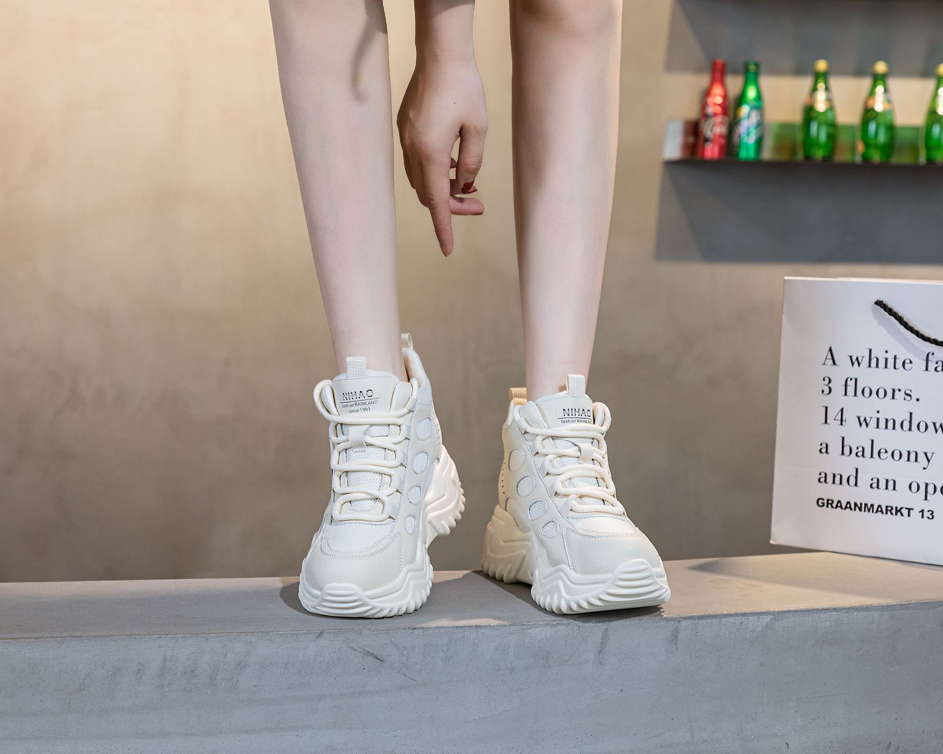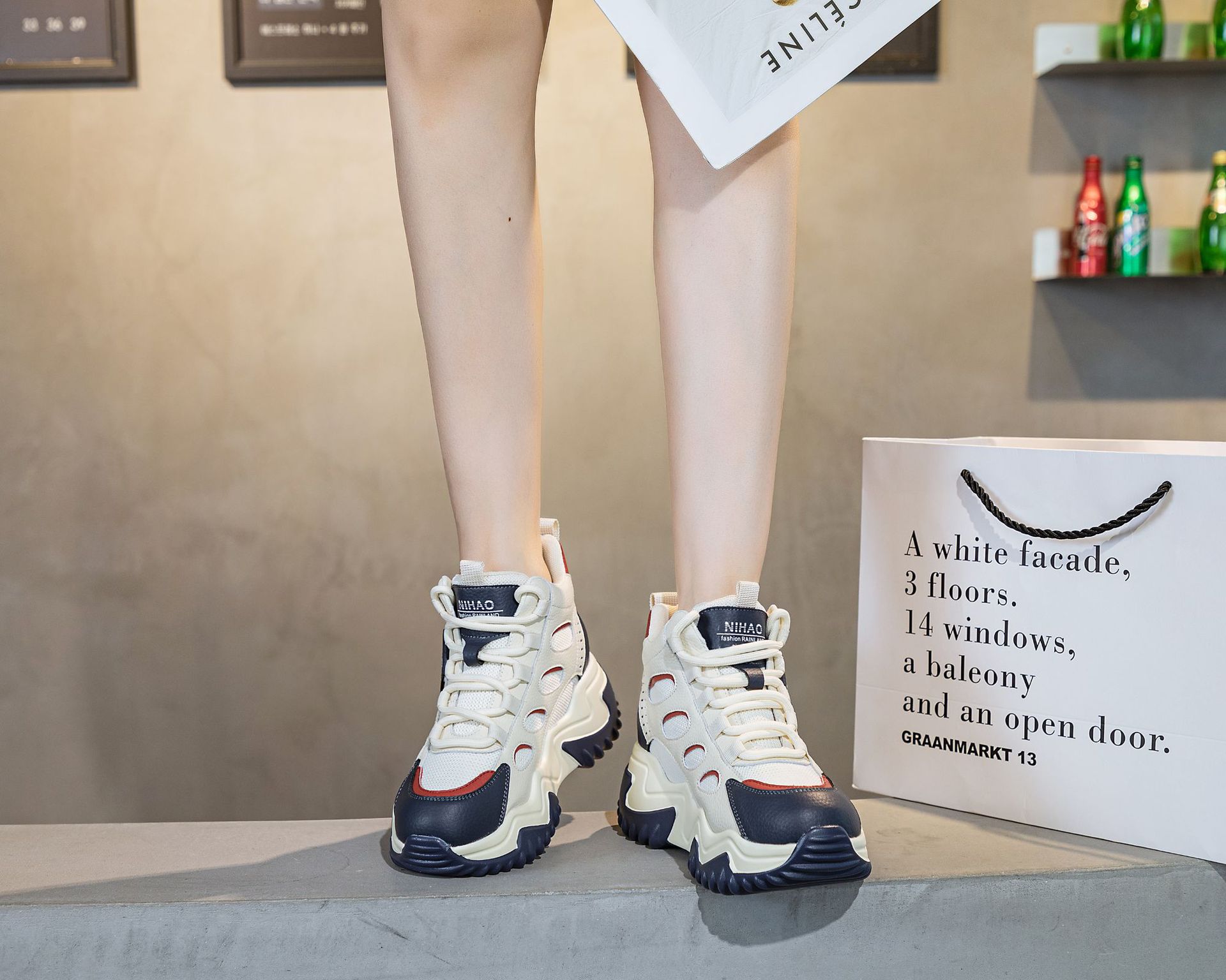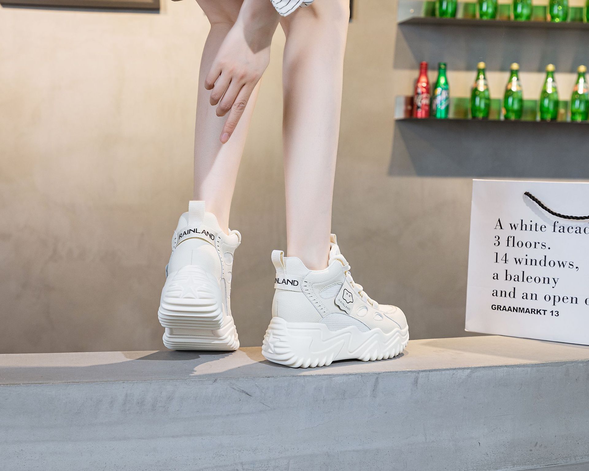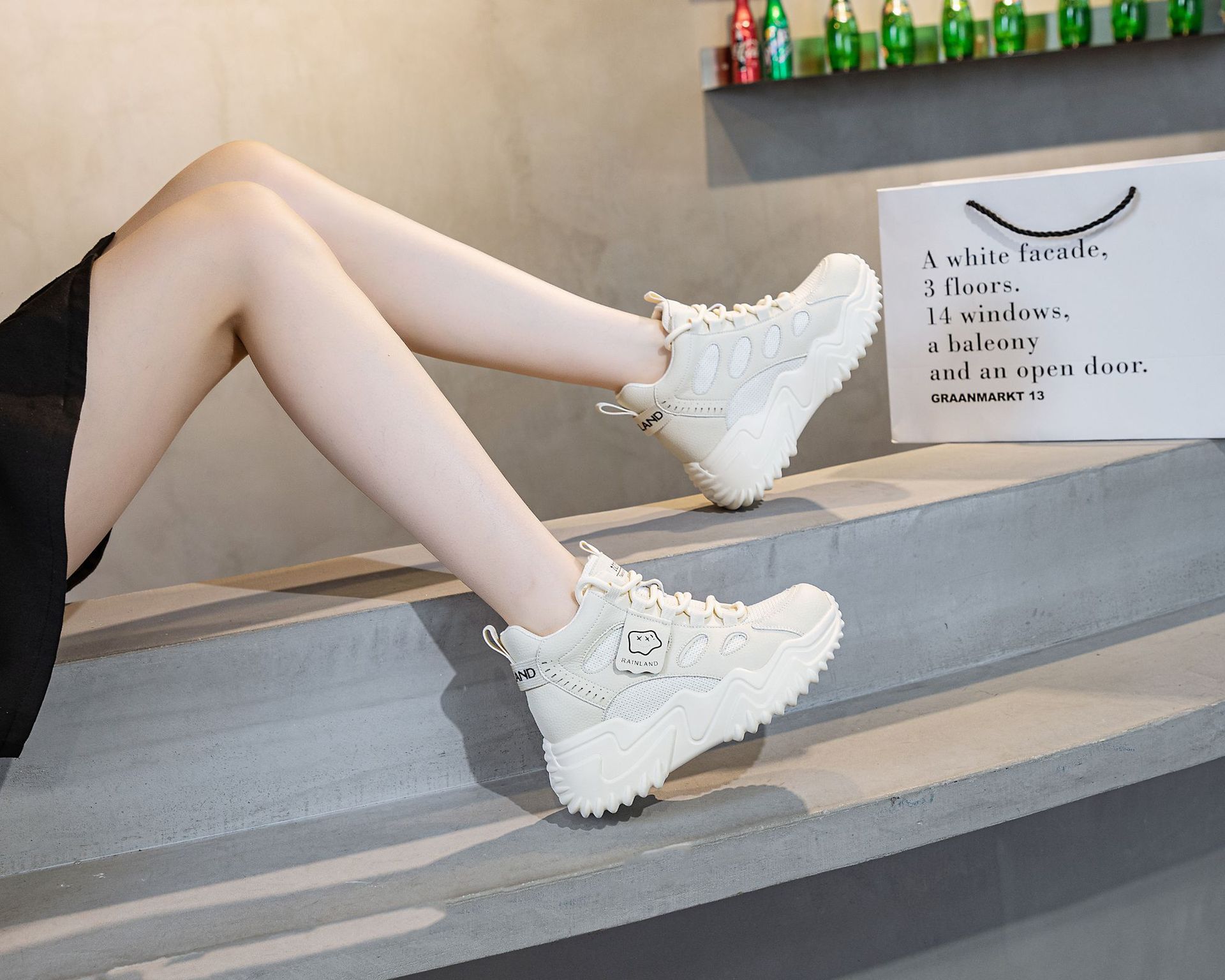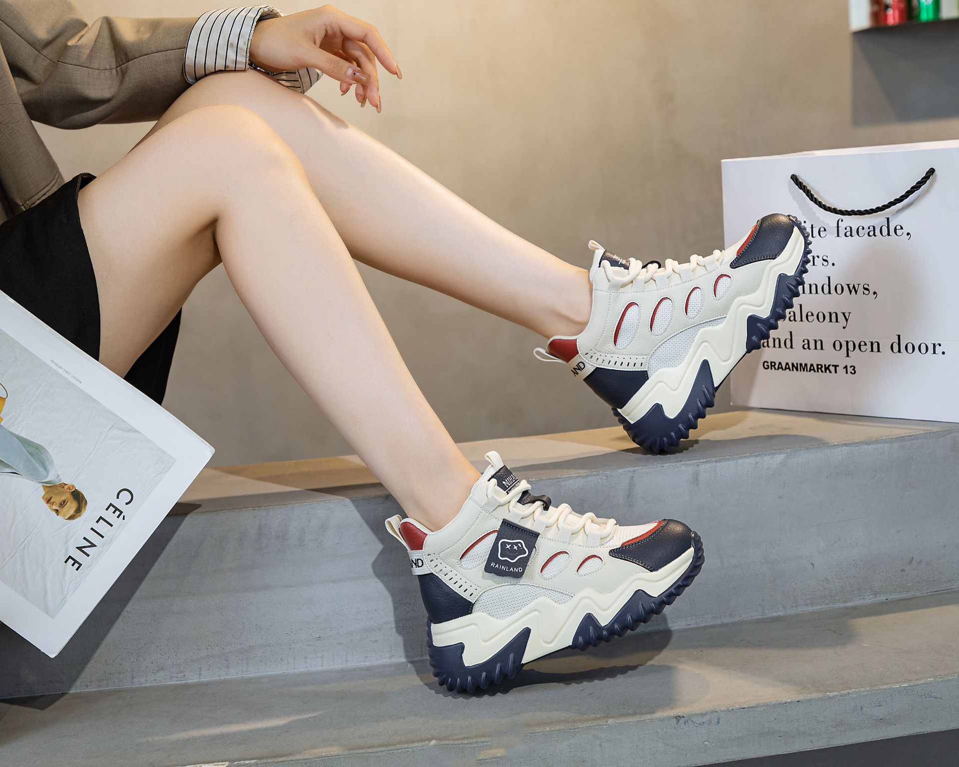 970 두꺼운 밑창 키높이 화이트 스니커즈 여성용 2024 봄 가을 신상 인기 캐주얼 아빠 신발스토어 가기
