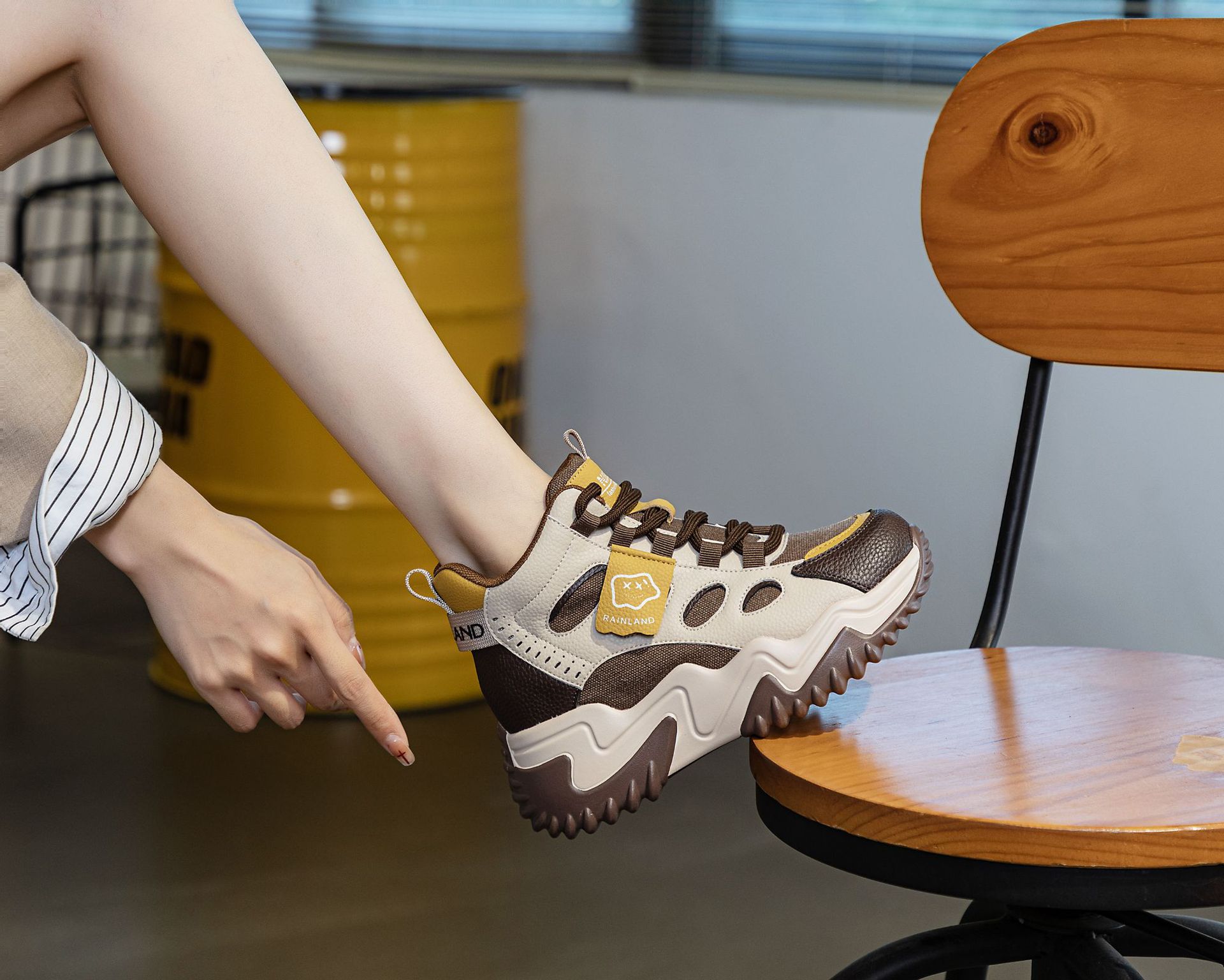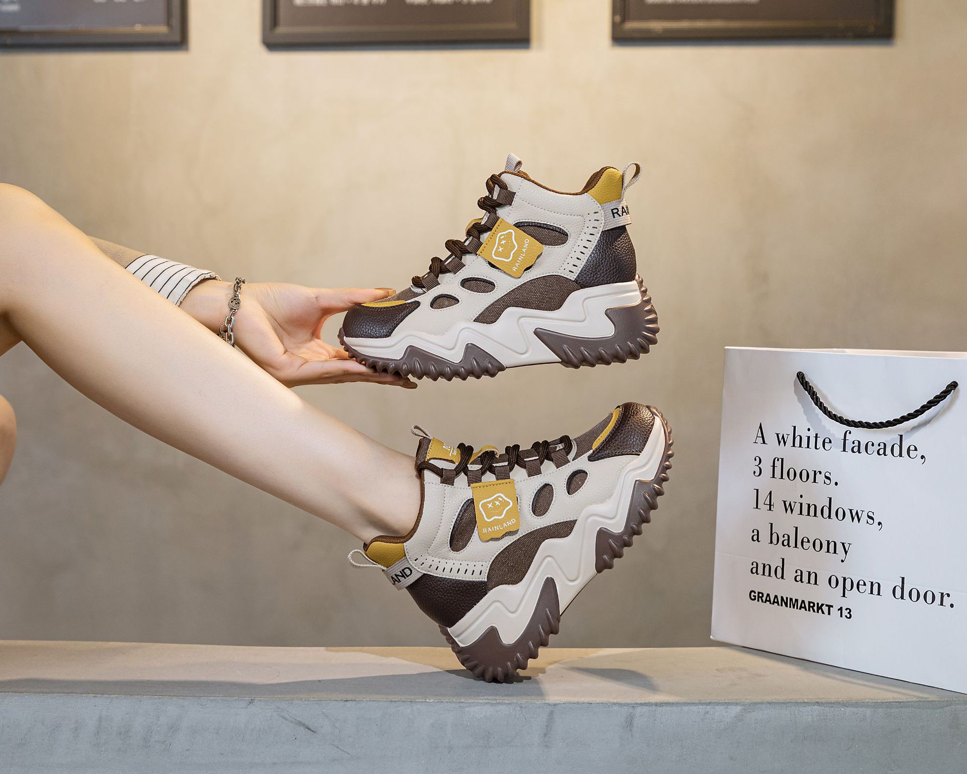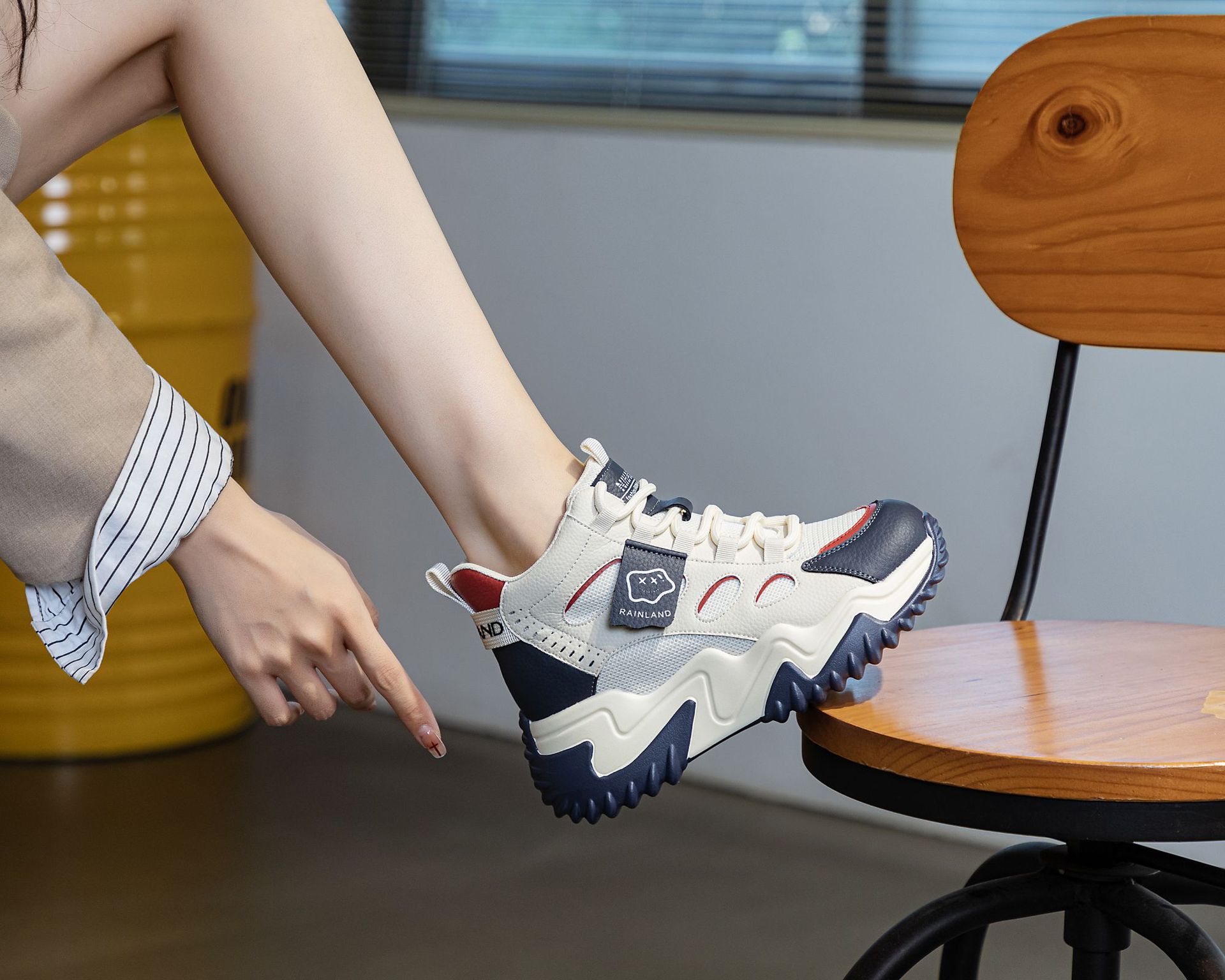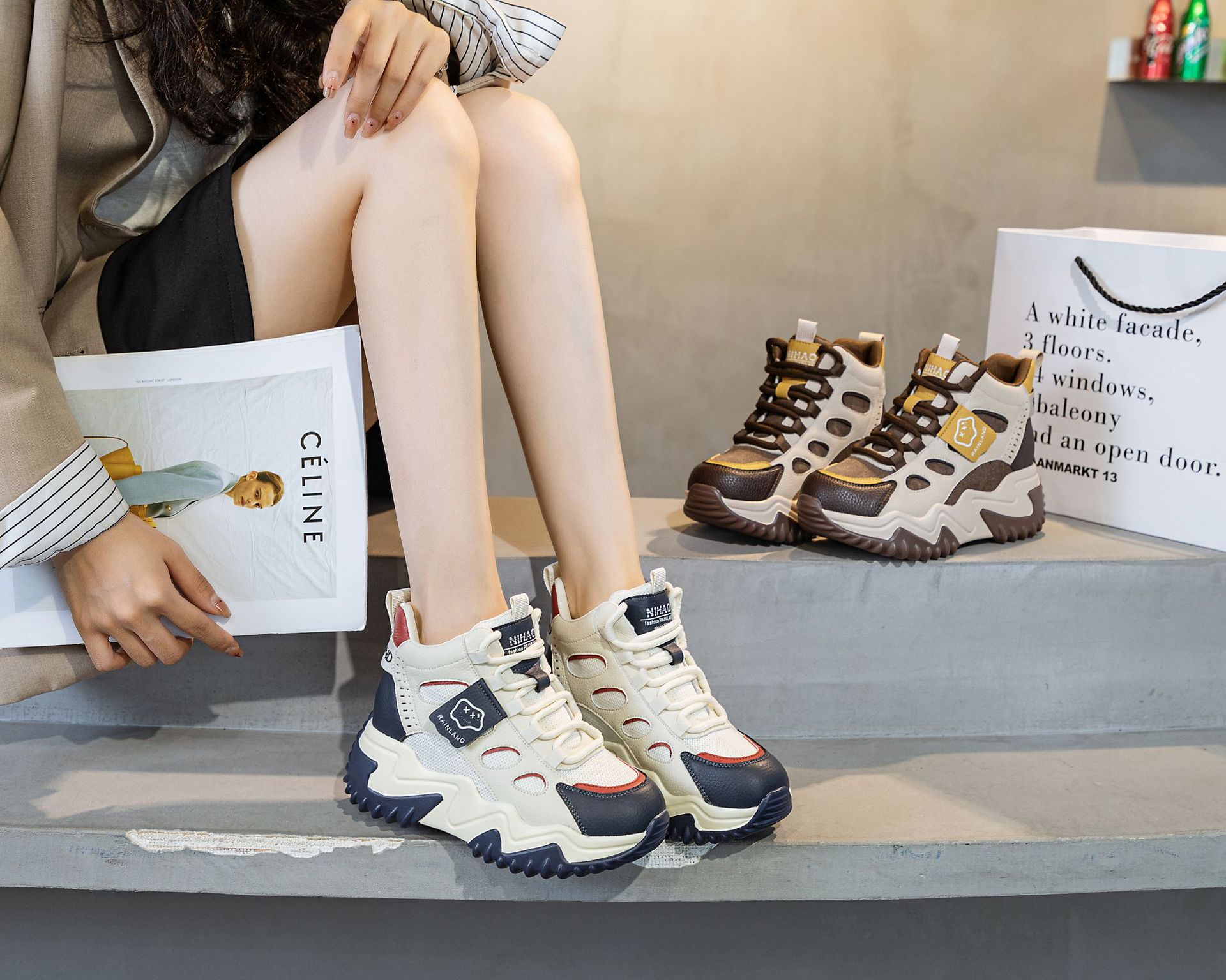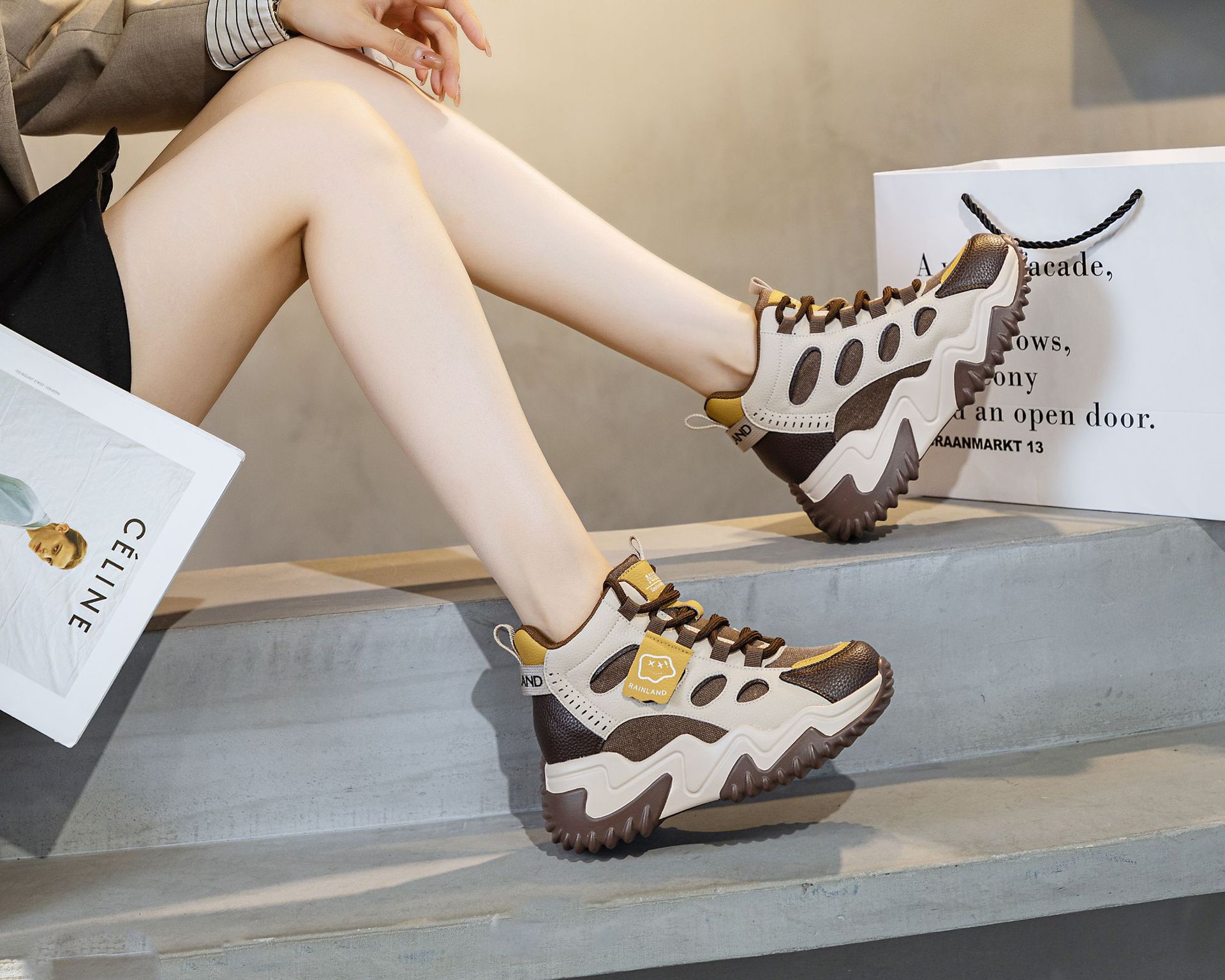 970 두꺼운 밑창 키높이 화이트 스니커즈 여성용 2024 봄 가을 신상 인기 캐주얼 아빠 신발스토어 가기