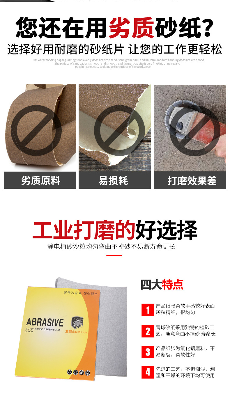 북사자 백서 북쪽 사자 사포 건조 연삭 사포 목공 가구 흰색 사포 페인트 표면 연마 알루미나 건조 연삭 사포스토어 가기
